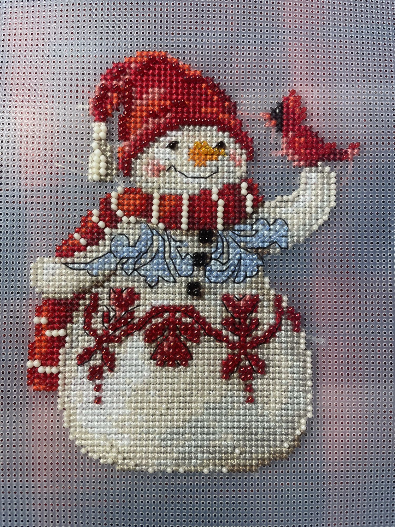 8 ноября 2023 Snowman with cardinal закончен насколько же сильно вышивка таких малюток настраивает на новогодний лад и праздничное настроение. Встречайте, снеговик под кодовым название «матерый», когда я начала вышивать этого снеговика, и к своему удивлению обнаружила здесь серые цвета и даже коричневые, я вспомнила бравых снеговиков, которые стоят долго долго и на своем веку успевают увидеть и дожди с липким снегом и бури. И эти снеговики уже не беленькие, пушистые красавчики, они становятся этакими матерыми снеговиками, как и этот господин. Никак не доберусь до сборки этого богатства в игрушку, но до нг еще время есть. lefkorosida, Fascinata, Tatiana Ch. и 13 других сказали спасибо Поделиться сообщением Ссылка на сообщение