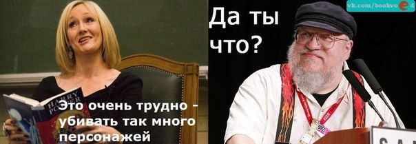 6 июля 2016 19 часов назад, monstrochka сказал: Потому что последний сезон уже не опирается на книги Мартина, ибо товарисч последнюю книгу все еще не дописал, так что сериал пошел довольно качественной (судя по отзывам фанатов Мартина и сериала), но отсебятиной... общая атмосфэра кровавости и жестокости то не авторская, как не крути... Вспомнилось: Перевод: Каждый раз, когда кто-нибудь меня спрашивает когда выйдет следующая книга, я убиваю Старка. Svetl@n@, sunny981, Oksana7 и 8 других сказали спасибо Поделиться сообщением Ссылка на сообщение