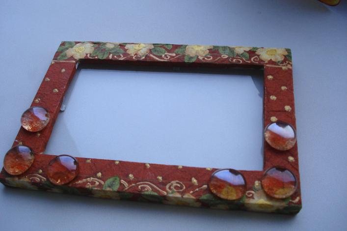 26 декабря 2011 Спасибо большое!!! Вы меня захвалили просто! На соседнем форуме играла в игру, называется "рукодельная цепочка" одно из желаний было - рамочка для фото. Вот такую рамочку я сделала. Только на почте вспомнила, что не успела сфотографировать, поэтому фотки от подруги по форуму, которой предназначалась рамочка. Обычную деревянную рамочку обклеила салфеткой, приклеила стеклянные камушки и прошлась сверху золотистым контуром. В реале конечно смотрелось симпатичней. Поделиться сообщением Ссылка на сообщение