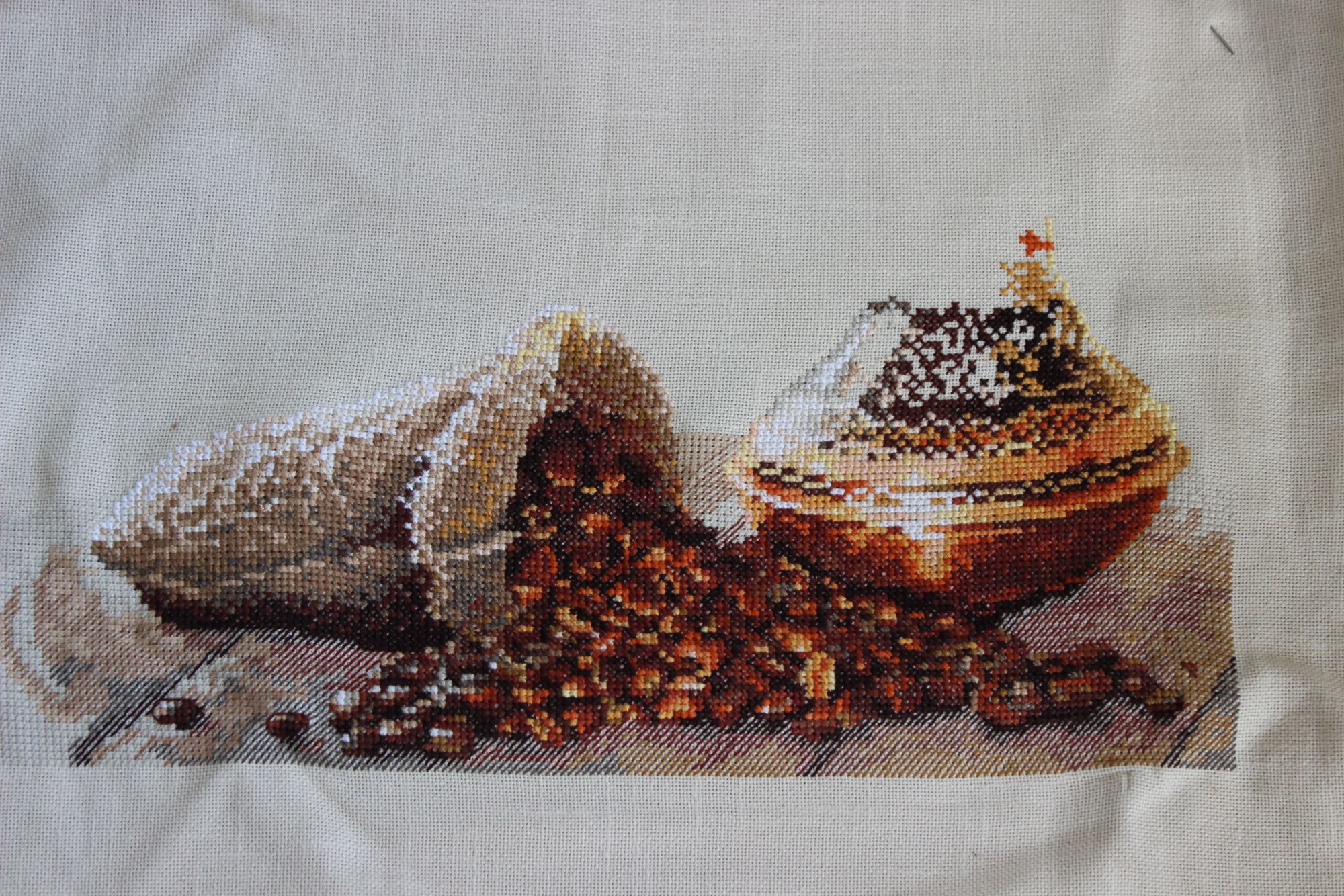 23 августа 2018 (изменено) Здравствуйте, девушки! Долго думала в какую тему пристроить свое вышивание, но похоже ничего ближе натюрморта здесь не придумаешь. Вышиваю сейчас "Запах кофе" от Овена. Долго хотела что-то на кофейную тему, благо сейчас выбор у разных фирм богатый. А этот набор купила на одной из выставок Формулы рукоделия. Там висели отшивы, и я поняла что этот самый ароматный и самый фактурный. Глядя на вышивку казалось что где-то рядом чашечку только налили. И зернышки прям тянет назад в мешочек убрать. Начала еще прошедшей зимой, потом все это слегка начатое лежало, и вот сейчас вернулось в работу. Вложенную канву заменила на равномерку, подходящую по цвету. еще она оказалась с такими утолщениями нити, как будто лен (но она не лен), что, как мне кажется, очень подходит для этой работы, подчеркивает фактурность. Что будет, начало процесса, сам процесс: Изменено 23 августа 2018 пользователем semsot viola33, elena_kostar, kreolka и 13 других сказали спасибо Поделиться сообщением Ссылка на сообщение