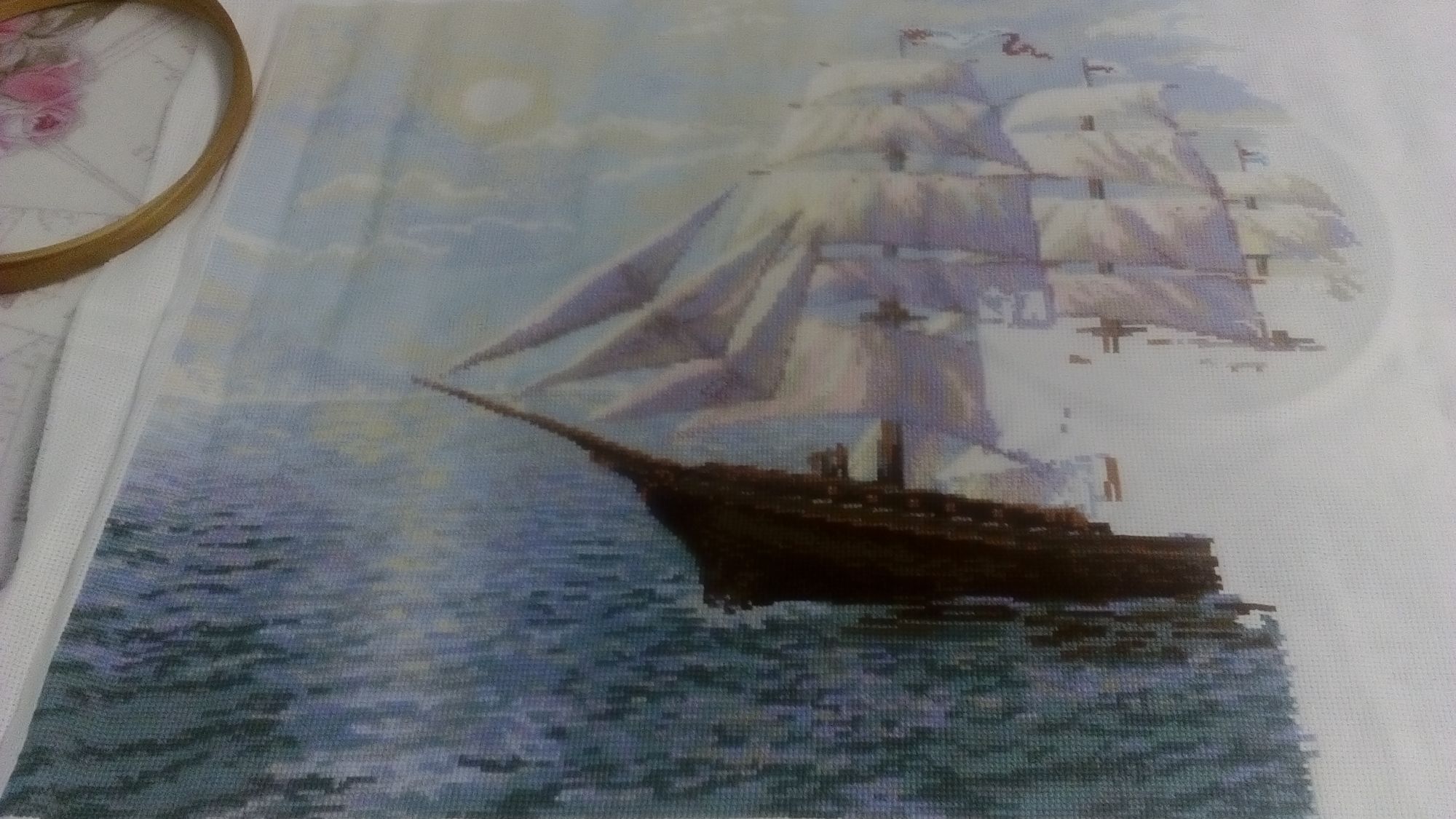 3 октября 2018 Здравствуйте! Хочу показать своё продвижение, вышивала в основном паруса и вверху немного неба. Фото для гаечки! . Fascinata, Aleksacha , Сибирская Кошка и 7 других сказали спасибо Поделиться сообщением Ссылка на сообщение