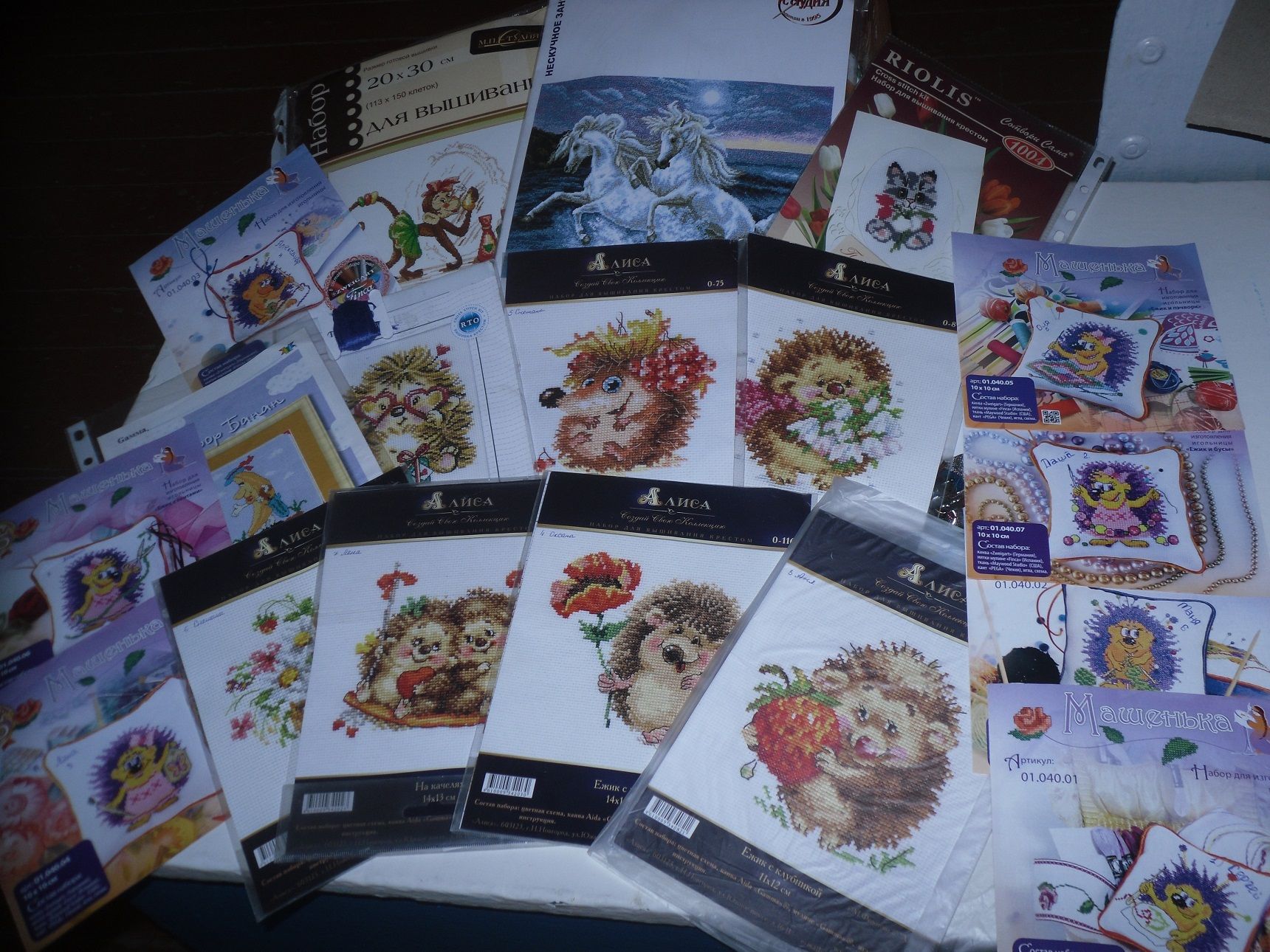 2 августа 2016 Опять я на ночь глядя )))) Мои процессы летят , поэтому хочется похвастать продвижениями В касатках почти закончила растить ёлки ( осталось один цвет отшить ) , и приступлю к завершающей части - горам ! было стало Ох как же хочется их поскорее закончить ) и посмотреть картину целиком . Сейчас вижу только часть которую отшиваю ) Маячок почти завершён , осталось совсем чуть-чуть , крестиков 100 и бэк ) Его , кстати , не так много , как , например в паруснике ) Хотела даже уже не показывать фото до завершения , ну да уж ладно )))) Очень-очень -очень нравится было стало фото в другом режиме Юбка тоже продвинулась ) Теперь их уже трое ) Эту девчушку назвала Элизой , и она моя любимица , может потому что она с рыжим котейкой ) Делала по мере отшива совсем незначительные изменения , главное из которых , в том , что поменяла цвет глаз у котейки с коричневых на зелёные )Мне кажется так лучше ) было стало В субботу получила посылочку от Танечки- ТатьянаИ )Танюша уже не первый раз радует моих девчат из кружка , за что ей огромное спасибо ) Вот такая компания замечательных ёжиков теперь будет жить в закромах нашего кружка , и я уверена точно , что долго они там не задержаться ) За сим откланиваюсь и желаю всем спокойной ночи !!!! ОльгаВл, masha-vyshivasha, antipochka и 11 других сказали спасибо Поделиться сообщением Ссылка на сообщение
