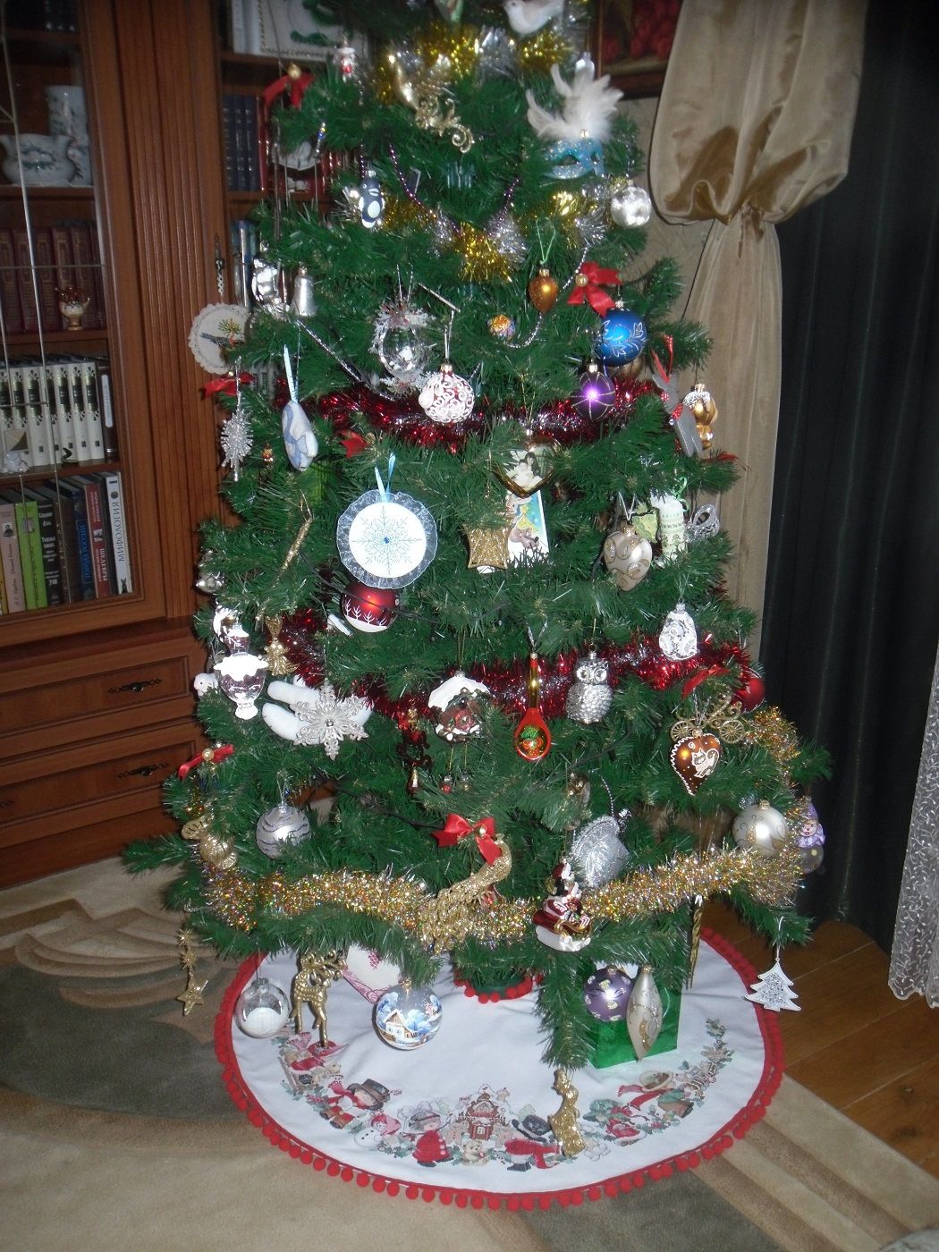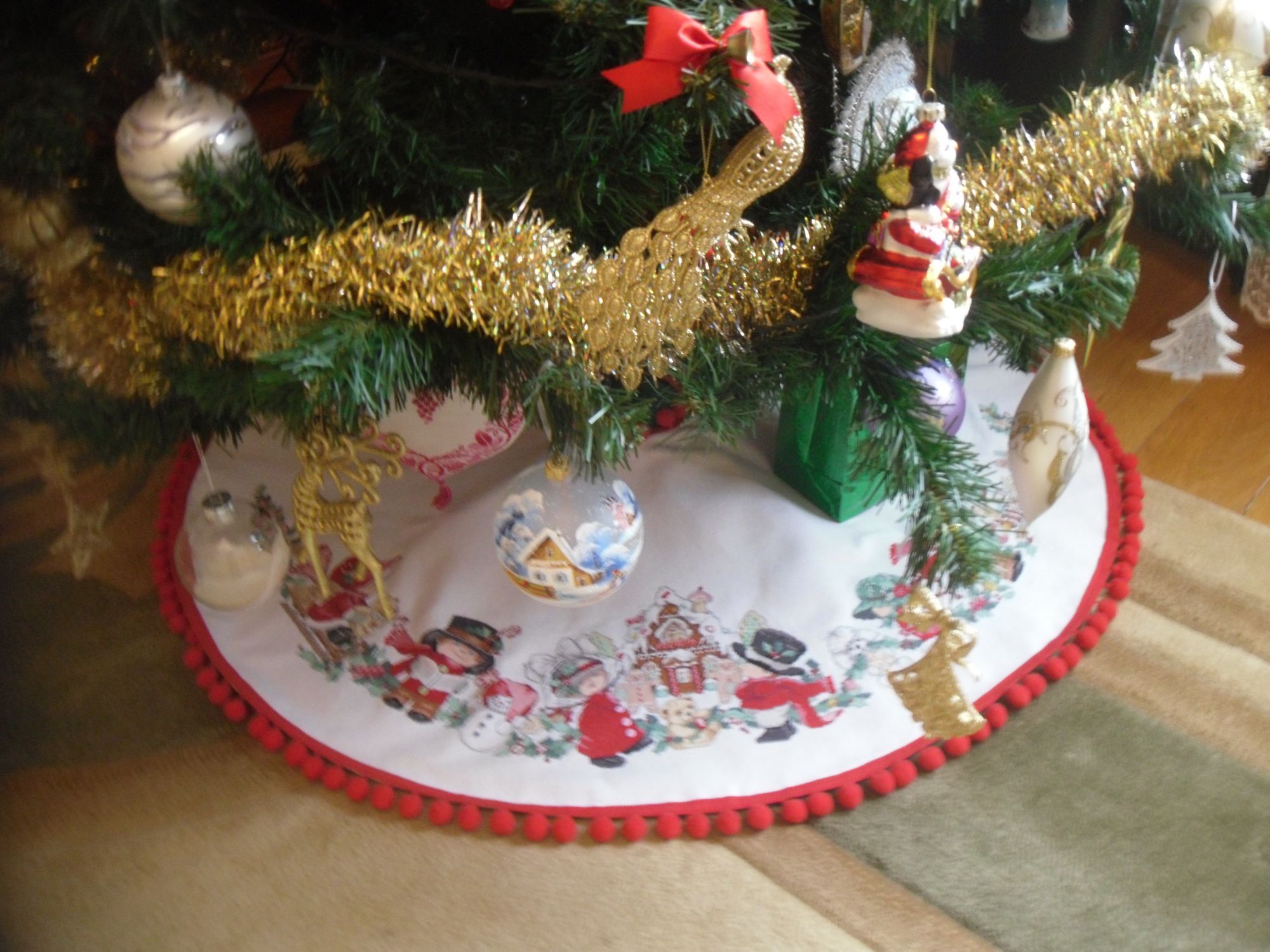 7 марта 2017 И снова здравствуйте ,мои дорогие ! Как всегда извиняюсь за столь долгое отсутствие , но я так думаю ,что перевоспитать себя уже не удасться , и мои отчёты так и останутся редкими , но я надеюсь на ваши пиночки Это на меня всегда действует Но есть что показать и это радует ) Во-первых , закончила юбку под ёлку . К НГ вышила все крестики , но сшить не успела , так как не хватало ленты с помпошками . Но буквально 4 или 5 января она лежала уже во всей красе ,где ей и полагалось - под ёлкой Честно говоря даже не думала , что успею её вышить в срок , зная свою скорость и растягивание процессов Я довольна своей работой , очень боялась всё испортить в процессе шитья , поэтому так тщательно всё вымеряла , прежде чем отрезать . В набор был вложен красный кант для обработки края , но мне он показался скучным , и я стала искать подходящую тесьму с помпонами , нашла её в Калининграде , а изумительную , на мой взгляд , ткань для подкладки - в Воронеже . Юбка получилась чуть больше 1 м в диаметре , канва -14-я , 33 чистых цвета и 1 бленд . Ниток осталось достаточно , и кстати в схеме есть номера цветов в ДМС , так что подобрать можно легко. Всё вышивается крестом , и совсем немного 3\4 ( в личиках) , чуть-чуть фрузелков ( я заменила их на бисер) и очень много бэка , хоть и лёгкого antipochka, emeraldrose, Lenara и 18 других сказали спасибо Поделиться сообщением Ссылка на сообщение