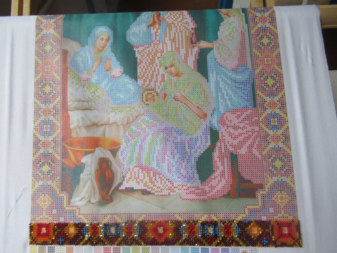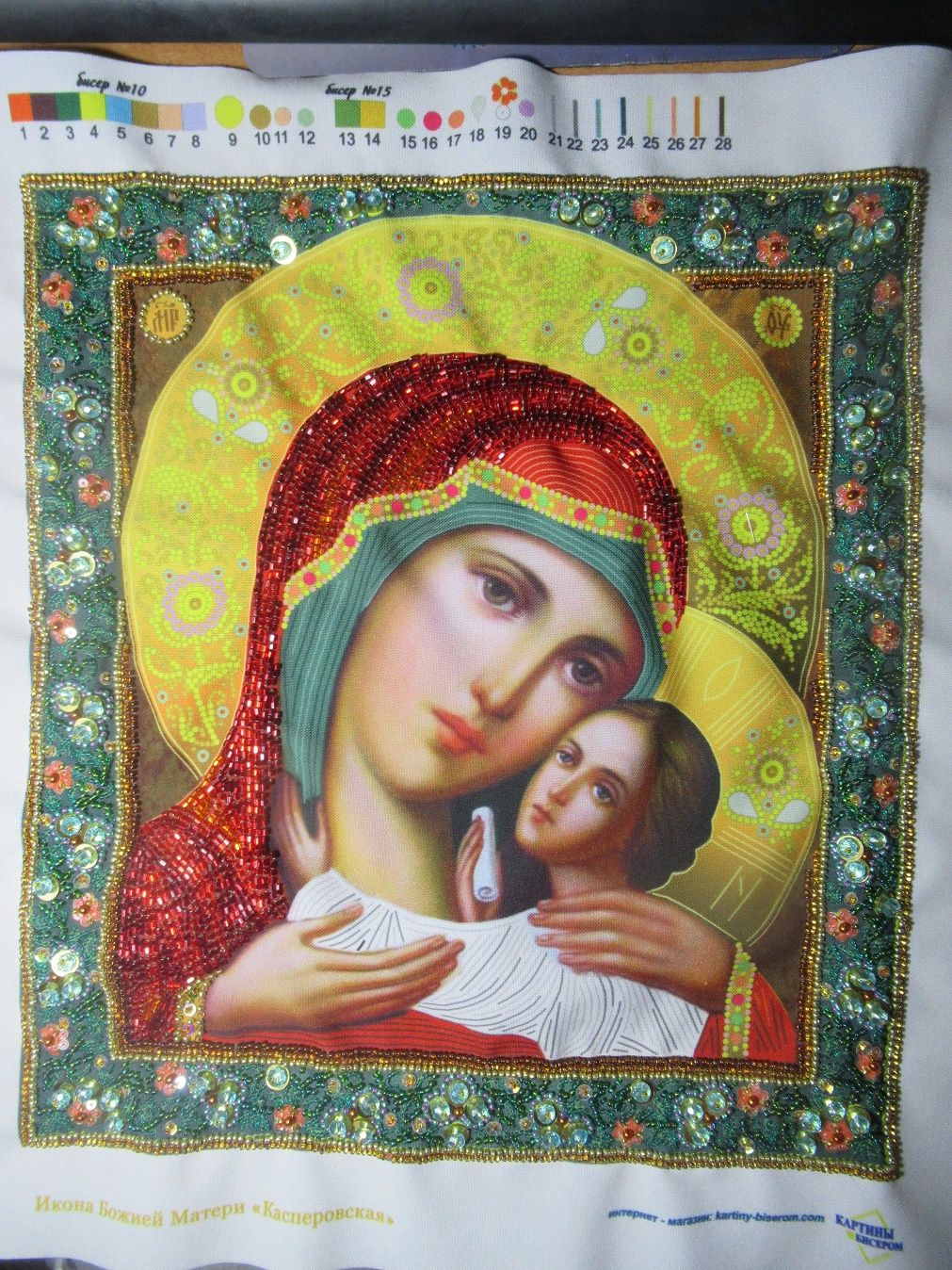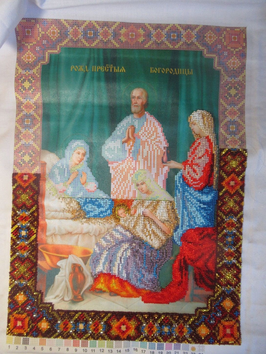 9 октября 2020 29.11.2019 в 00:07, ss-kostenko сказал(а): Привет всем , заглянувшим на огонёк ! Решила написать небольшой отчет хотя бы по процессам Икона "Рождество Пресвятой Богородицы" от Чаривна мить Б-1052 27х36,8, вышивка бисером Начала ещё в конце августа , но шью её только на работе ,если есть время , поэтому очень медленно , хотя вышито уже гораздо больше чем на фото , просто постоянно забываю сфотографировать . Начало второго процесса я уже показывала , но гаечка на него не появилась Поэтому покажу ещё раз Чаривна мить Б-1052 Рождество Пресвятой Богородицы, 27х36,8см Как то очень нелегко она мне далась , были и большие перерывы , но всё позади , она оформилась и уже подарена нашему храму . Внесла небольшие изменения : вместо огромных акриловых белых бусин пришила стеклянные , меньшего размера , на мой взгляд более подходящие, и ещё нимбы сделала тамбурным швом , вместо обычного бэка .А так всех цветов бисера хватило , брака почти не было. Икона красивая , но не сказать , что не отвести глаз Закончила её в начале марта , сразу же повезла в багетку , что бы она успела оформится к Пасхе , но из-за известных событий забрать смогла только в июле masha-vyshivasha, Птица, maui и 9 других сказали спасибо Поделиться сообщением Ссылка на сообщение