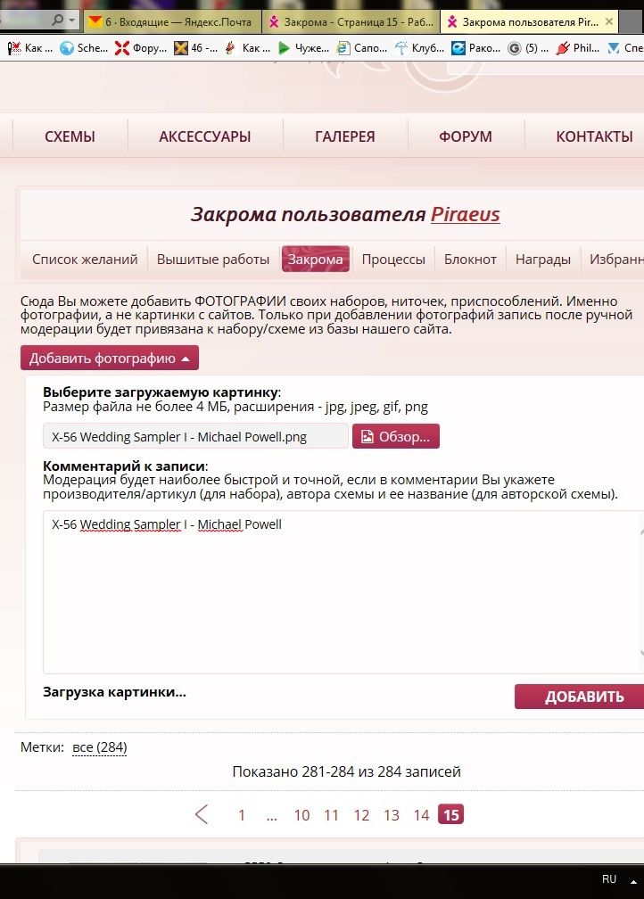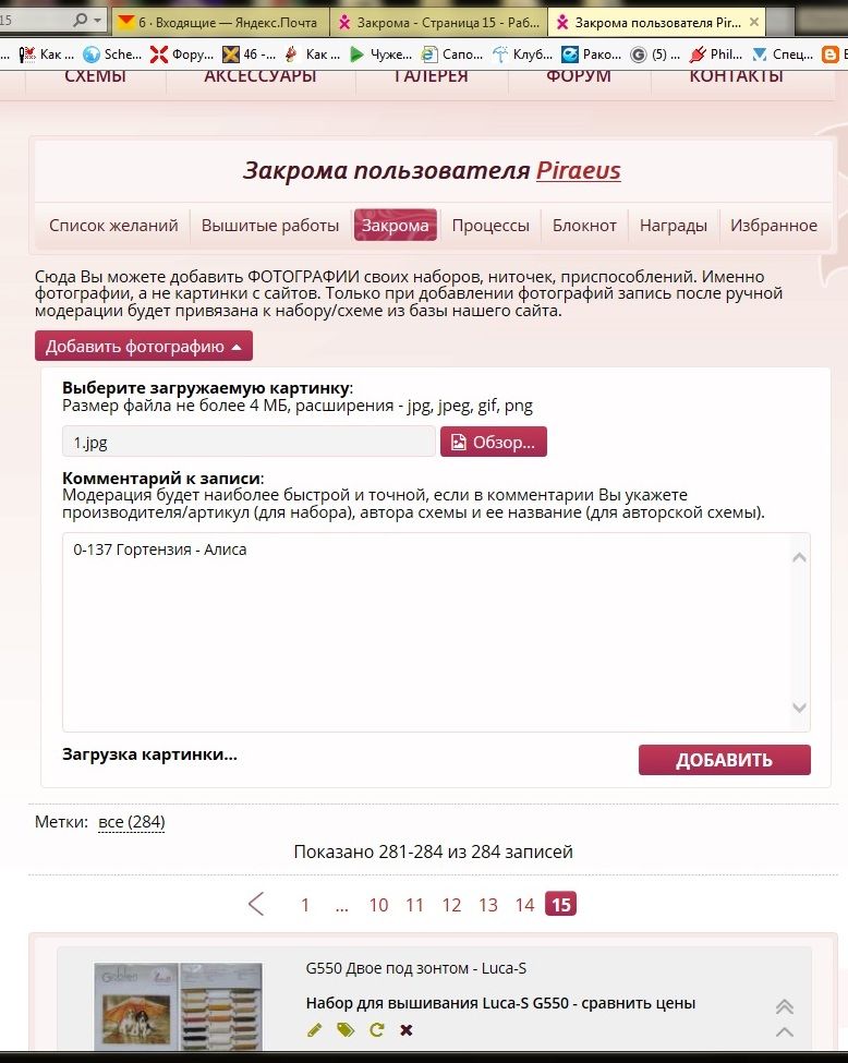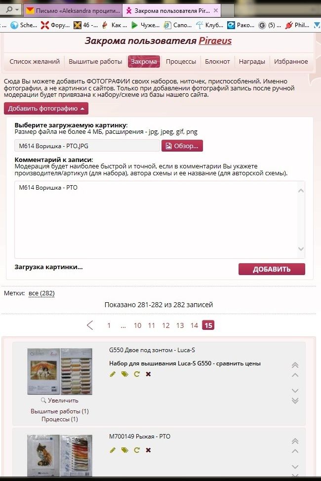 3 декабря 2016 У меня вопрос следующего порядка, не могу пополнить закрома, у меня 15 страниц - 281 набор, а для участия в "Борьбе с хомякозом" просят выложить все имеющиеся запасы, а это еще 15-20 наборов. Пробывала удалять имеющееся, но на их место ничего загрузить не получается. Что делать? Поделиться сообщением Ссылка на сообщение