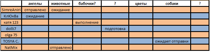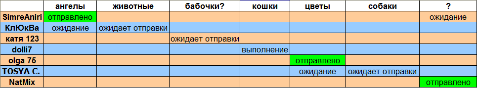 9 апреля 2012 Кошки - вроде всех учла январь КлЮкВа февраль март dolli7 апрель КлЮкВа май TOSYA C. июнь июль TOSYA C. август SimreAniri сентябрь октябрь NatMix ноябрь dolli7 декабрь первая отправка будет в выходные Поделиться сообщением Ссылка на сообщение