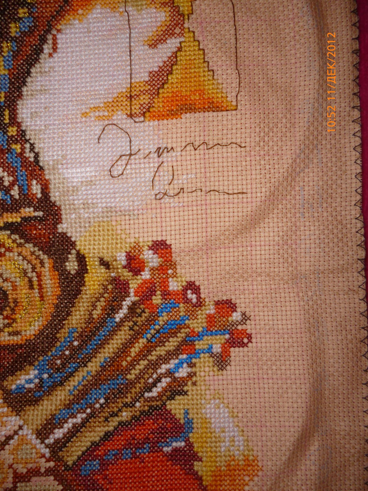 6 декабря 2012 Олечка, посылочка уже в твоем городе, и написано что была неудачная попытка вручения, отзовись, а то я прям переживаю Леночка,я в выходные отправлю африканку, я чуть-чуть в больнице полежала просто.Собачек отправлю до Нового года точно.В африканке есть ошибка большая-там вышит самый низ голубыми нитками, я сначала хотела взять и свой участок вышить между этим голубым фрагментом и окончанием "туловища" ,но когда стала считать, выяснилось, что этот голубой вышить выше чем нужно на 10 клеток, я распускать не решилась и вышила фрагмент справа от сережки.Если этот голубой фрагмент распороть, то его опускать практически некуда-там уже полотно заканчивается.Думаю,понятно обьяснила!Отошлю Тане так как есть, там еще остаеться фрагмент в левом нижнем углу(медальон какой-то). NatMix сказал(а) спасибо Поделиться сообщением Ссылка на сообщение