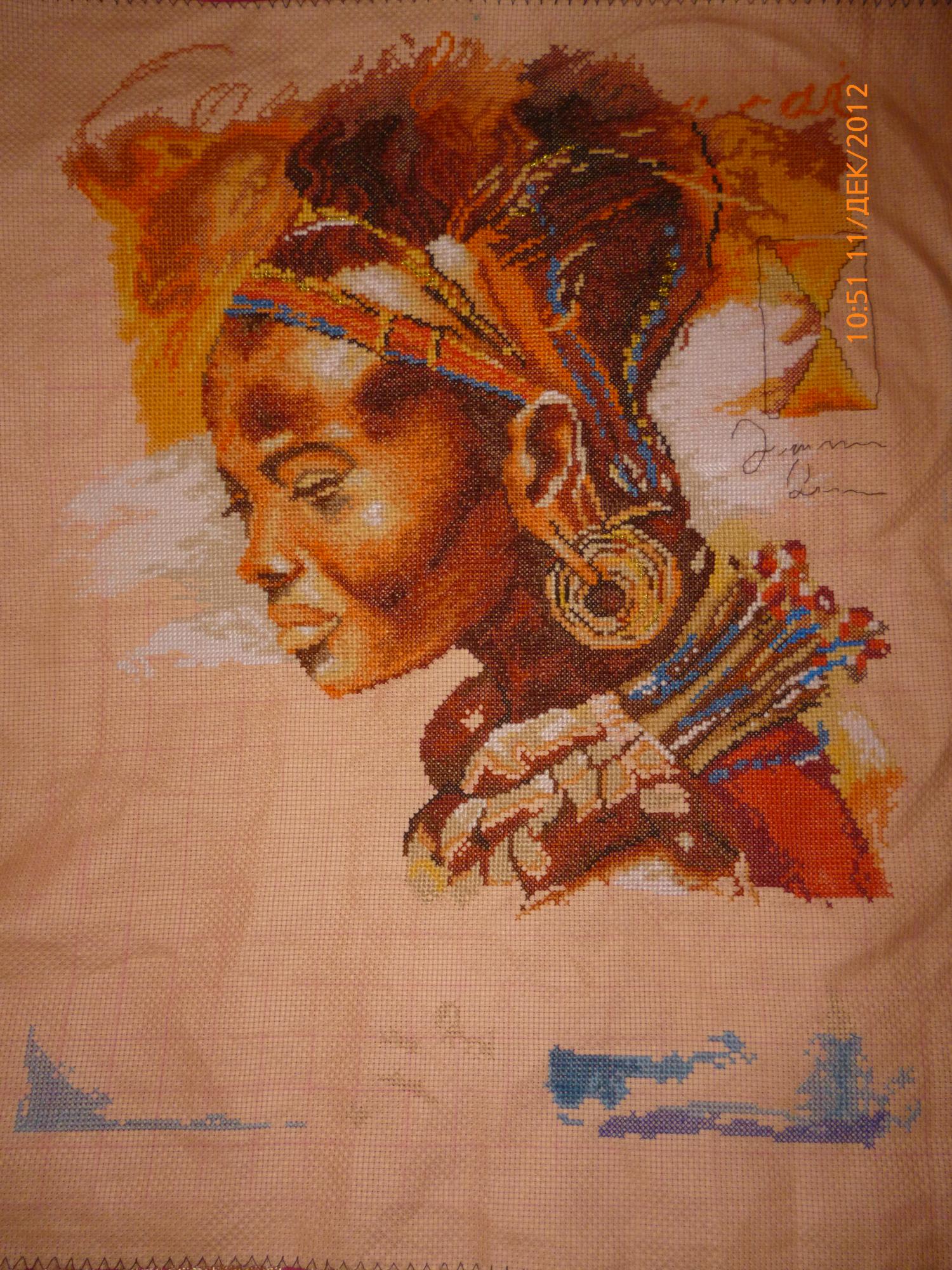 11 декабря 2012 Всем привет!Сейчас побегу отправлять африканку.Вышивать ее понравилось, хотя я с некоторой тревогой ждала этот этап,т.к.это не отдельные сюжеты,да и объем большой,но когда свой этап отшила и рассмотрела итог-просто супер!Тане остается последний этап,но по сути там остаются не отшиты два фрагмента:тот кусок, что слева от носа(т.е. ниже фрагмента, отшитого КлЮкВой)вышит совсем чуть-чуть.Выкладываю фото моего участка и картину в целом: dolli7 и NatMix сказали спасибо Поделиться сообщением Ссылка на сообщение