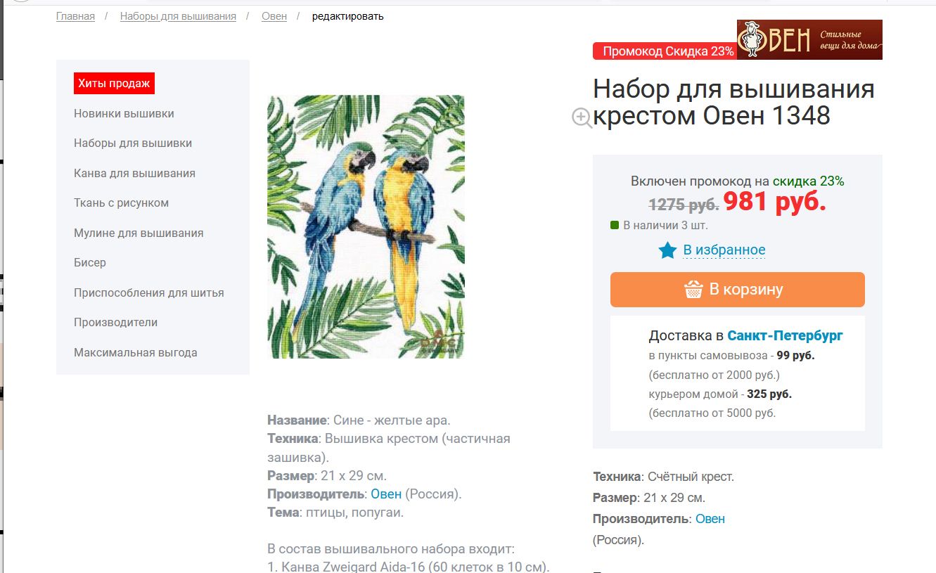 7 сентября 2021 03.09.2021 в 22:35, Nadinka-Blondinka сказал(а): Не поняла - вы больше не будете интернет- магазином вышивки? Будете производить и продавать алмазку? Здравствуйте! Скорее всего мы оставим только вышивку самых популярных производителей. niksi, AssOlka, almmatea и 1 другой сказали спасибо Поделиться сообщением Ссылка на сообщение