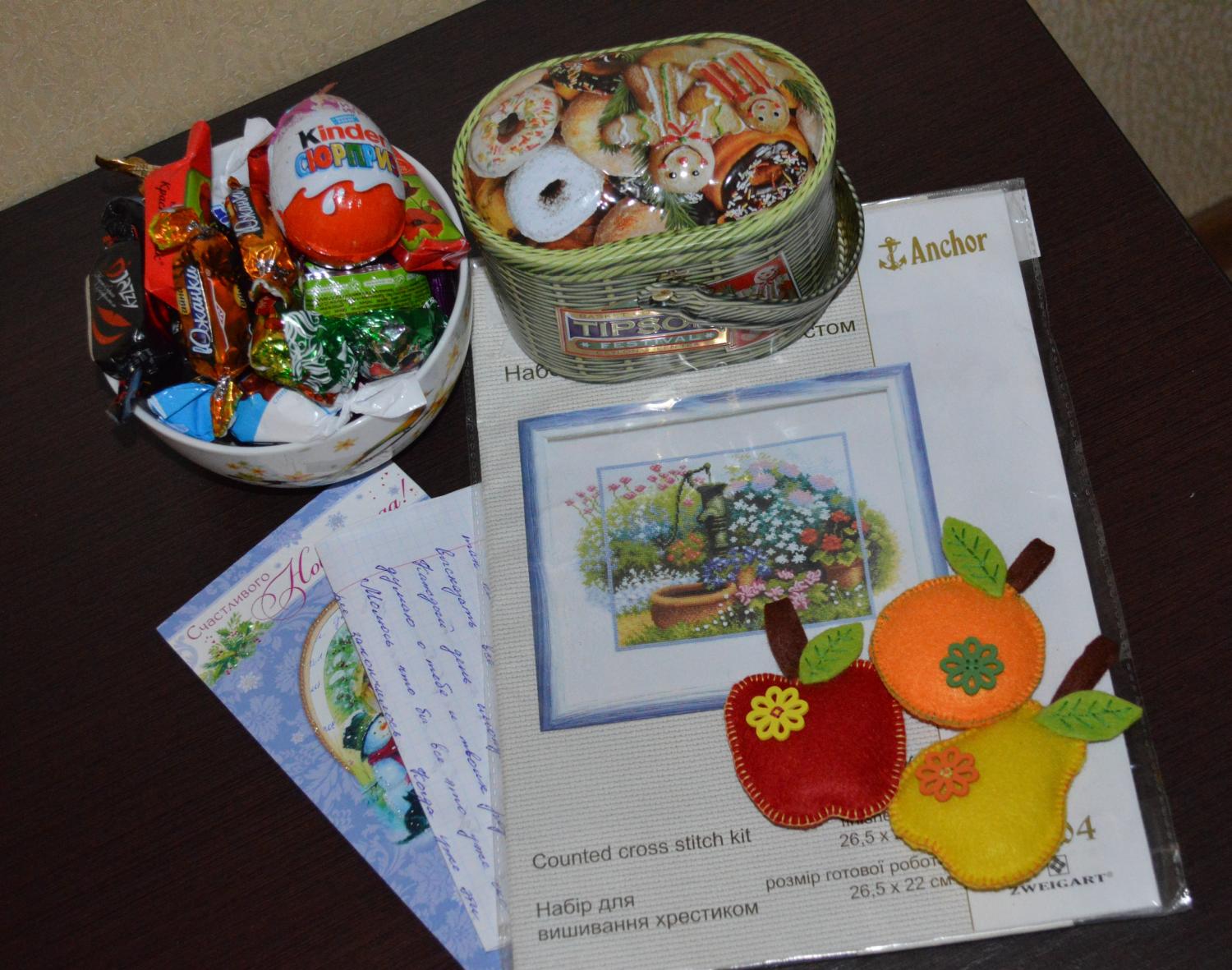 2 февраля 2015 ss-kostenko, Nyurka-86, Aries, Гало4ка, Юнона, tatusja, Wian, спасибо, девочки! Сама все любуюсь вышивкой)), часто так выходит, что у меня всегда есть претензии к набору или процессу, а здесь вот нет ни одной)). Так что кому сильно хочется - "надо брать")). Для шармиков "мест нет" Алия, не лепятся они там никуда. Сфотографировала на память с шармиком: Лена, точно! Хризантема! Что-то с памятью моей стало, все , что было не со мной помню)). А еще мне Светланка прислала подарок. Яркий, нарядный и очень приятный)) Света, ты руками сшивала фрукты? Если да, то я просто в восторге)). Каждый стежок повторяет предыдущий, все просто одинаковые - это же невозможно. Я когда шью руками, то сразу видно, что это были именно руки. И даже можно догадаться, откуда они растут))). Фрукты безумно аккуратно сшиты, просто до невозможности! Это набор какой-то? Или ты отдельно покупала все? Просто так все гармонично и здорово, супер! Спасибо тебе огромное!!! Там в наборе новые швы, забыла как они называются, с помощью которых цветы оплетают, я их боюсь)), но попробовать интересно. СПАСИБО!!! veravas, Юнона1960, irinka-mandarinka и 12 других сказали спасибо Поделиться сообщением Ссылка на сообщение