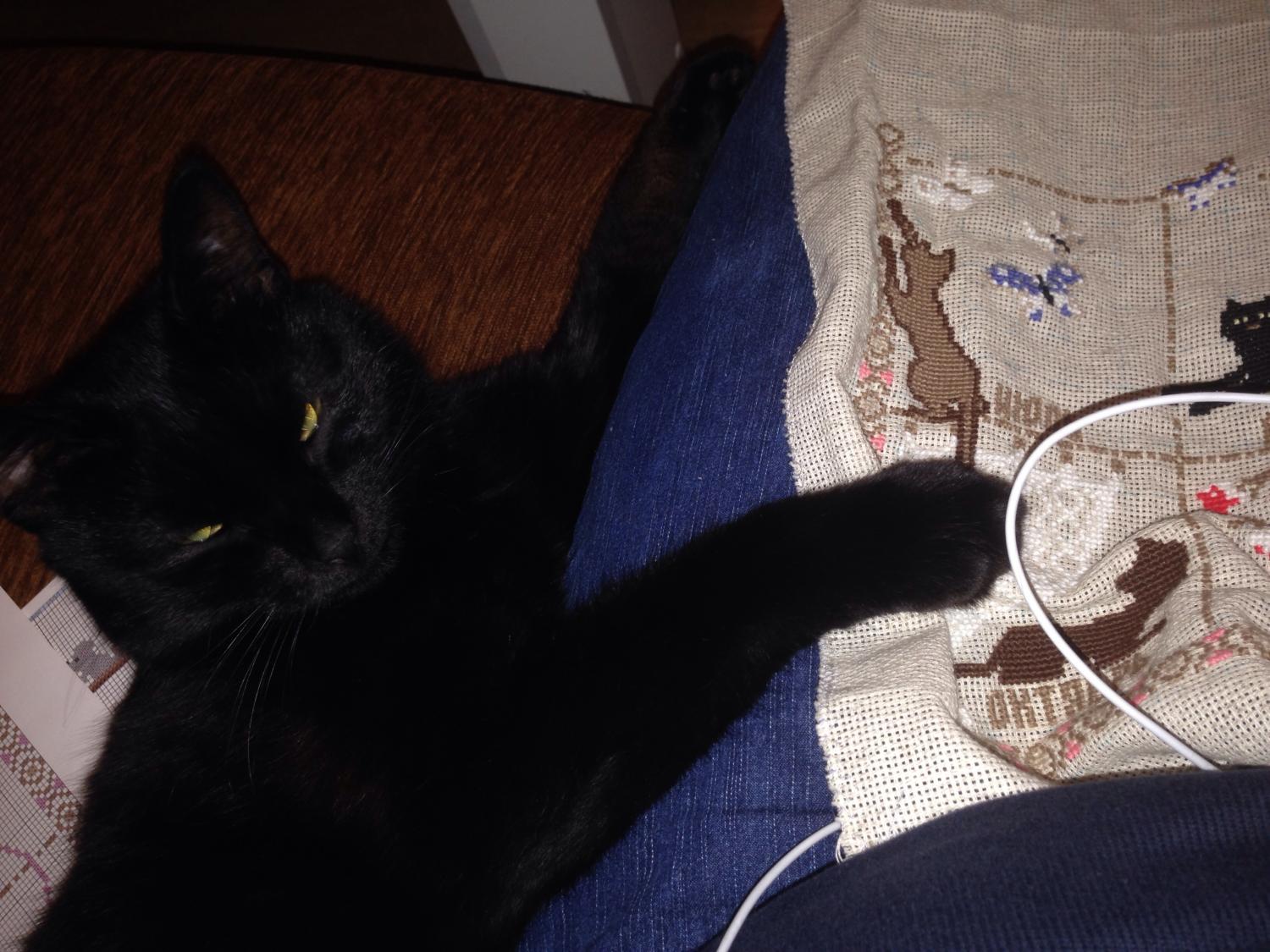 2 апреля 2014 Всем вечер добрый! Лежу с температурой, вышивать не хочется - решила вот отчетик хоть небольшой написать... Поездка моя в Иркутск завершилась болезненно, в самом прямом смысле этого слова. Приехала туда - кошмар, трое из четверых детей (там кроме моих двоих, еще двое племянников) кашляют зверски, отдохнули называется! Злая на свекровь я теперь - аж в черный список ее на телефоне поставила! Ведь по телефону говорила - все ок, никто не кашляет, а сама запустила детей! Сама виновата конечно - пожалела что путевки на турбазу пропадут, вот и результат. В другой раз детей лучше жалеть буду, и недолеченных до конца никуда не отправлю! Ехала обратно с ними в купе - всю ночь все кашляли, будто туберкулезных зеков перевозила, а не школьников. И сама заразилась, да еще как - третий день с темп. валяюсь, решила антибиотики даже пить. Сидим с младшим дома, кашляем; только старший молодец, в школу ходит. Вышивать зато время появилось, да с темп-рой особо не хочется. То есть не можется. Так что шью эти дни несложный самый Кошачий календарь (Риолис). Вот продолжение этого процесса: Мой Кошарик, как верный пес, все время у моих ног, помогает как может: Это у меня на коленях вышивка лежит, а Котя на нее "наложил лапу" И еще есть продолжение Мышки-вышивальщицы (Наше счастье от Панны): Гружусь с телефона - поэтому не знаю как получится! Всем до встречи, пока! Надеюсь завтра мне станет легче! Татуся, sunny981, СветикСемицветик и 1 другой сказали спасибо Поделиться сообщением Ссылка на сообщение