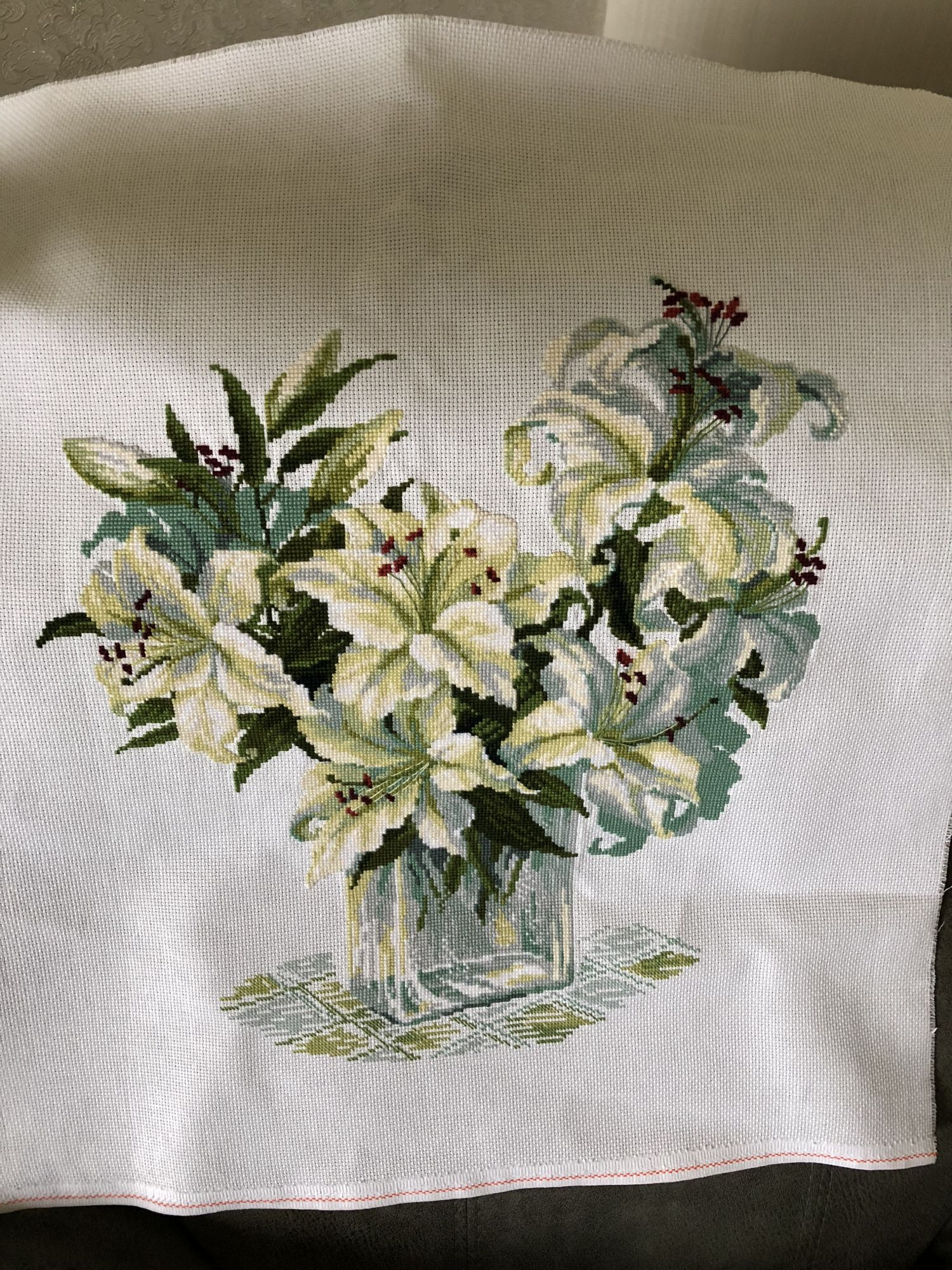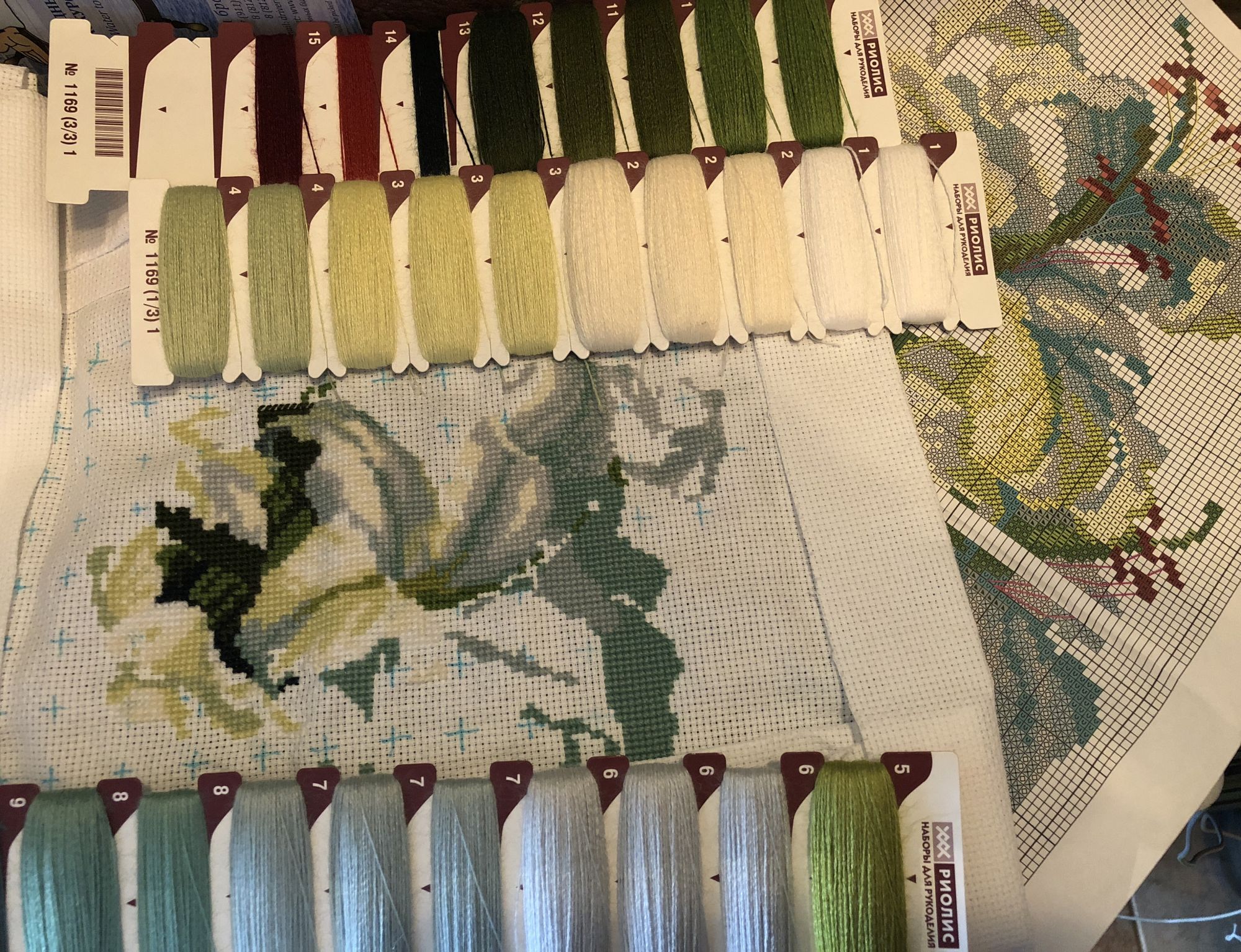 13 ноября 2018 Давненько я не была в своей теме! Повыкладываю процессы, иначе совсем и позабуду потом про них. Окончание мини-лонгстича 1570, с лавандовыми французскими полями: И второй из серии, 1571 (процесс закончен). Думаю, это итальянские жаркие поля с пшеницей Канва перетянулась, но во время глажки вроде бы я вытянула ее, стараясь восстановить форму квадрата. Также, за лето я урывками вышила всем известные Лилии от Риолис 1169. «Прирастила» кончик маленького бутона по центру букета, чтобы цветков получилось нечетное кол-во. И - немного осталось до завершения парных Ирисов 1071 , верхние цветы дошить: И еще летом добралась я наконец до заброшенных подушек (снова Риолис, и снова шерсть) ; отнесла их в швейную мастерскую, и мне сшили две славные наволочки. Ткани было впритык, и я сама вряд ли осилила бы молнии на осыпающейся жаккардовой ткани. Ткань, кстати, заказала на Али, подобрала рисунок, очень похожий на вышитые узоры вокруг пиона. Подарила подушки маме, они подходят под ее дизайн дома. Хотя вышивала я их несколько лет назад для себя, под стиль наших обоев в зале. Из той квартиры мы давно уже переехали, и подушки стали неактуальными. Вот так у меня часто бывает: могу забросить надоевший проект в одном шаге до финиша! К сожалению, фото лучшего качества пока нет. У мамы телефон плохо фотографирует. Решила, что буду учиться избавляться от этого недостатка моего. Это ведь не только в вышивке проявляется. В жизни мне также мешает манера эта - бросать ставшие неинтересными дела и хвататься за новые. Буду заканчивать свои «долгострои», по очереди! Сейчас у меня три вышивальных недоделки: Ирисы; последний мелкий лонгстич из серии; и мой сюжет в Робине 22-3! Такие классные и секретные сюжетики-зарисовки Петербурга! Возможно, еще на форуме нашем и не было таких работ?... Ну вот, на этой «интрижной» ноте я и закончу. Повышиваю пойду Ирисы. sunny981, jenny064, Ксен40 и 5 других сказали спасибо Поделиться сообщением Ссылка на сообщение