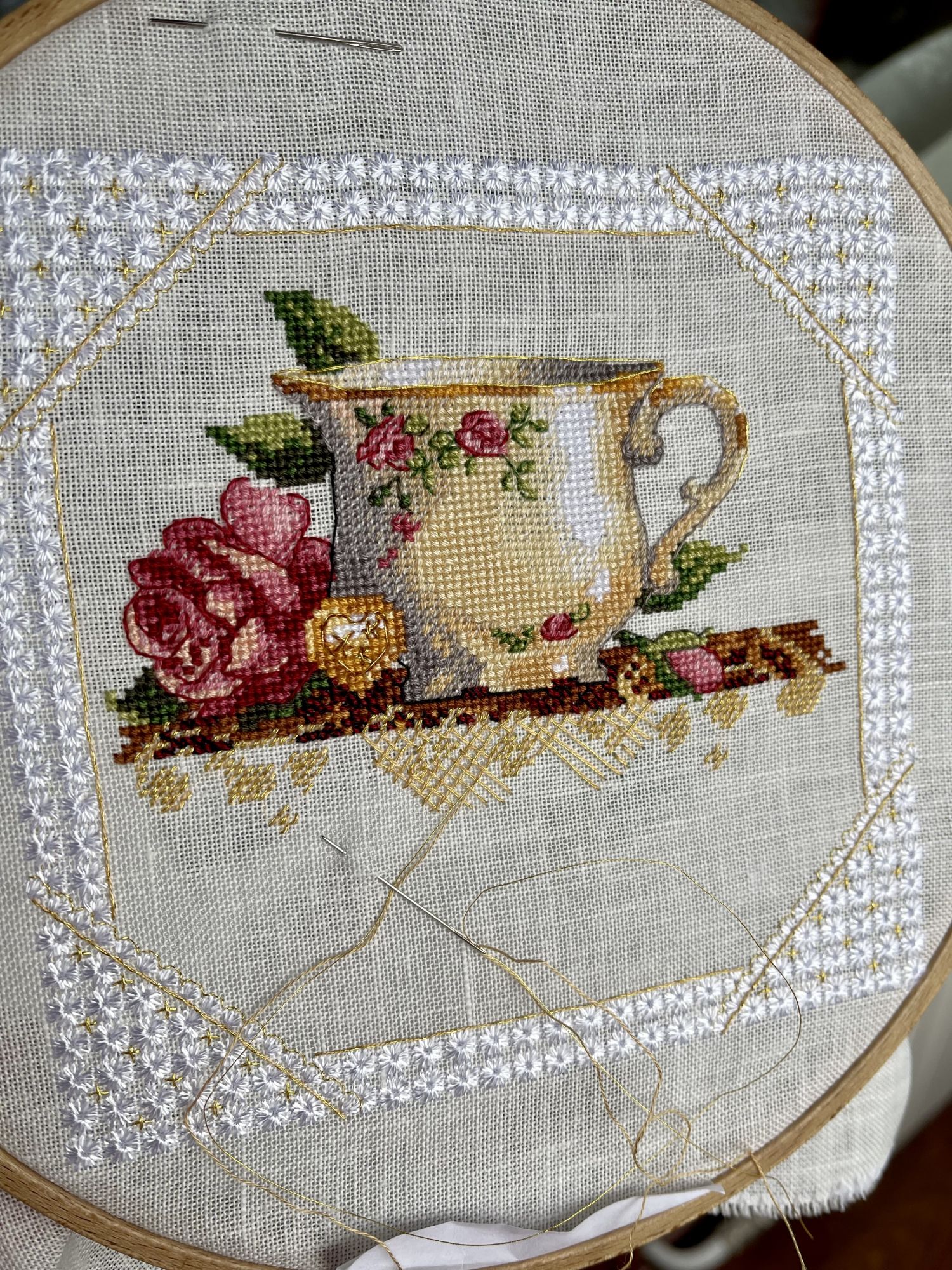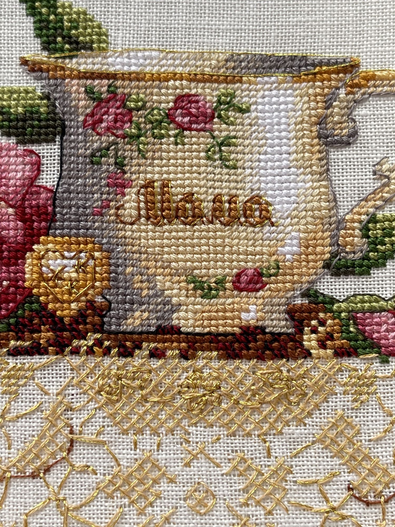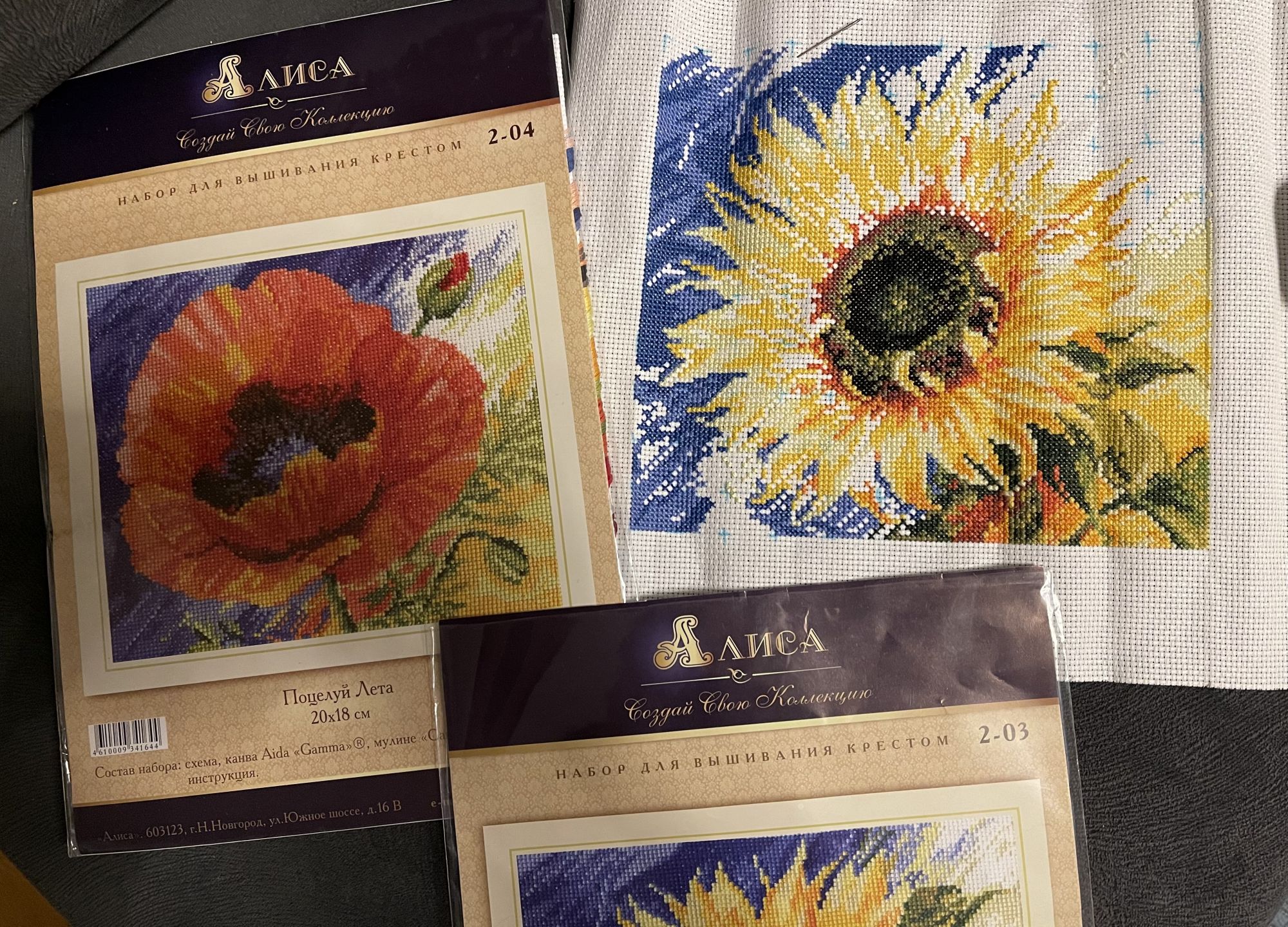 28 июля 2024 Июнь-июль прошли очень плодотворно, закончила два давно заброшенных процесса. Первый это Панна ВК-603, Настоящий мужчина. Посмотрела в Моих процессах - июнь 14 года, 10 лет назад!! Надоело мне тогда эти миллиметры на линейках-рулетках бэчить) Вот два фото, завершающие процесс: Подарок папе, мастеру на все руки. Пуговки-инструменты купила еще в те давние времена, а «глубокую» рамку составила из двух тонких багетов. Немножко изменила длину линеек, подвигала инструменты, чтобы они совместились с пришивными пуговицами; комбинезон сделала зеленым, как рабочая одежда у папы) А второй процесс - Мамина чашка, 6709 Dimensions. Начала его неск. лет назад, и тут же забросила) Потому что заменила аиду18 из набора на лен, и он мне быстро разонравился, мелкий. Итак, новый, и уже завершенный, процесс: Сама придумала надпись «Мама» на чашке, на основе разных вариантов с форума. Спросила маму: оставить ли надпись «Мама», или перешить на Mother? Сказала оставить, и оформление составилось тоже на ее вкус: Еще заменила нитки, вышила шовчики-звездочки по краям глянцевыми белыми сатиновыми нитками Анкор, оставшимися от процесса Девушка и лошадь. ..Это был самый сложный процесс за всю мою вышивальную «карьеру»! Помог совместник, в котором каждую неделю надо было выкладывать отчет) Я очень довольна, что спустя 3 (!) года наконец снова доехала до Улан-Удэ! Что навестила родителей, и каждому подарила на память картинку, к юбилею. Им уже 65… Как время-то летит! Так мечтала последний год обняться с ними, и вот сбылось! Еще и повидала школьных и студенческих подружек. Столько радости и счастья, получился у нас международный слет: Франция, Америка и Сербия) А по пути «залетела» в Иркутск, навестила свёкров и попала на свадьбу к племяннику. Завтра улетаю в Петербург, буду там разбарахлять квартиру, и вышивать петербургский процесс с крышами: Охотница, Путешественница, olnikva и 6 других сказали спасибо Поделиться сообщением Ссылка на сообщение