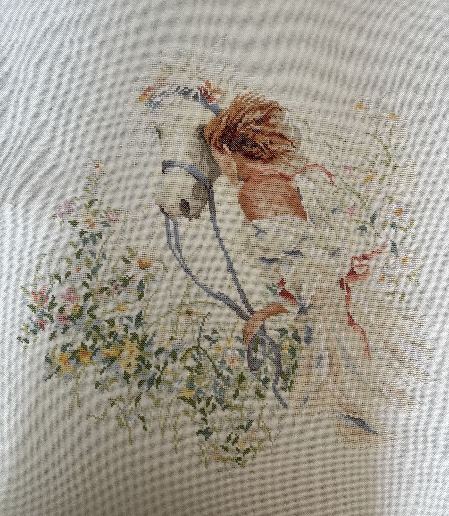 7 апреля 2024 И моя долгожданная радость, законченный долгострой, Девушка и лошадь от Ланарте: Отправила вышивку подруге в Иркутск, в подарок. Девушка похожа на нее, такая же женственная и нежная. Не получилось качественно сфоткать финиш, очень пасмурная погода была тогда в Питере) Поэтому темно, но ниточки атласные-белые выглядят очень здорово! И Космеи, Риолис 583, процесс завершен: Несколько лет хотела вышить эти цветочки, все забывала их купить. В последнюю поездку в Спб купила, и сразу же вышила. Вставлю в рамку из Леонардо, в комплекте с двумя другими похожими шерстянушками. Поэтому пришлось дизайн урезать, под размер рамки. Кое-какие цветочки подвинула сверху, снизу не вышивала тоже.. Охотница, PrimaN, Путешественница и 5 других сказали спасибо Поделиться сообщением Ссылка на сообщение