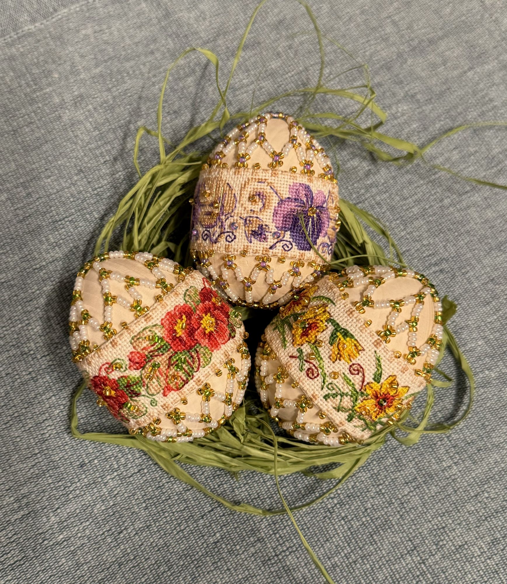24 июня 2024 Окончание процесса с Фиалками. Риолис В185: Вышила серединку у фиалок желтым, взяла нитку из остатков Нарциссов. Из неприятностей - белого бисера не хватило 3 штучки! Взяла тоже из остатков вышитых яиц. На очереди теперь Подснежники) Обнаружила, что в оставшихся трех яйцах бисер не жемчужный, а более белый. Буду заменять, если найду такой же. И лугана в Землянике белая (как и была в Нарциссах), а не бежевая. Тоже заменю, хочу чтобы были одинаковые. Радуюсь пополнению своей коллекции! Охотница, Путешественница, Bogdan и 3 других сказали спасибо Поделиться сообщением Ссылка на сообщение