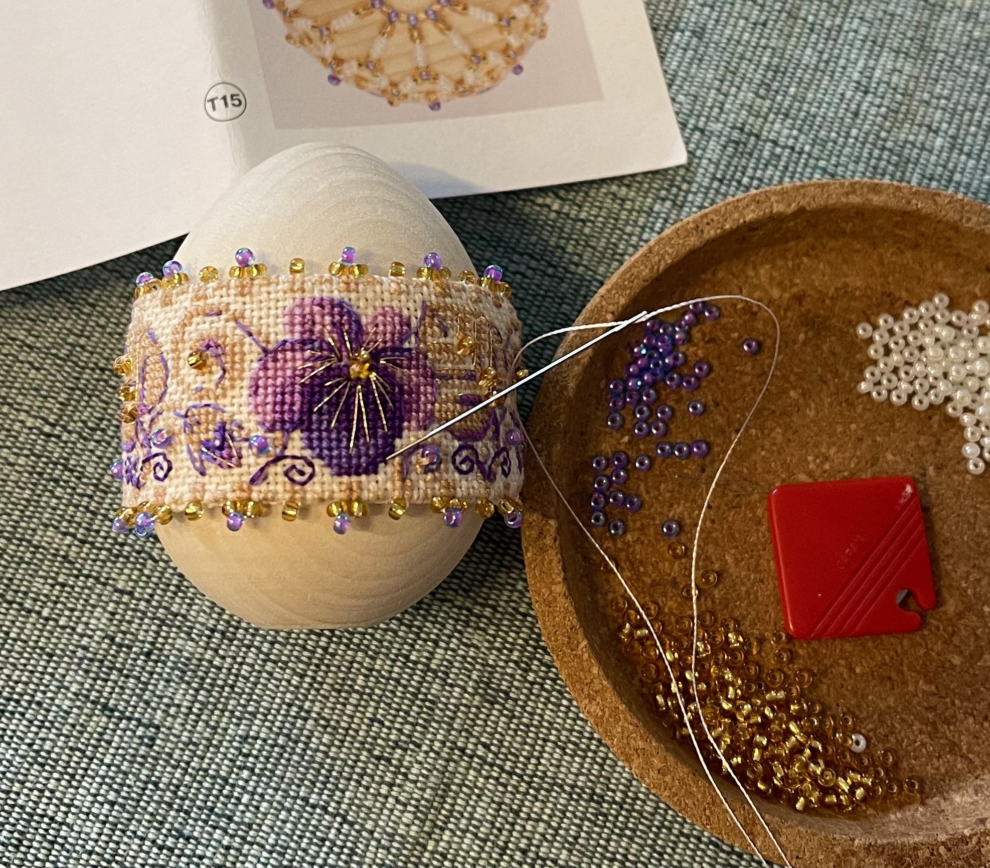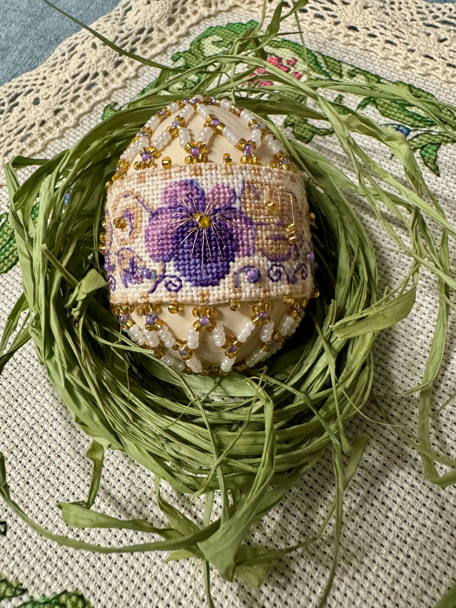 15 мая 2024 Законченный процесс, яйцо Примула /Риолис В220 (замена белой Луганы из набора на бежевую): Второе яичко шло быстрее, опыт появился) Почему-то в этом наборе (как и в синих Васильках) была вложена белая Лугана. Я же решила все шесть вышить на одинаковой, бежевой. Поэтому разрезала полоску луганы из другого набора пополам, как раз с припусками хватило. Бэк вышила разными цветами: зеленый, бордовый из набора; коричневый подобрала из своих запасов. Результат понравился больше, чем одним бордовым цветом по схеме, судя по обложке. Бисер плелся быстрее, и все же пару раз ошибалась и распускала. ..Следующее на очереди - яичко с Фиалками! Забава_, Bogdan, Охотница и 2 других сказали спасибо Поделиться сообщением Ссылка на сообщение