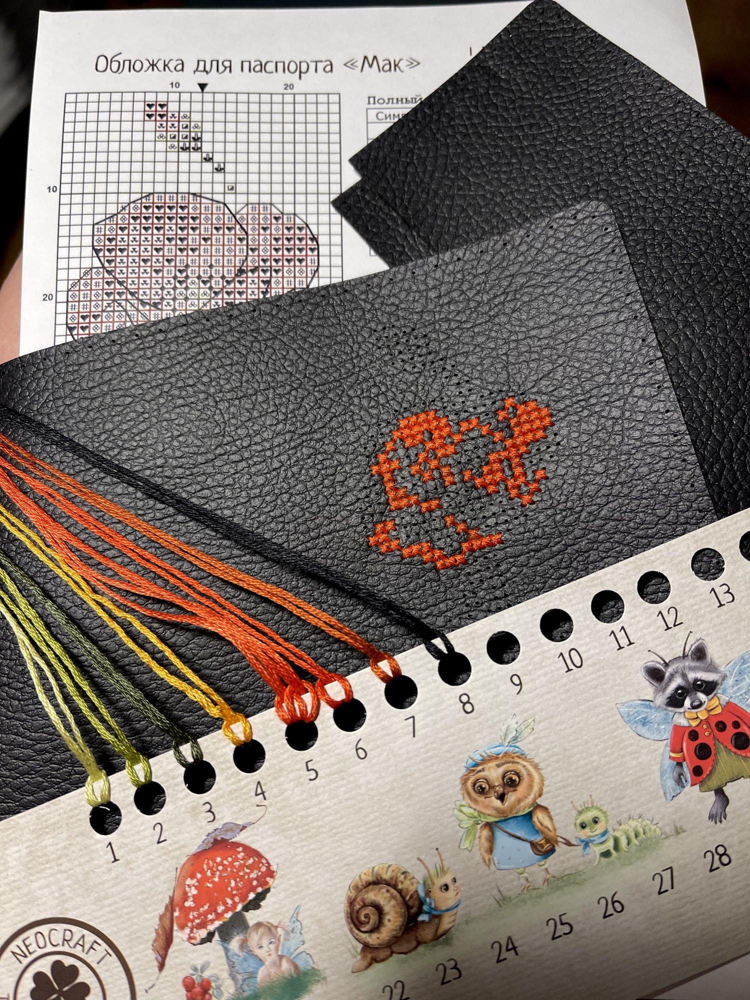 24 июня 2024 И еще у меня июньская вышивальная обновочка: обложка на паспорт с Маком. Процесс Неокрафт (Neocraft) НК-18a: Вышила в 3 нитки; и бэк на стебельке более светлым зеленым цветом. Сначала попробовала забэчить по схеме, темным зеленым, но в 2 нитки. Не понравилось, перешила. Обложка нравится, оригинально и быстро. Комплектация набора не понравилась: схема трудно читаемая, и на фото готового изделия нет бэка на листьях-стебельках. За немалую цену всё должно было быть на максималках) Забава_, Bogdan, Palex и 3 других сказали спасибо Поделиться сообщением Ссылка на сообщение