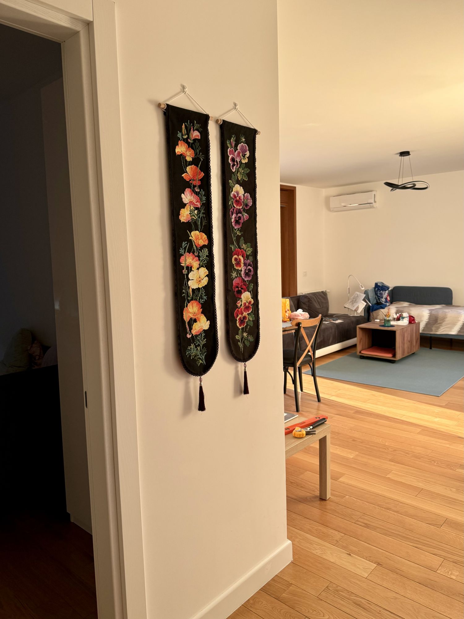 25 октября 2024 Спасибо за слова поддержки, девочки дорогие! Да, жизнь продолжается.. Выложу очередной новый и оконченный процесс: Рто М70027, Лесной декор. Лиса Немножко заморочилась, решила добавить 3/4 крестиков, чтобы сгладить контуры. Из-за этого морду пришлось распарывать и перешивать. Но итог мне понравился больше, чем на обложке. И бэк ровнее улегся. Вышивка была заброшена в 23 году, когда я поняла что морда не получилась; но теперь я ее достала и закончила! Следующие на очереди Медведь и Сова, оформлю все их потом в синие пластиковые пяльцы, уже купила подходящиго размера. Классные наборы, на равномерной линде напечатаны тарелочки красивых цветов. Невкусно пахнут тряпочки и нитки, видимо краска такая, но за неск. дней проветриваются) И еще один важный финиш: тоже целый год пролежали в шкафу вышитые панельки Риолис. И наконец я сшила из них панно! Фото в старинном интерьере сделала в уютном кафе, на встрече белградских вышивальщиц. И даже отправила заявку на конкурс к дню вышивальщицы! Похвастаюсь девчонкам)) Швея из меня так себе, уровень самый начальный) Поэтому очень радуюсь, что получилось все ровно, как я хотела. Намучилась с ними! Сметывала не той стороной, распарывала) Ткань на задник села при глажке, хорошо что припуски большие были. Потом машинка рвала нитку, так я и не поняла почему. Заменила на др. катушку, вроде ок, наконец сшилось. Затем лично вбила в стену два гвоздя-крючочка, и повесила) Сын помог подержать и разметить точки на стене. Не помню даже, когда послед. раз гвозди забивала. В детстве наверное? Всегда муж это делал раньше.. Стену выбрала в коридоре, где минимум солнечного света, чтобы тряпочки не выгорели слишком быстро. Кот пытался поймать кисточки, пока вешала) Набрызгала их духами, надеюсь что запах его оттолкнет. Вроде пока что не покушается на них. Эти цветы я вышивала, когда мы сначала покупали, и потом когда уже заехали в нашу теперешнюю квартиру. Сказала тогда, что именно для них я забью первые гвозди в стены, в этой квартире) И вот свершилось, жаль что Женя не увидел Очень теплые воспоминания связаны с этими вышивками: первое жаркое лето 22 года в Белграде, новая жизнь, другая вселенная..… В планах на ближайшие полгода- повесить наконец на стены мои любимые икейские полки под картины, чтобы расставлять на них вышивки в рамках. Охотница, Путешественница, S4astlivaja и 4 других сказали спасибо Поделиться сообщением Ссылка на сообщение