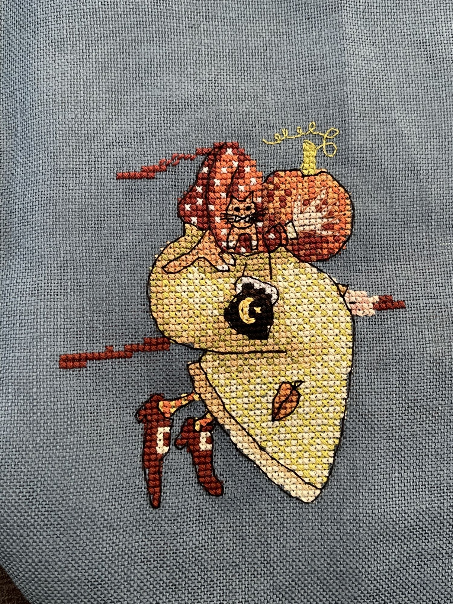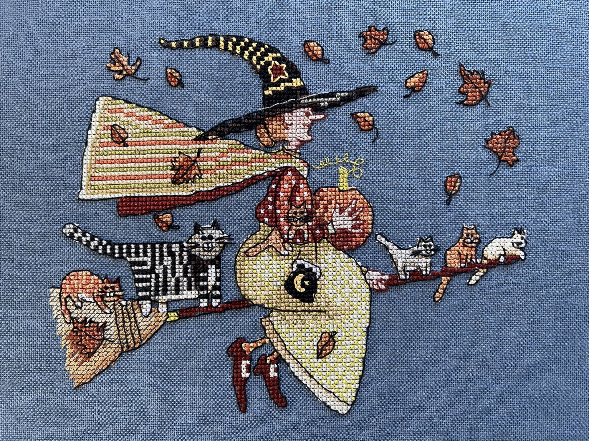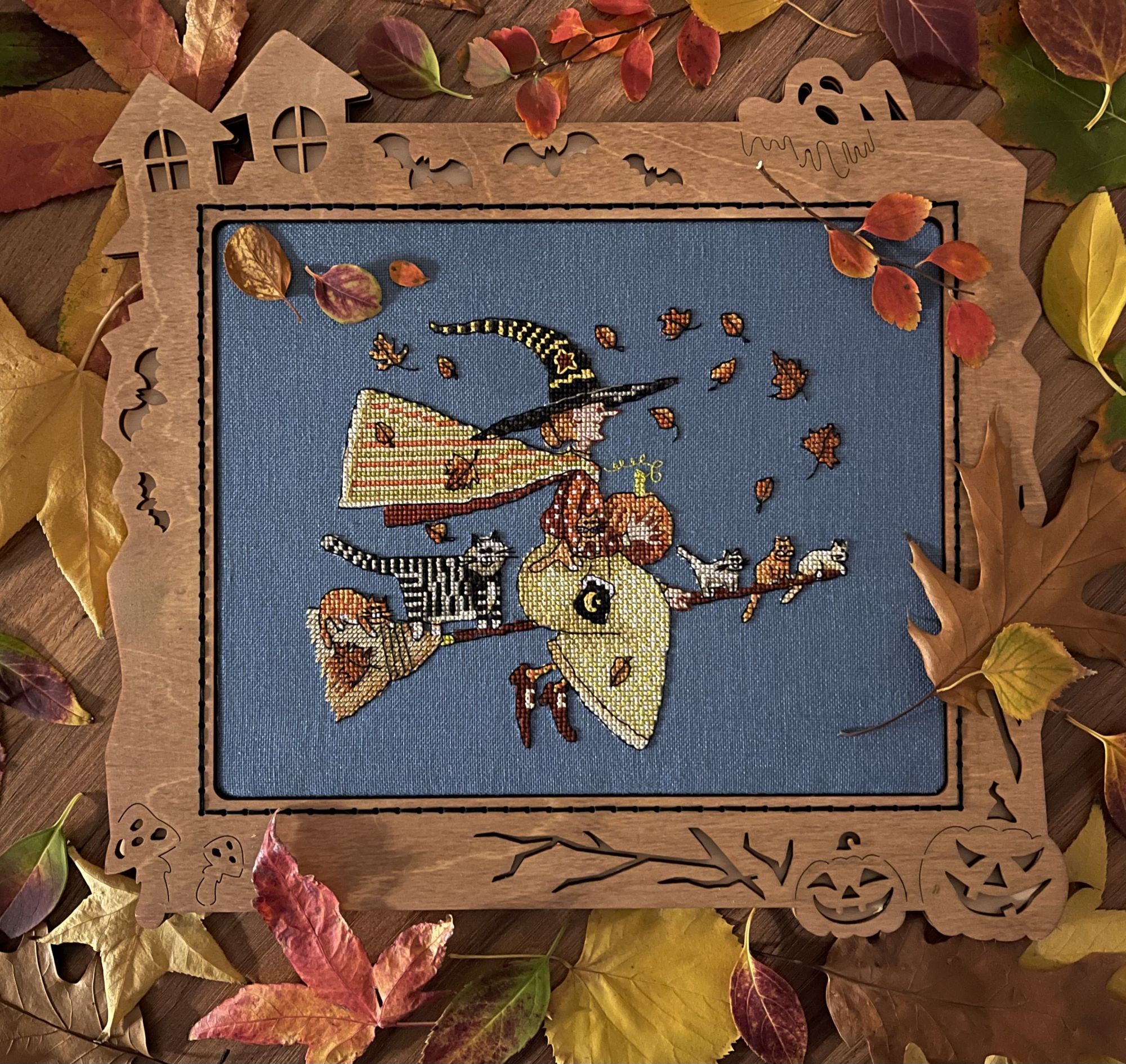 17 ноября 2024 Ну что же, я очень рада победе моих риолисовских панелек на конкурсе! Третью звездочку получила, за первое место в категории Серии прикладное Спасибо всем, кто голосовал за мою работу, может быть. Теперь буду добавлять готовые процессы, и оформленные вышивки. Новый и оконченный процесс: Совиный лес, Осенние коты: Вышила Котиков на Кашеле цвета голубая ель, 578. В этом проекте интересно было сделать имитацию меланжа, используя темный и светлый оттенок каждого из цветов. Получилось нескучно, мне нравится) Для меня этот дизайн ассоциируется с временем года конец октября-ноябрь. Когда небо уже сумрачное, и падают первые снежинки, но еще встречаются на земле яркие осенние листья, и даже зеленая трава. И в пару к октябрьским котикам - дизайн На шабаш, от Неокрафт. Белую равномерку из набора заменила на белфаст, снова цвета 578. Нитки смотрятся на темном фоне ярко, но только бэк лица и руки пришлось перешивать, темно-коричневым вместо светло-коричневого. Иначе контуры было плохо видно на темном фоне. Оформила в рамку с тыквами. Не понравилось, что от этой рамки на ходу отслаиваются кусочки. Подклеила, буду беречь. Лен не стала обрезать впритык, подогнула и укрепила края полосками ткани, перед натяжкой в рамку. Вышивать начала заранее, чтобы успеть к концу октября. В итоге в рамку вставляла в последний день) И всё же успела! Теперь у меня есть первая тематическая вышивка к хеллу, через год еще что-нибудь добавлю. Процесс, новый и завершенный, Неокрафт СП-03: Забава_, Дикая белочка, Путешественница и 5 других сказали спасибо Поделиться сообщением Ссылка на сообщение