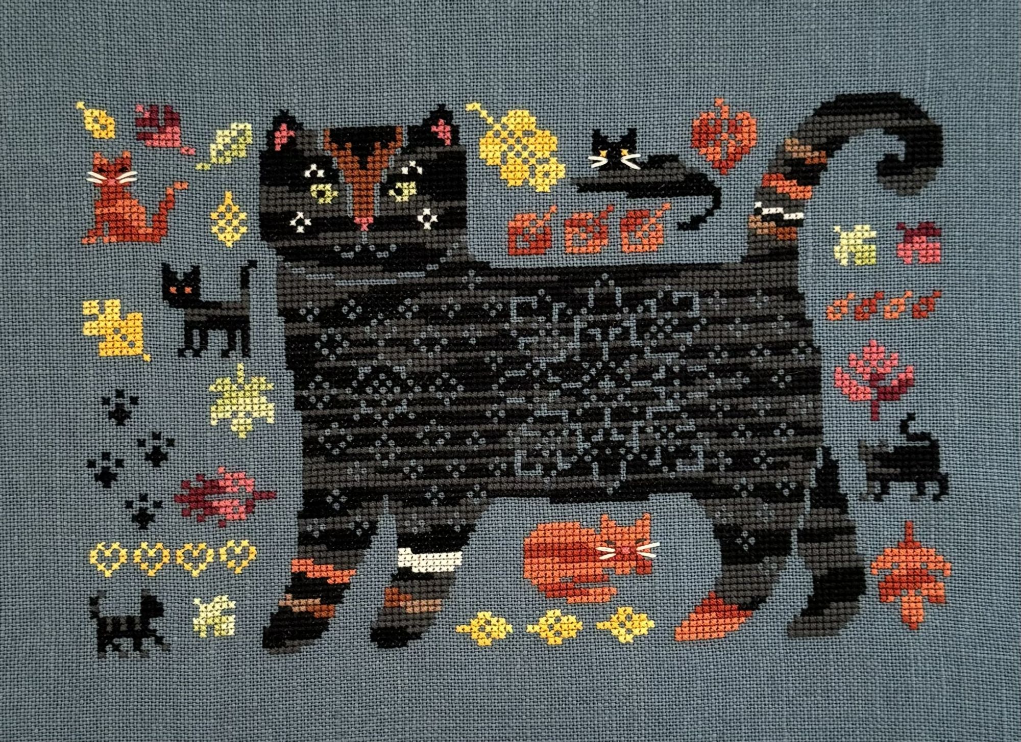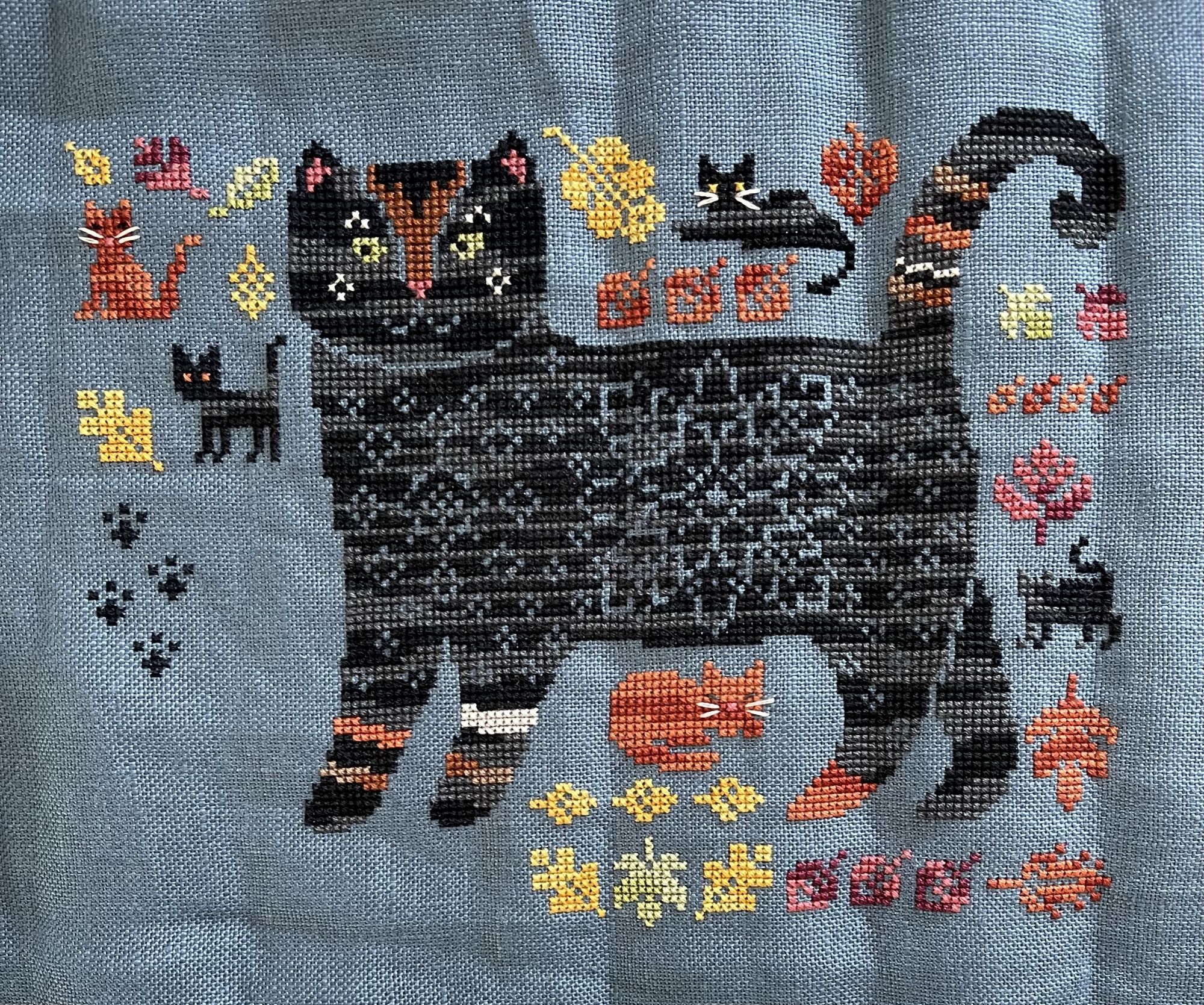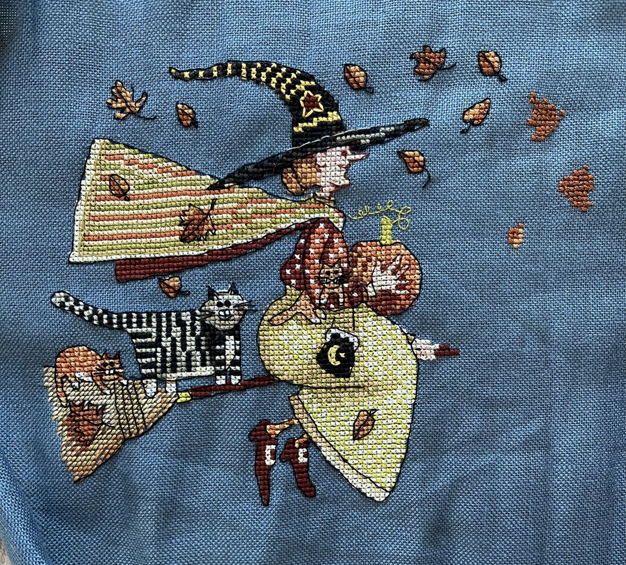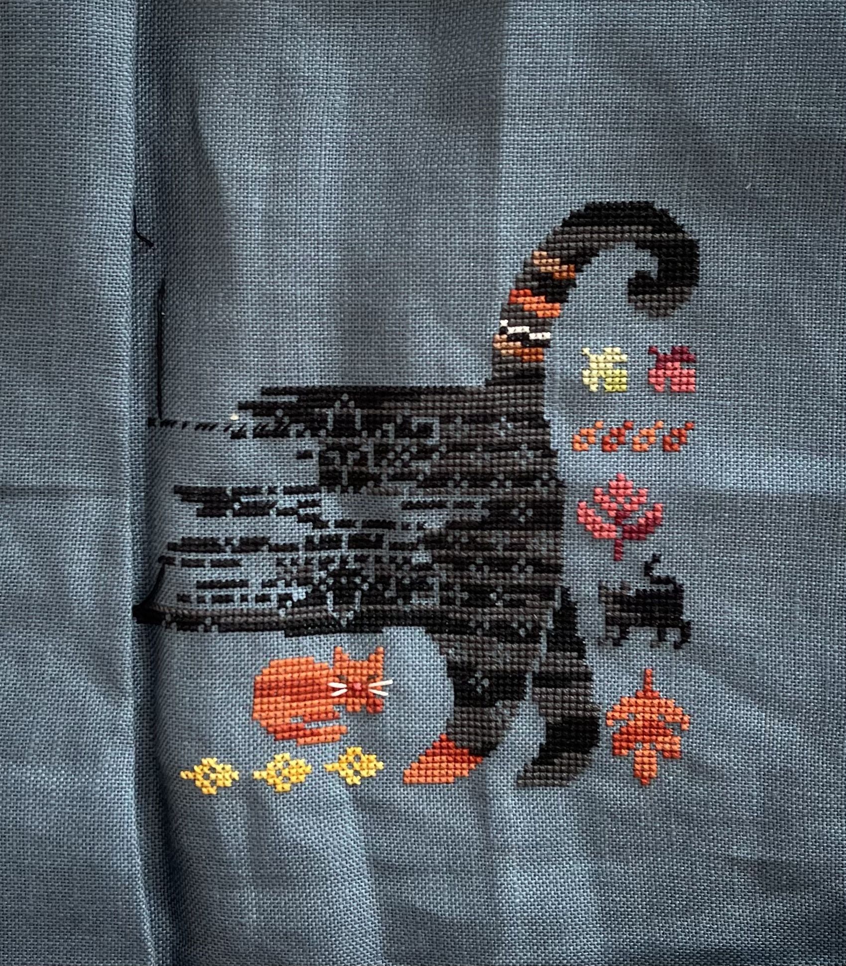 17 ноября 2024 Ну что же, я очень рада победе моих риолисовских панелек на конкурсе! Третью звездочку получила, за первое место в категории Серии прикладное Спасибо всем, кто голосовал за мою работу, может быть. Теперь буду добавлять готовые процессы, и оформленные вышивки. Новый и оконченный процесс: Совиный лес, Осенние коты: Вышила Котиков на Кашеле цвета голубая ель, 578. В этом проекте интересно было сделать имитацию меланжа, используя темный и светлый оттенок каждого из цветов. Получилось нескучно, мне нравится) Для меня этот дизайн ассоциируется с временем года конец октября-ноябрь. Когда небо уже сумрачное, и падают первые снежинки, но еще встречаются на земле яркие осенние листья, и даже зеленая трава. И в пару к октябрьским котикам - дизайн На шабаш, от Неокрафт. Белую равномерку из набора заменила на белфаст, снова цвета 578. Нитки смотрятся на темном фоне ярко, но только бэк лица и руки пришлось перешивать, темно-коричневым вместо светло-коричневого. Иначе контуры было плохо видно на темном фоне. Оформила в рамку с тыквами. Не понравилось, что от этой рамки на ходу отслаиваются кусочки. Подклеила, буду беречь. Лен не стала обрезать впритык, подогнула и укрепила края полосками ткани, перед натяжкой в рамку. Вышивать начала заранее, чтобы успеть к концу октября. В итоге в рамку вставляла в последний день) И всё же успела! Теперь у меня есть первая тематическая вышивка к хеллу, через год еще что-нибудь добавлю. Процесс, новый и завершенный, Неокрафт СП-03: Забава_, Дикая белочка, Путешественница и 5 других сказали спасибо Поделиться сообщением Ссылка на сообщение