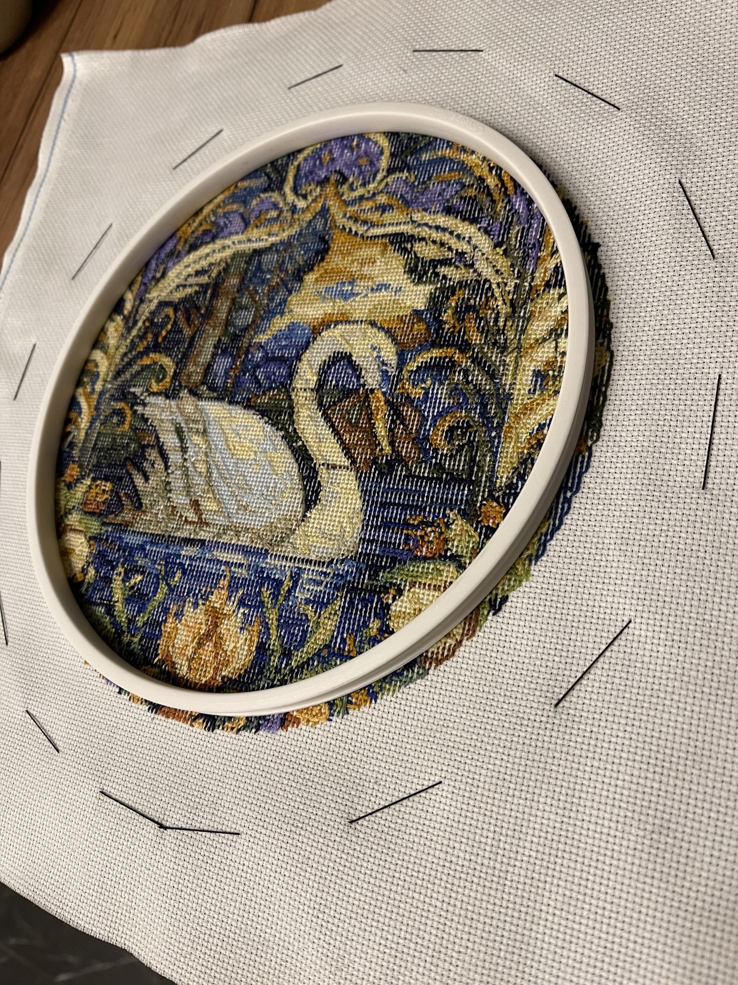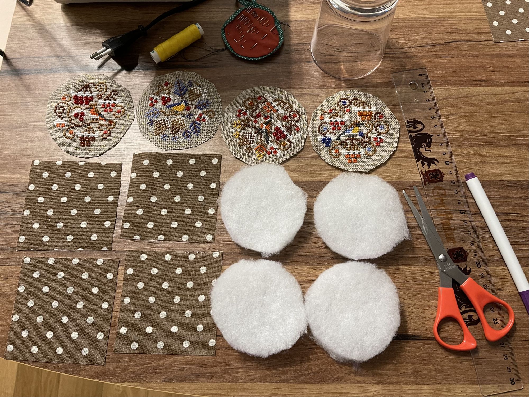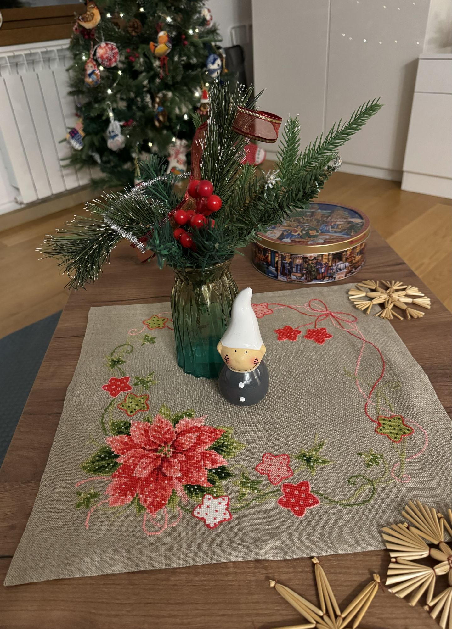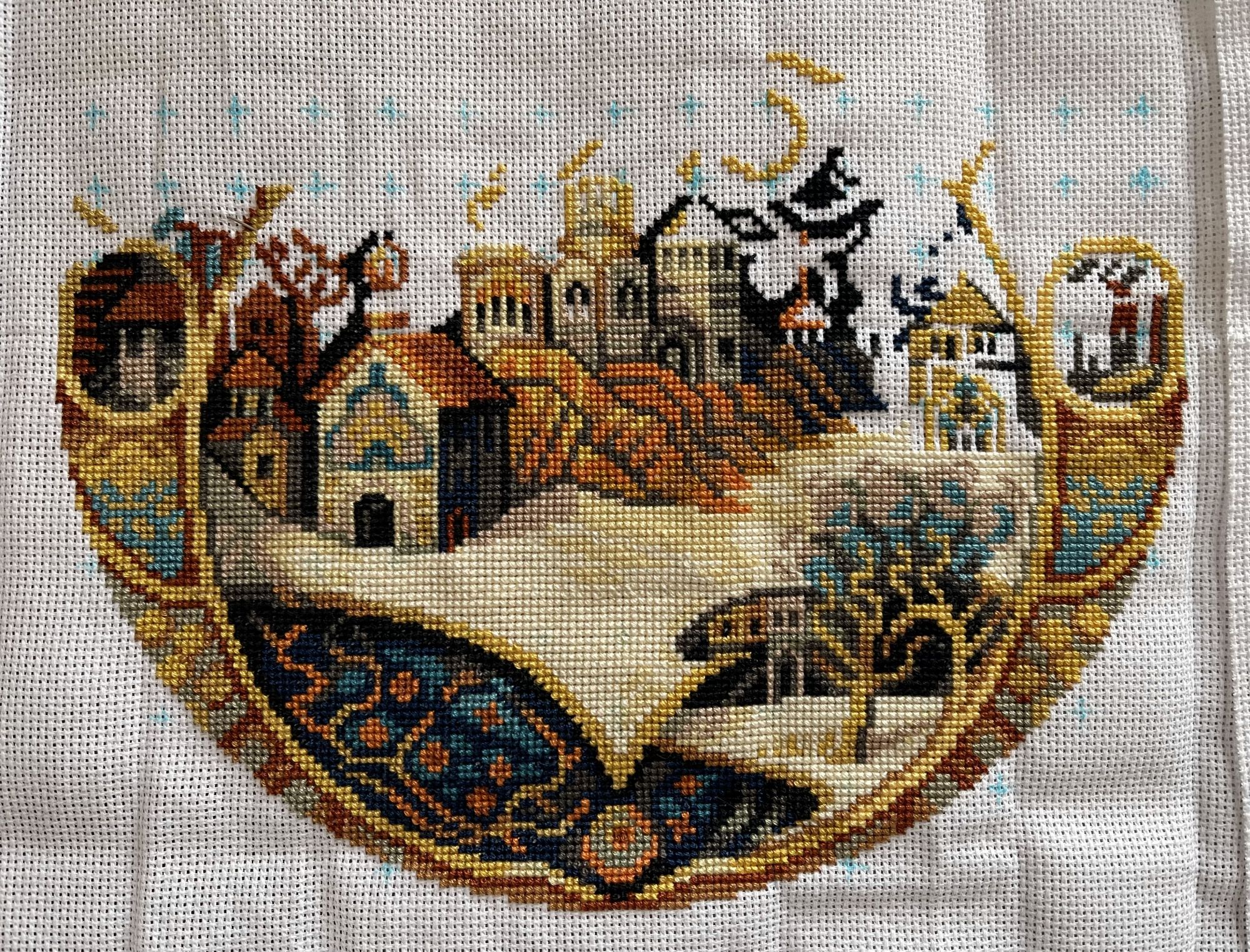 1 ноября 24.10.2025 в 16:00, Узорчик сказал(а): Какие приятные сюжеты! Воздушный шар приглашает в путешествие! Сложно было в такие пяльцы вставить, чтоб вошло ровно? я такие пяльца иногда использую для самой вышивки, они тугие, а здесь надо чтоб чётко сработать. Волшебный листопад - он действительно волшебный! Уютный и тёплый! Хорошего настроения под процесс! Спасибо за добрые пожелания! В пяльцы вставлять совсем не сложно, если при глажке растянуть круги хотя бы на 3мм больше диаметра кольца (23см). Обычно одна сторона канвы садится, другая уже после стирки 23,3-23,5 см. Растягиваю утюгом севшую сторону, до размера второй стороны. И уже после надевания внешнего кольца пялец, можно подтягивать по краям, где нужно. Пяльца пластиковые и гнутся, можно не просто тянуть канву, а чуть сгибать пяльца в этом месте, и канва легко двигается. ..Лошадку я вставила пока что в розовые пяльцы, нашла еще одни. Под венок с гранатом их покупала, который еще не вышила. Выложила коллекцию кружочков на конкурс, ко дню вышивальщицы)) Хотела в 25 году вышить 12 кругов, по одному за месяц) Но теперь уже ясно, что не успею) Да и все равно пяльцы закончились. Поэтому пока что переключусь на другие процессы. Есть продолжение процесса Овен 1479: Почитала отзывы на сайте, странно что пишут некоторые, что там аида18, а в моем наборе 16-тая. А я рамку уже купила, в Леонардо 20х25, тоже в готовых работах увидела подходящую рамочку деревянную. Надо будет прикинуть размер, войдет ли? Если нет, придется двигать сверху месяц. И начала комплект раритетных елочных игрушек, Дим 08813 Old World Holiday Ornaments: Это начало нового процесса. Подбор, потому что набор этот давно уже не продается. И надеюсь, что я его закончу хотя бы к следующему нов. году) Потому что задачка получается со звездочками, не из легких. Размер шариков большой, поэтому аида18; хотя я бы предпочла 16-тую. Аиду18 айвори взяла такую же, какая была в оригинальном наборе. Осталась от Маминой чашки айвори аида18, как раз впритык на 4 квадратика ее разрезала. И вытащила еще один кусок такой канвы из нового мини-голда, еще на 2 квадратика хватит. Есть Сага, и это плюс; нитки Дмс в ключе - не всегда сходятся с оригинальными цветами Дим, это минус. Вышиваю по ключу, нитками из остатков от Димов, у меня их много. Но уже столкнулась с тем, что один зеленый цвет закончился, а Дмс в ключе, предложенный на замену, не похож на оригинальный Димовский. Подобрала максимально близкий цвет из своих остатков от набора Мир вышивки, от вышитых кругов. И уже посмотрела: соседний зеленый цвет - Дмс на замену тоже отличается. Поэтому задачка со звездочкой - придется подбирать самой похожие цвета. Кроме того, там будет золотой металлик, и золотой бисер; и кординг плести придется. Но зато красиво! И процесс будет интересным)) ..Вышивать почти некогда, я ведь проболела 2 недели в октябре. И теперь устаю, и много сплю. Потихоньку разгребаю список накопившихся дел. До сих пор откашливаюсь, в этот раз меня противный вирус с сильным кашлем зацепил. После дождей и холодов у нас наступила теплая и солнечная золотая осень, и сезон слив. Днем даже в футболке можно ходить, +23. После дождей наросла новая зеленая трава, и даже цветочки и одуванчики расцвели) Мое любимое время года здесь, в жаркой Сербии: сентябрь и октябрь, когда не жарко и красиво, природа зеленая-желтая-красная. И цветы даже есть, последние розы цве