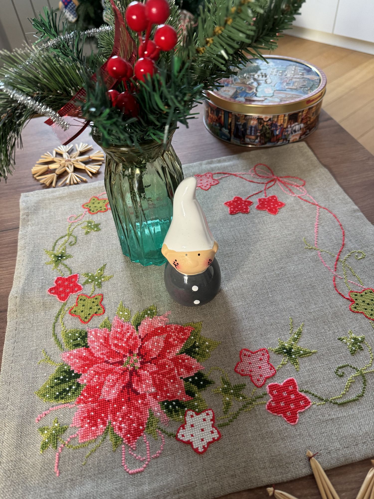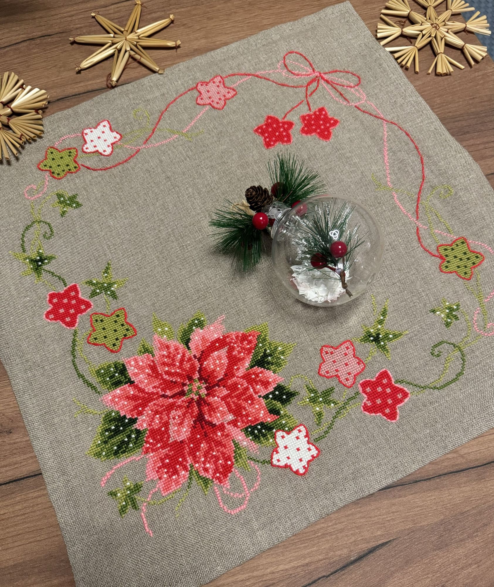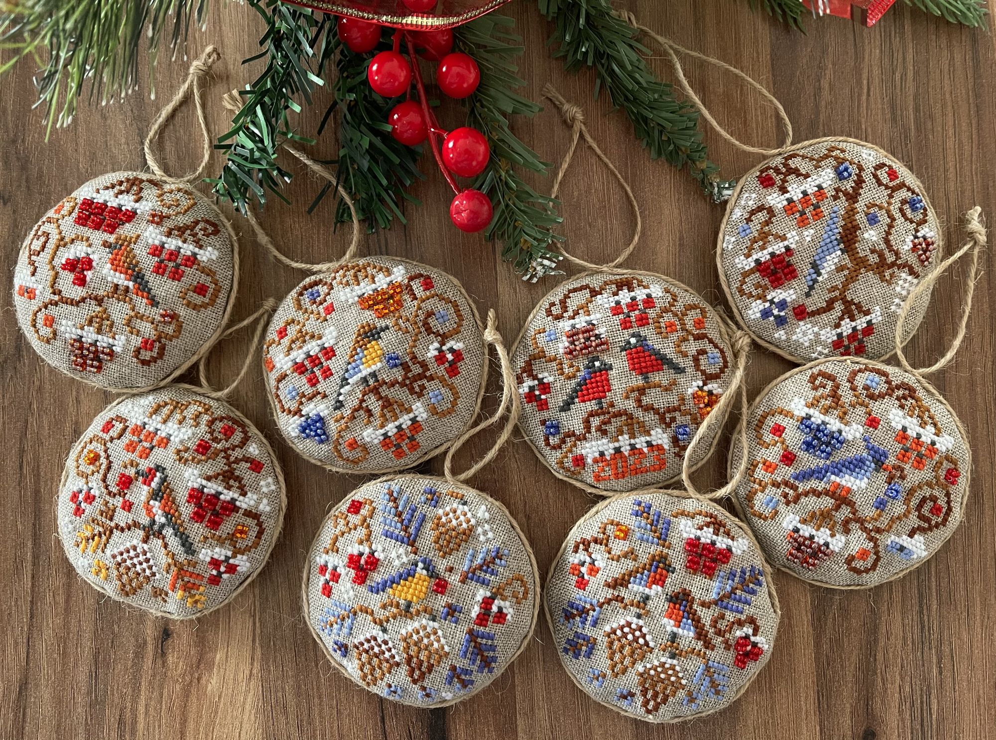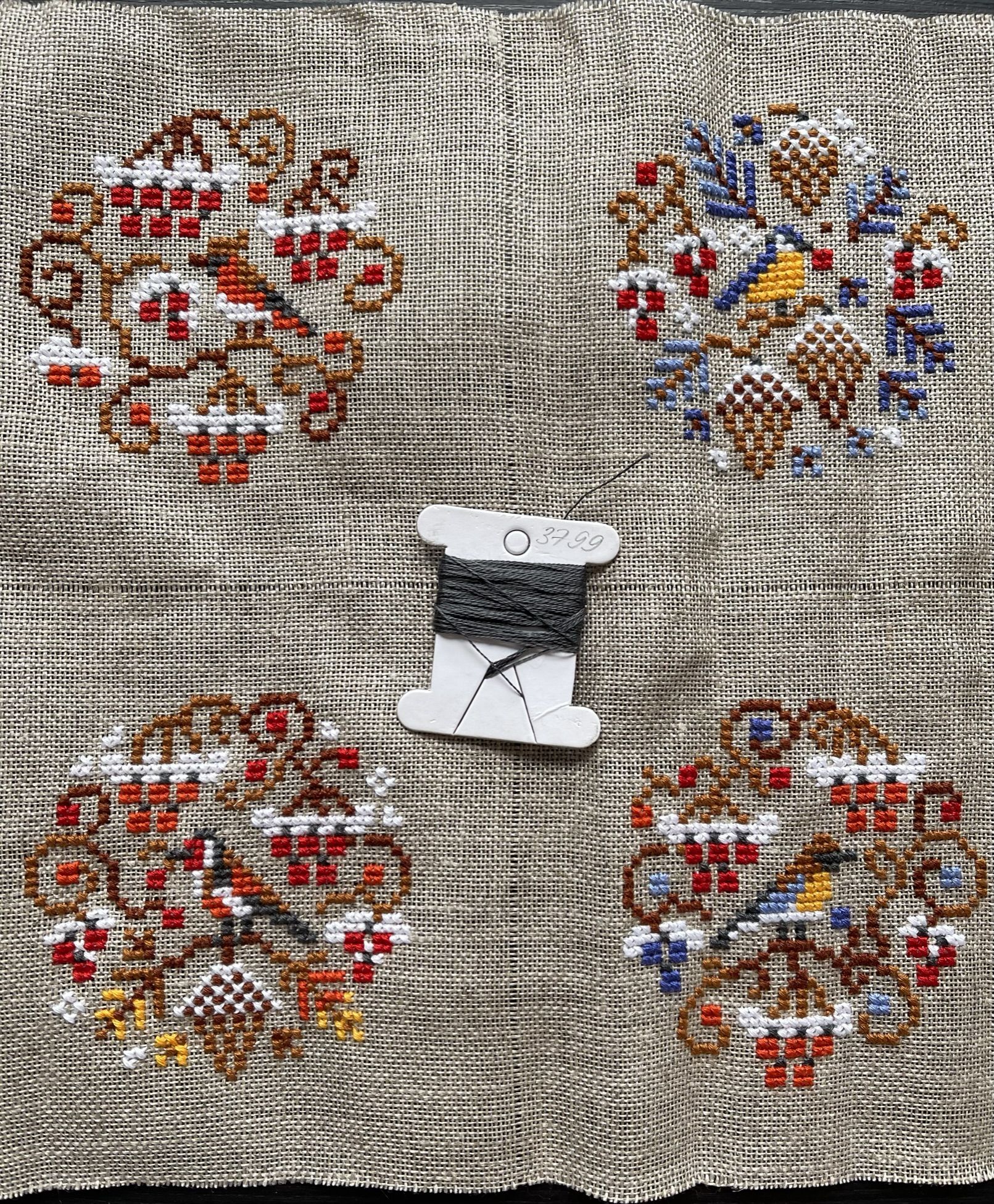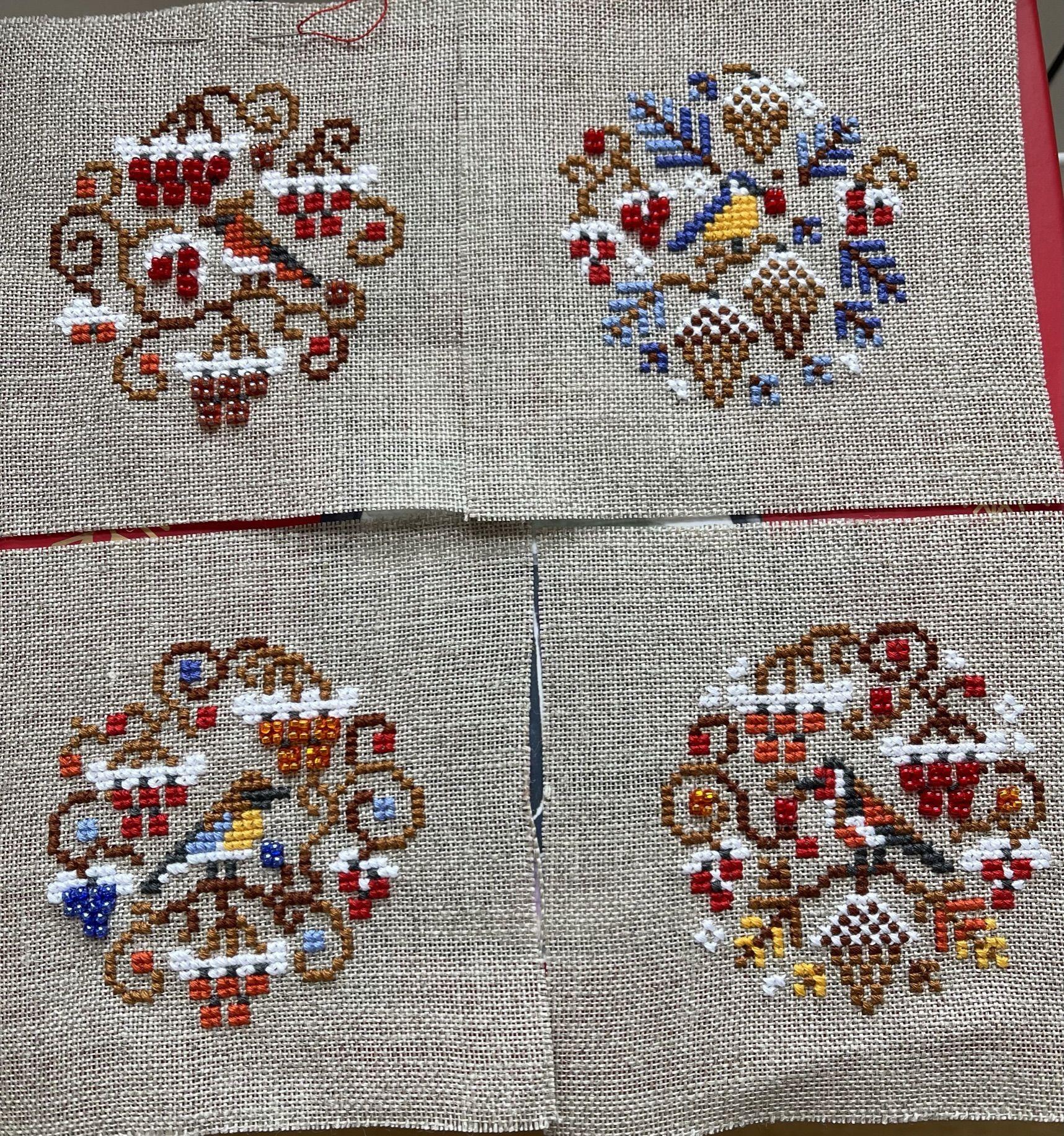 23 января Выложу законченный процесс-долгострой. Ежегодный новогодний комплект елоч. игрушек, за 2023 год. Новый, и завершенный процесс; Совиный лес (OwlForest) 0242-ЗП-Э «Зимние птички» Снова примитивы; снова лён Dmc, снова имитация меланжевых переходов светлыми и темными цветами)) Веселый получился процесс, поиграла с цветами ниток и бисера. И хорошо, что остатки бисера немного уменьшились. Рада, что в 24 году у меня получилось и вышить новые игрушки, и доделать прошлый долгострой. В 25 году попробую так же: вышить что-то небольшое за 25 год, и закончить новогодний комплект-долгострой. У меня таких несколько накопилось, за прошедшие годы. Также в этом году я попробую продолжить свой «финишный забег». В конце прошлого года у меня получилось сделать 16 финишей за 13 недель! Перевыполнила даже план на три И теперь финишный марафон продолжается: три пятницы в январе, и три финиша. Сшила Птичек; к старому нов. году закончила салфетку, обшила края. И Лебедя вставила в пяльцы! Кружок с Лебедем после глажки стал чуть даже больше, чем диаметр пялец. Первые два фото салфетки не могу почему-то добавить в Готовые, пусть останутся хотя бы здесь: Салфетка очень нравится, красная шерсть красиво смотрится на льне. Не пожалела, что заменила белую аиду из набора. Tatiana Ch., Nyurka-86, Fiona2025 и 8 других сказали спасибо Поделиться сообщением Ссылка на сообщение