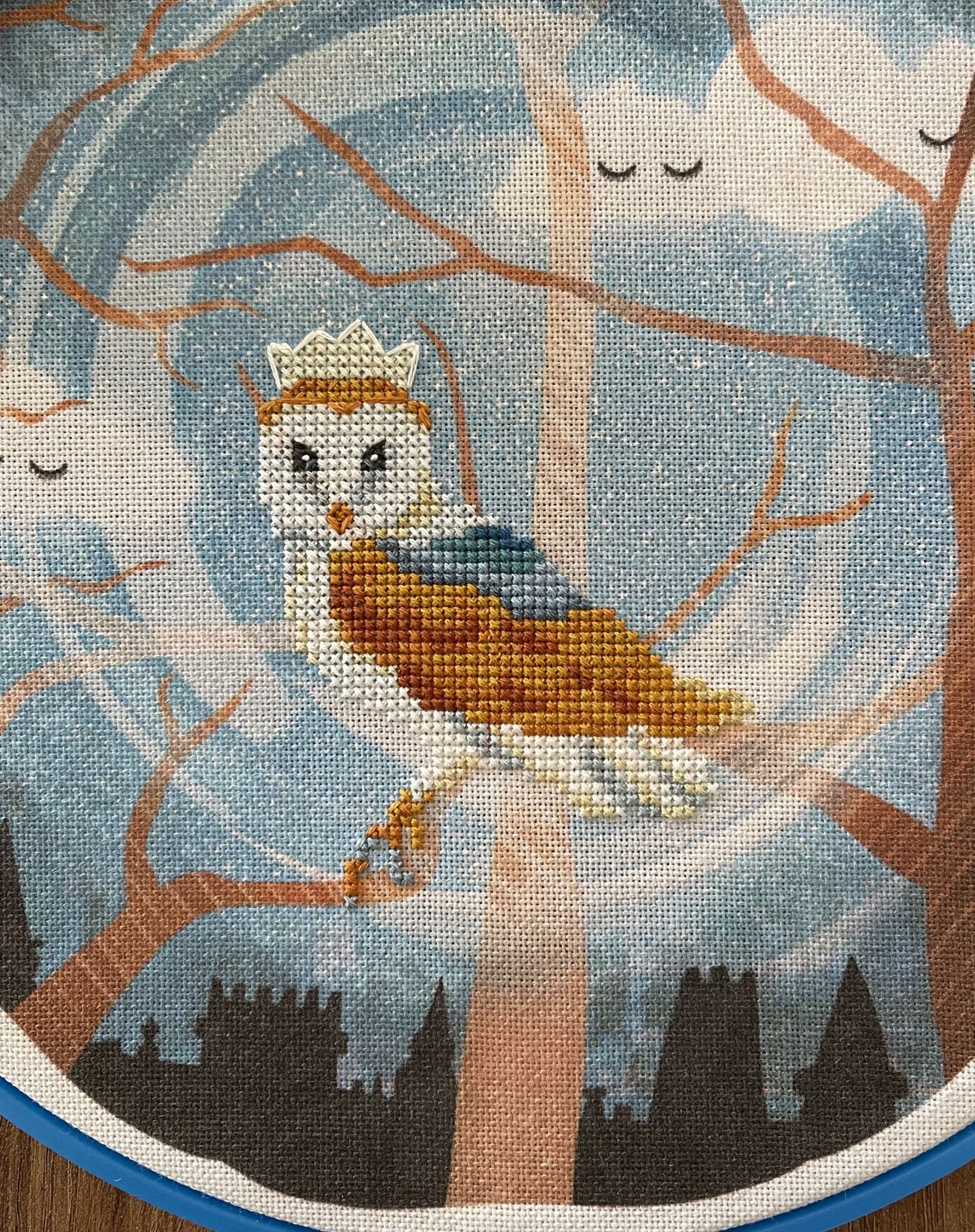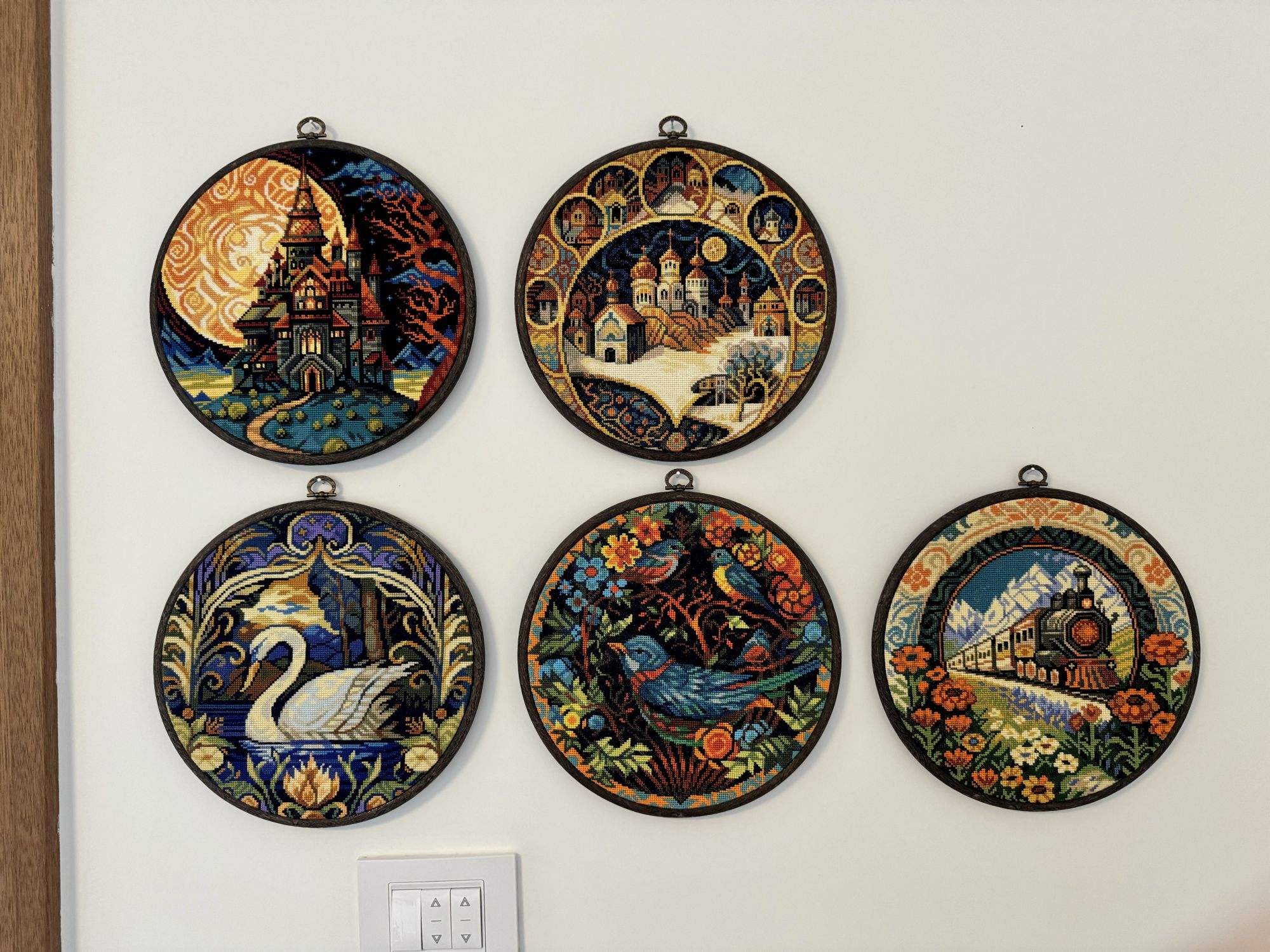 31 января Продолжаю гонку за финишами: 31 января это пятая отчетная пятница 2025 года, и у меня еще 3 финиша, итого шесть. Закончила вышивать второй круг, Мир вышивки, MV-120D, Лунная обитель Новый (и завершенный) процесс: В этом дизайне мне понравилась огромная и узорчатая луна. Начала под новый год, вышился примерно за 3 недели. Представляю, что Замок - это «мой дом, моя крепость»)) А волшебная луна - это его магическая защита. Еще два финиша - вышила Сову, и оформила ее в пяльцы. RTO M70026. Лесной декор. Сова На Стиче есть одна такая вышитая совушка, в готовых работах. А процесса - ни одного, мой будет первым) Как и Медведь. Итак, процесс, новый и законченный: Заморочилась заменой голубых трех цветов, хотела вышить поярче, как на обложке. В итоге нижнюю голубую полоску распорола, снова вышила ее цветом из набора, по ключу) Пришла к выводу, что можно было и не заменять цвета, итак хорошо бы вышло) Наконец все три тарелки висят на стене! Чему я очень рада) Эпопея с ними длилась с 23 года. Это довольно долго, учитывая что крестиков в дизайнах мало. Вернусь в феврале из очередной «командировки» в Питер, и возьмусь заканчивать еще какой-нибудь комплект на стену. Есть у меня два шерстяных Риолиса, Дача.Весна, с замечательным голубым стульчиком и нарциссами, недошитая. И в пару Дача.Зима, с кормушкой для птиц, и белочкой. И есть три сказочных домика от Марьи: чайный, кофейный и еще какой-то) Один вышит наполовину… И в весенние планы, конечно же, нужно записать какую-нибудь новую поделку к пасхальному столу. Лежит в запасах деревянная подставка под яйца, с цветочным весенним букетом. И еще три плетеных яйца риолисовских остались не вышиты, в коллекцию… Не люблю вышивать на твердых пластиках и деревяшках. Яйца - тоже не из простых: микро-вышивка, через 1 нить основы; потом сшивать и бисер плести. Заранее буду настраиваться, на вышивальный такой подвиг)) А пока что в поездке буду продолжать третий кружочек, Золотой город. Tatiana Ch., relax_cross_stitch, Fiona2025 и 8 других сказали спасибо Поделиться сообщением Ссылка на сообщение