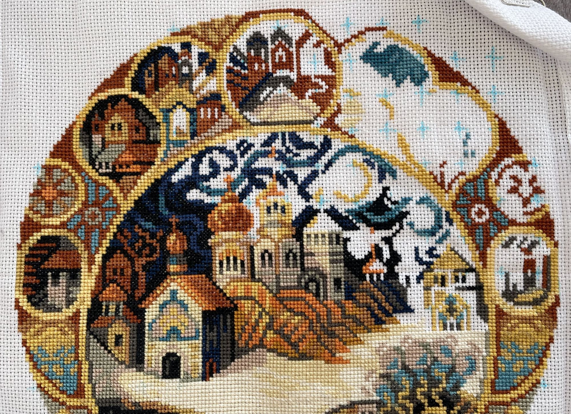 1 июня Ну что же, подведу итоги за май: очередной кружок закончен, Золотой город! И это 21-вый финиш, к 22-ой пятнице этого года. И я наконец забила гвоздики! теперь есть официальное место на стене для моей коллекции кругов) Окончание процесса Мир вышивки MV-122D, Золотой город: Начала его еще зимой, когда ездила в такой же сказочно-заснеженный Петербург. Здесь много мелких деталей, часто нитку менять приходилось. Но зато интересно было заканчивать каждый маленький сюжет-медальончик, с разными пейзажами. И новый процесс, Мир вышивки MV-108D Фонарь: Это первый мой процесс с Сагой, наконец я ее опробовала! Действительно, удобно и быстро получается с ней вышивать по цветам. Последние выходные мая провела, погрузившись в этот новый процесс, и в истории про волшебный город Эхо. Неожиданно затянула меня эта фентези-вселенная Макса Фрая, слушаю аудиокнижки одну за другой запоем, и не знаю как буду завтра вытаскивать себя в реальный мир)) …..Кроме гвоздиков, теперь у меня есть на стенах икейские полки для картин, буду ставить на них оформленные вышивки. Вызвала мастера (тоже целый год собиралась это сделать), и он повесил три светильника и полки, и передвинул 3 розетки. Розетки - самая долгая и пыльная работа оказалась. Потом два выходных отмывала две комнаты, все сплошь покрылось мелкой штукатурной пылью от штробления. Теперь можно будет переставить кое-какую мебель, раньше розетки мешали. И давно хочу купить буфет, деревянный-резной, в старинном стиле. С ящиками и стекл. дверками. Не знаю, найду ли такой в Белграде? И еще я вытащила себя на культурное мероприятие: сходила на фортепианный концерт пианиста Ильи Бессонова. Талантливый мальчик, победитель Евровидения. Теперь знаю, как звучит огроменный концертный рояль в руках виртуоза. 11.05.2025 в 06:24, Tatiana Ch. сказал(а): Рита, здравствуй. Поздравляю с финишем. Котик от Мережки с таким хорошим продвижением, тем более, что ты усложнила задачу, заменив канву на чёрную. А маки, они такие, их цветение можно не заметить - они цветут из года в год по-разному: или единичными цветами, незаметно или уже так, что поле красным становится. Котя хороший такой, здоровья ему. Моя кошечка ровесница твоему - 12,5 лет, тоже здоровье начало подводить, полечим и опять счастливое животное, любимки. Таня, спасибо за слова поддержки! Пожелаю здоровья и твоей кошечке! Мы с котом перенесли в мае еще два похода в клинику. Первая попытка взять кровь из лапы оказалась неуспешной: кот шипел и даже дрался) Покусал и меня, и доктора)) На второй раз после усыпляющего укола зато не только взяли кровь, но и узи заодно сделали. Внутр. органы в норме, только подтвердился диагноз «жировая печень». Уже купила спец. корм, Hepatic. И не даю ему (ну, почти не даю) всякое жирное: масло, сметану и тп. В остальном котик в норме, и ест нормально. …И еще у нас прошел, наконец, суд по наследству. Очень долго тянулось это дело, передавали из одного отделения суда в другой... Потом в апреле заседание перенесли, т.к. именно в этот день случилась забастовка! Да, в Белграде даже и судьи бастуют, не только учителя и вузы) Но наконец в мае заседание прошло! Теперь ждем когда вынесут решение, и потом можно будет переоформить кв-ру и машину на нас. И немножко красоты! Этот май выдался холодным, по местным меркам) Как в Питере погода была: частые дождики, и не жарко. Зато цветам было хорошо: розы цвели огр