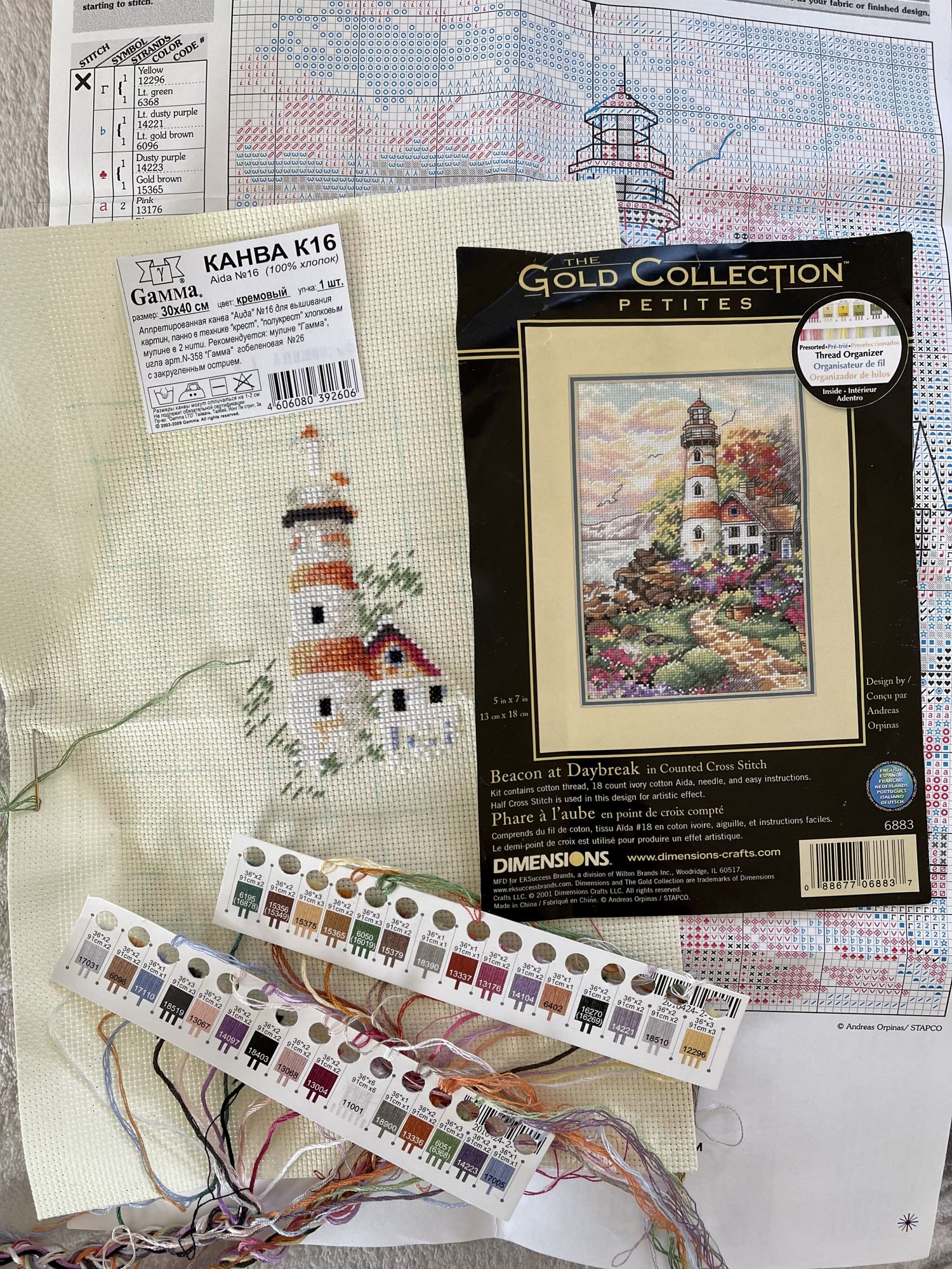7 октября Давненько я не выкладывала процессы! Сентябрь так вообще пролетел быстро, началась учеба и работа, и почти некогда было вышивать. Из самых важных событий: мы оформили документы сыну; и я купила новый большой холодильник, сделала наконец апгрейд! Полтора года все ходила и смотрела их) Еще занялись зубами, сделали сыновьям чекапы, сейчас лечение проходят. Недавно еще купила ручной пароочиститель, буду пробовать. А последние дни сижу дома, лечу горло, и много вышиваю, слушая Макса Фрая) И теперь процессы: В сентябре закончила всем известный Маяк от Дим, это был приятный и короткий процесс, на месяц. Процесс Dimensions 06883, Beacon at Daybreak, Маяк на рассвете; новый и завершенный: Одна знакомая отдала мне остатки набора, и я вышила свой Маяк на 16 кремовой аиде, нитки добавляла из остатков своих вышитых Димов. Два цвета пришлось дергать из новых наборов, но главное, что все нужные цвета нашлись. Оформила в покупную рамочку, дозаказала в багетке только картонку для натяжки, и белое паспарту. Оформление мне понравилось, минимальное-белое, не отвлекает от яркого сюжета. Отправила Маяк с оказией подружке в Америку, она заменит рамку под свой интерьер, если захочет. Сделала вывод, что на 16 канве эти мини-димы гораздо легче вышиваются! и кресты, и полукресты в 3 сложения ровнее укладываются. И смотрится картинка хорошо, не пиксельно, будто такая и задумывалась. И еще сшила 2 мешочка-саше, вышила мелкие веточки лаванды по схемам из интернета. Есть у меня кусок льна Dmc натурального цвета, 28 каунта. При стирке оказалось, что он линяет желтым цветом, поэтому для вышивки не буду его использовать. А нашью из него таких вот мешочков. Эти первые два «опытных образца» тоже были подарены, надо будет повторить) И добавлю окончание процесса Мир вышивки MV-104D, Воздушный шар: Отстаю от плана, этот седьмой кружочек хотела в августе еще закончить. На днях оформлю его в пяльцы, и повешу на стену. А новый круг я начала такой классный! Из новинок, и это еще один процесс: Мир вышивки, Огненная лошадь, МВ039-ОЛ Последние круги мне уже перестали нравиться, потеряли стиль ар-деко и красоту деталей-завитков. Кажутся скучными и слишком упрощенными, без изюминок. Но лошадку всё же решила купить, так как следующий год будет мой, лошадкин) Девушка из нашего вышивального чата привезла мне заветный наборчик из России, и теперь я его быстро строчу. И я оформила Мак и Подсолнух, которые вышила еще в прошлом году. Алиса 2-03 и 2-04. Тоже решила попробовать для этих ярких товарищей минимальную белую рамку. Пока что повесила в простеночек на кухне. В очереди на оформление стоят две большие икейские рамы, для Роз в корзинках. Заказала для них паспарту другого размера, теперь надо выделить время и натянуть……. Tatiana Ch., Юнона1960, Дикая белочка и 6 других сказали спасибо Поделиться сообщением Ссылка на сообщение