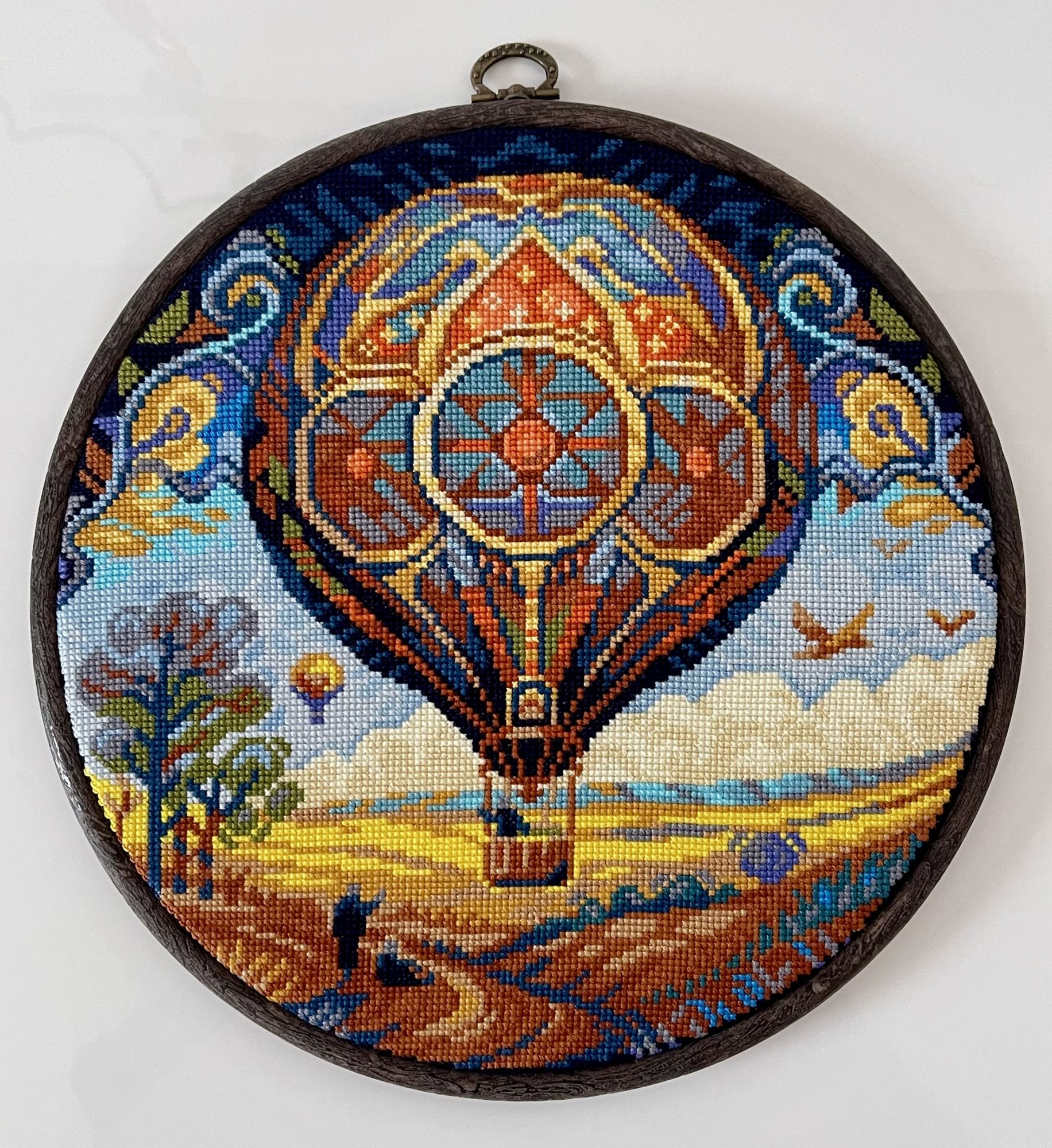 24 октября 20 часов назад, queen-margo сказал(а): Воздушный шар вставила в пяльцы, уже висит на стене. Самый светлый кружочек из всех, много голубого неба: Какие приятные сюжеты! Воздушный шар приглашает в путешествие! Сложно было в такие пяльцы вставить, чтоб вошло ровно? я такие пяльца иногда использую для самой вышивки, они тугие, а здесь надо чтоб чётко сработать. Волшебный листопад - он действительно волшебный! Уютный и тёплый! Хорошего настроения под процесс! queen-margo сказал(а) спасибо Поделиться сообщением Ссылка на сообщение
