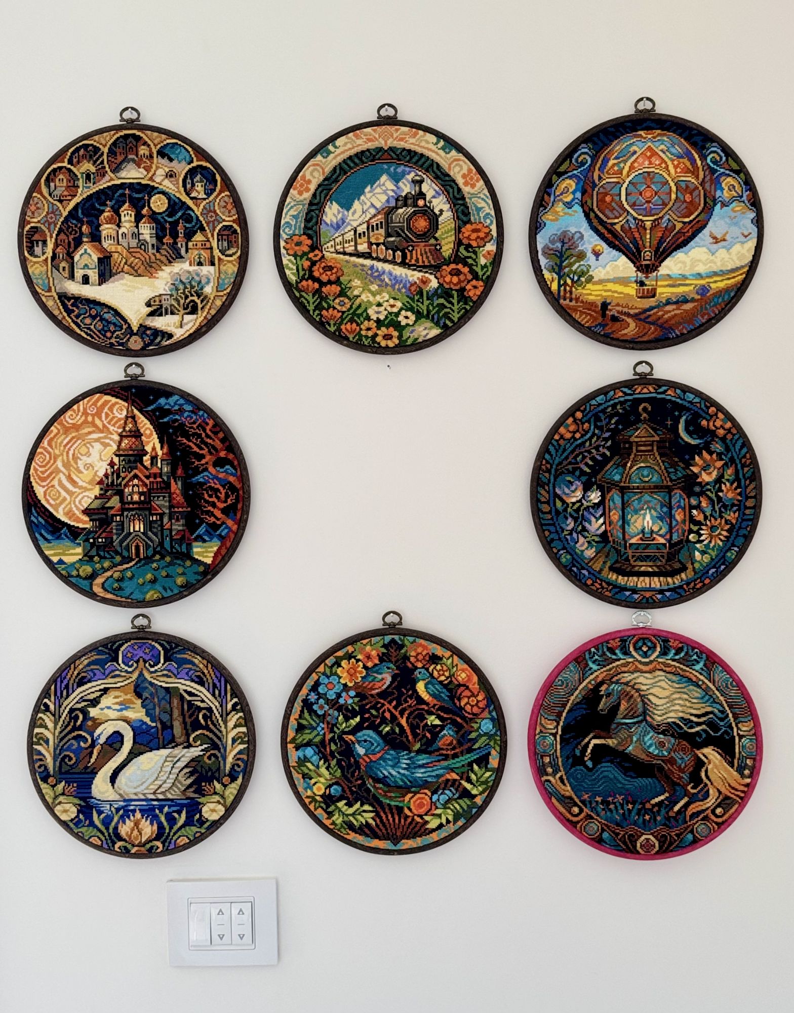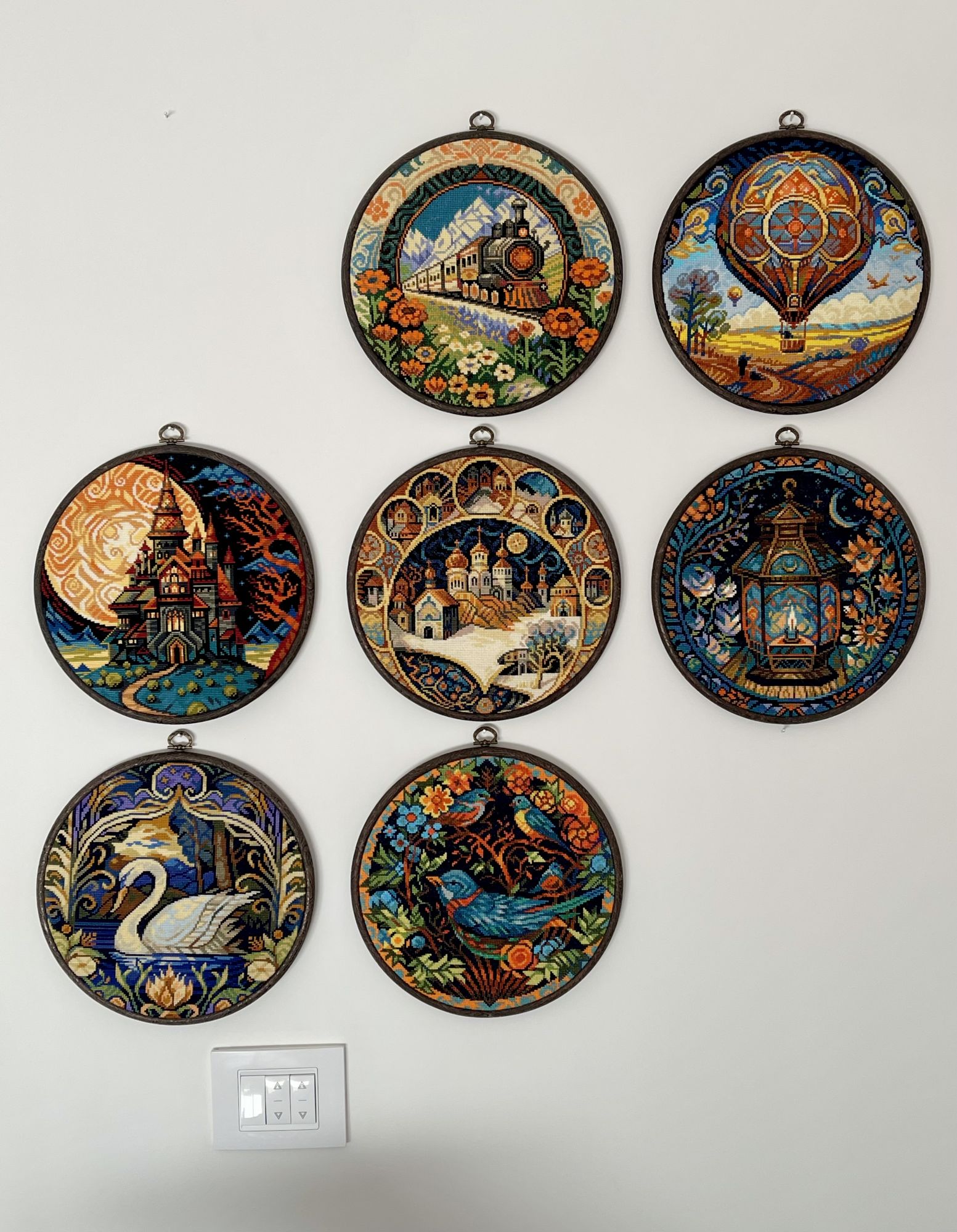 3 января 19.11.2024 в 09:00, Охотница сказал(а): Заглянула на огонек, познакомится:-) Очень приятно!)) С наступившим Новым годом нас всех! И теперь я повыкладываю, что успела навышивать в декабре, вернувшись из 3-недельной командировки в Петербург. Ежегодный мой комплект елоч. игрушек, в этом году оказался небольшим и быстрым процессом. Поэтому успела зааончить его в 24 году) «Кактусики» от Совиного леса: нитки подобрала на свой вкус, меланж, тоже Совиный лес; основа - полюбившийся мне лен ДМС; белые веточки сверху прошила полукрестом, светящейся ниткой. Попробовала, первый раз в жизни - и действительно, они классно светятся в темноте)) Оформила как пинкипы, тоже мой первый опыт. Твердые кругляши вырезала из пластиковых упаковок от мини-Димов. Горшочки вышила побольше размером, чтобы написать на одном «2024». Это новый процесс, и он закончен: И готова пара к Лисе, Медведь от Рто. Повесила на стену, и приготовила третий гвоздик, для Совы) Новый процесс, и тоже закончен: И моя новая любовь, эта известная серия кругов. Целый год на них смотрела, и вот решилась попробовать вышить. Начала в Питере, закончила перед самым новым годом. То есть за месяц можно такой кружочек вышить. Набрала со скидкой целую гору, хочу собрать коллекцию на стене! Оформлять буду позже, в пяльцы Нурге. В отзывах писали, что эти круги как раз ровно входят в Нурге размером 230-5. Вышиваются ооочень быстро и легко. Только лишь крест в 2 нити, и местами большие области одним цветом. Даже разметка не нужна! И «витражный» стиль этих дизайнов мне нравится, для меня это целая фентези-вселенная, с яркими пейзажами, волшебными замками, и говорящими лесными жителями)) Итак, Лебедь, номер набора МV-105D, новый процесс, завершен: Путешественница, Океан, Дикая белочка и 6 других сказали спасибо Поделиться сообщением Ссылка на сообщение