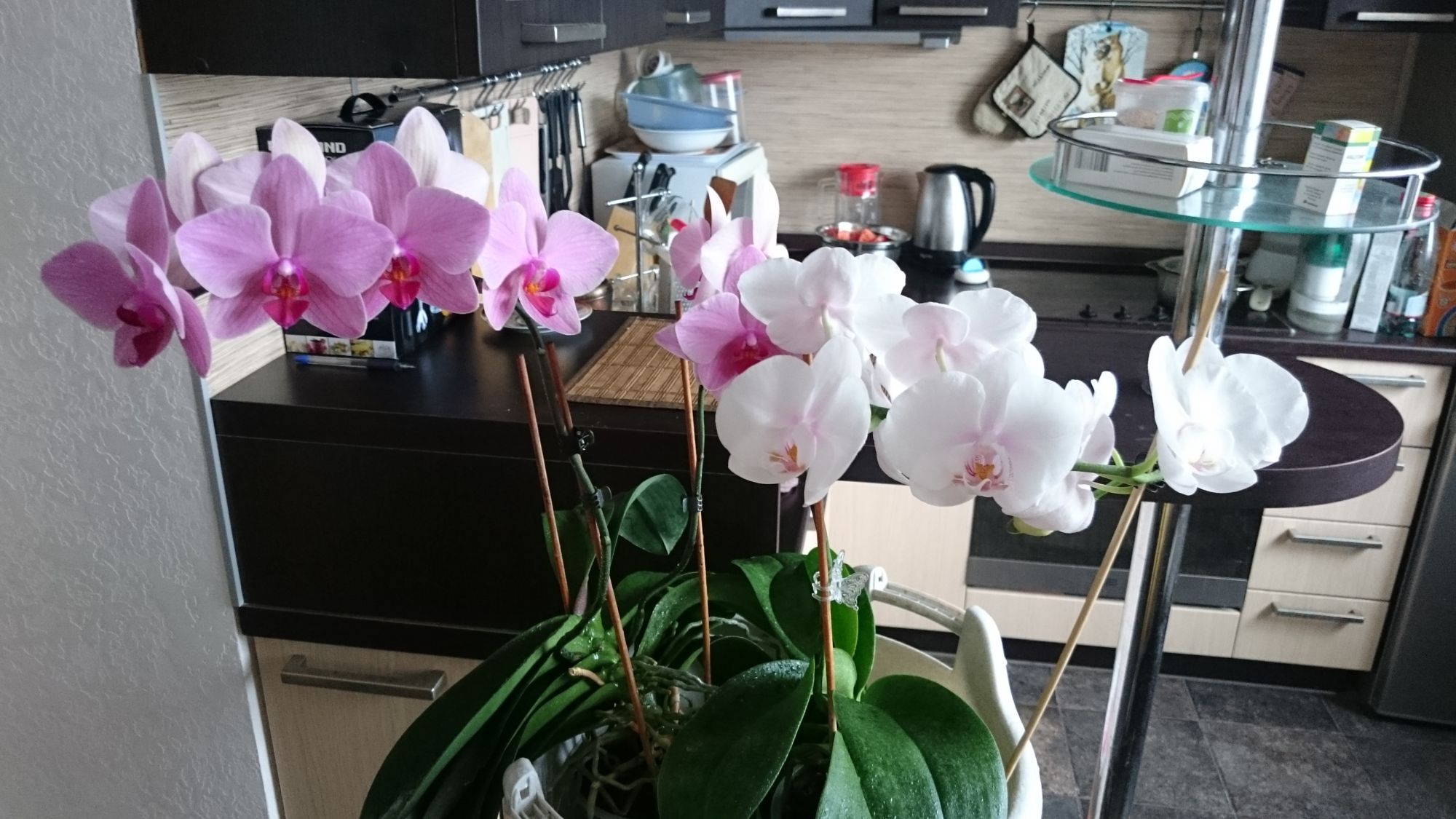 24 октября 2016 Я без экзотики, но вот, что творится в это промозглое время на подоконнике кухни...  Пятая активно наращивает цветонос, так что скоро мой бело-розовый орхидятник разбавится охрой... Sweet coffee, irisheckin, Selinta и 19 других сказали спасибо Поделиться сообщением Ссылка на сообщение