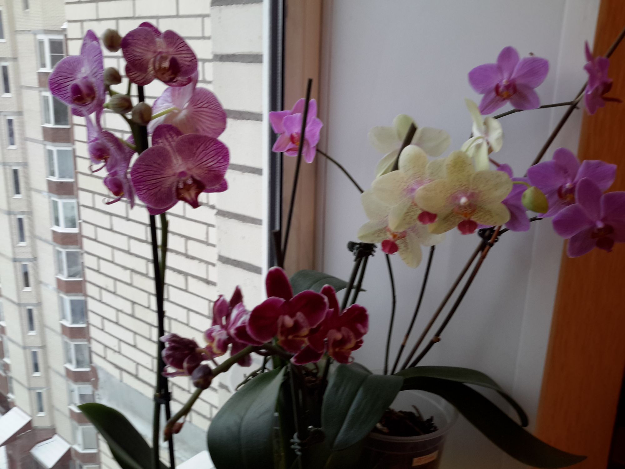 6 декабря 2016 Добрый вечер всем ! Тоже хочу показать некоторые цветущие экземпляры - фаленопсисы и башмак - это цветение еще "магазинное", так сформировать цветочные стрелки у меня еще не получалось -обычные "конопатые" и "полосатые" ( несколько экземпляров только надувают бутошки) Это башмачок - цветет, примерно в одно и то же время раз в год с новой розетки . По тому какой высоты у него стебель, можно судить что солнышка ему сейчас маловато И еще один башмак с историей - года два назад пришлось разделить розетку , и вот малыш гонит цветонос ( Людочка Мизина, привет ! У тебя деленка этого собрата) СветланаЛФ, Ivi, assiada и 16 других сказали спасибо Поделиться сообщением Ссылка на сообщение