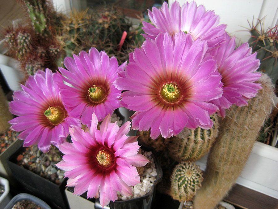 10 апреля 2017 Лена, твои точно еще малыши, месяц еще можно спокойно не пересаживать. А росточек твой - загадка, конечно. Пусть еще растет. А вот благодаря тебе я не только проверила свой детский сад, но и пересадила. Ура!!! А то земелька уже водорослями зелеными покрылась, а у меня все руки не доходили. И, оказывается, я сеяла 4 февраля. Женя, получилось посеять? Света, у вас это эхинопсисы ( Echinopsis tubiflora ). Цвести должны, но надо еще немного подрасти. У меня тоже такие пока не цветут, списываю на то,что рановато пока. Да и земля им нужна питательнее, а у меня сидят в той же, что и все остальные. Цветы зимуют на лоджии, правда, она маленькая, 3 м. Мне ее специально утеплили для кактусов, т.к. их много и никаких подоконников уже не хватает. Туда же осенью выношу амариллисы на пару месяцев, когда у них период покоя. Там же на лоджии зимуют нолина и агава, которые уже большенькие и места в комнате для них нет. На самые морозы на лоджии установлен конвектор, которые поддерживает температуру +8+10 градусов. Беладонна, Svetl@n@ и nogres сказали спасибо Поделиться сообщением Ссылка на сообщение
