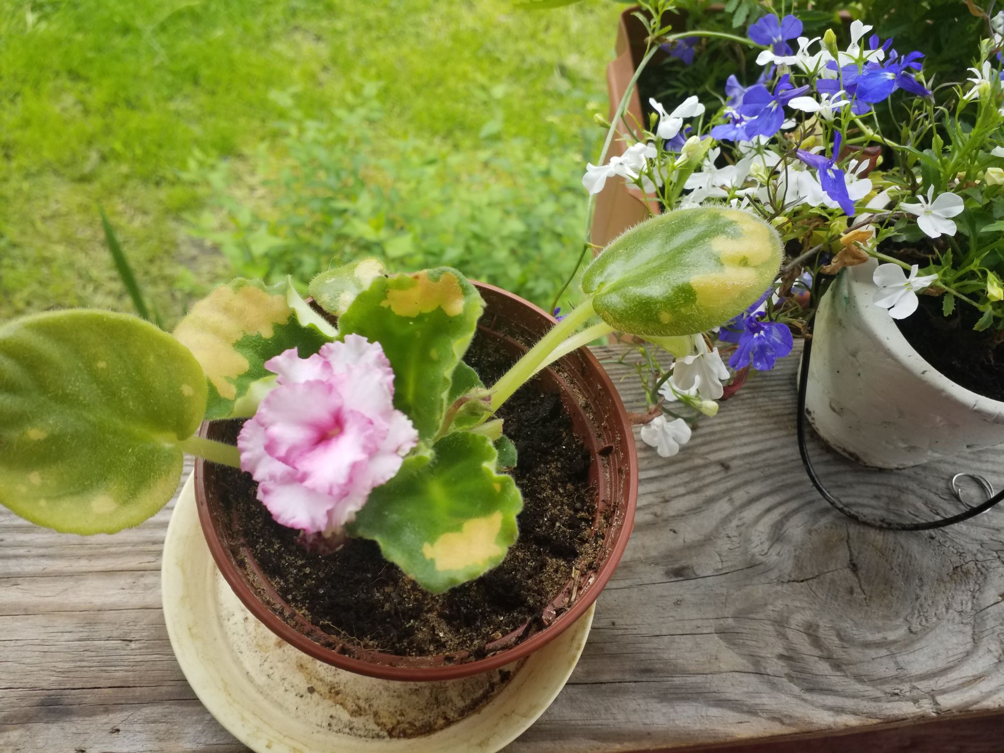 8 июля 2018 3 часа назад, Lapyshok сказал: Пересадила я свою болявую фиалку. Оборвала листья,которые совсем были поврежденные,не стала удалять бутон.Вот что получилось. Молоденькие листики растут без пятен,эти удалю позже,когда сил наберётся. Весной купила клубень бегонии сорта Криспа маргината йелоуред.Цветки должны быть яркие,пламенные,желтые,по краям красные,края бахромчатый.Вот что выросло.Часть цветков махровая,часть нет.Обидно...Еще и в высоту не 25 см,а уже всё 50.Как на подоконнике зимовать будет не понятно. Ну вот и порадовала тебя твоя фиалочка, так быстро уже бутончик свой показала! Lapyshok сказал(а) спасибо Поделиться сообщением Ссылка на сообщение