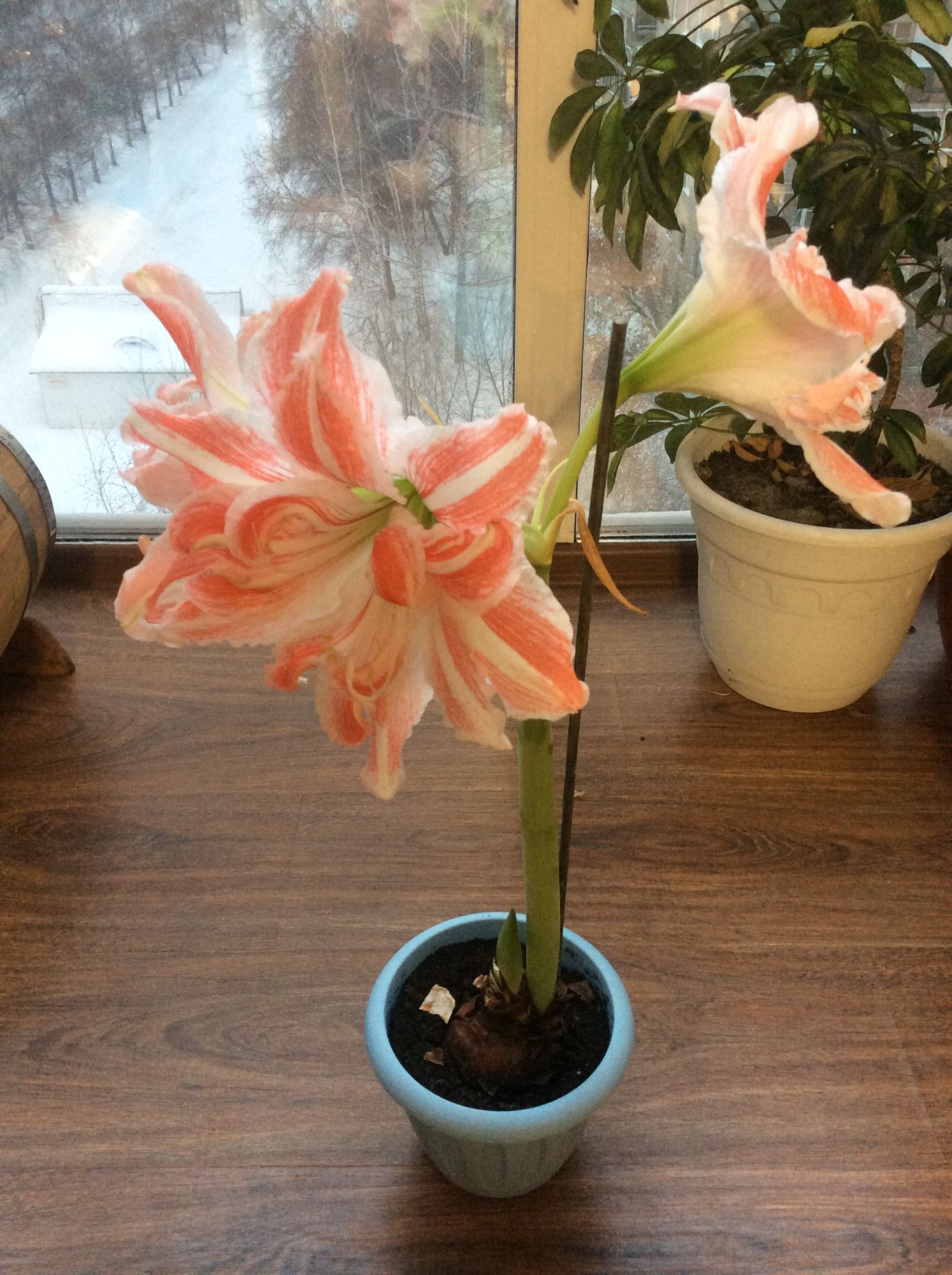 5 декабря 2018 В 26.11.2018 в 16:57, viola33 сказал: Девочки, на КАК вы это делаете? У меня упорно не цветет амариллис. Не загибается окончательно, но и не цветет. В домашних условиях: 1) достаточное количество света. Амариллис нуждается в потоке мягкого света, который возможно обеспечить цветку при размещении горшка на подоконниках юго-восточного и юго-западного направлений с дополнительной защитой от прямых солнечных лучей в период наибольшей солнечной активности. В качестве защиты могут быть использованы занавески.2) умеренность полива; 3) правильный подбор горшка. Для получения цветущего растения необходимо подбирать ёмкость небольшого размера. Грунт для наполнения горшка требуется со слабокислой реакцией в пределах 6,0-6,5 баллов и рыхлой структурой. Питательный субстрат, подготовленный из дерновой и листовой земель, песка и перегноя в пропорции 2:2:2:1, перед использованием прокаливается в духовом шкафу для уничтожения патогенов. 4) регулярность подкормок 5) температурный режим. Температурный режим для полноценного развития амариллиса зависит от фазы развития: В фазу активного роста оптимальная температура варьируется от 18 до 25°C в зависимости от времени суток. В период покоя обеспечивается температурный режим в диапазоне от 10 до 16°C. Мои Амариллисы действительно сидят в маленьких горшках. Поливаю умеренно, а после цветения полив сокращаю. На зимний период могу и вовсе прекратить. Возобновить полив могу в феврале или когда начинается появляться стрелка. Можно сделать первую подкормку. Когда цветет полив хороший. Стоит действительно на юго-восточной стороне. Уход очень похож на луковичные(тюльпаны например), которым нужен период покоя. Первый год цветения 2015г. Пушистая, Маняша, Пумочка-13 и 10 других сказали спасибо Поделиться сообщением Ссылка на сообщение