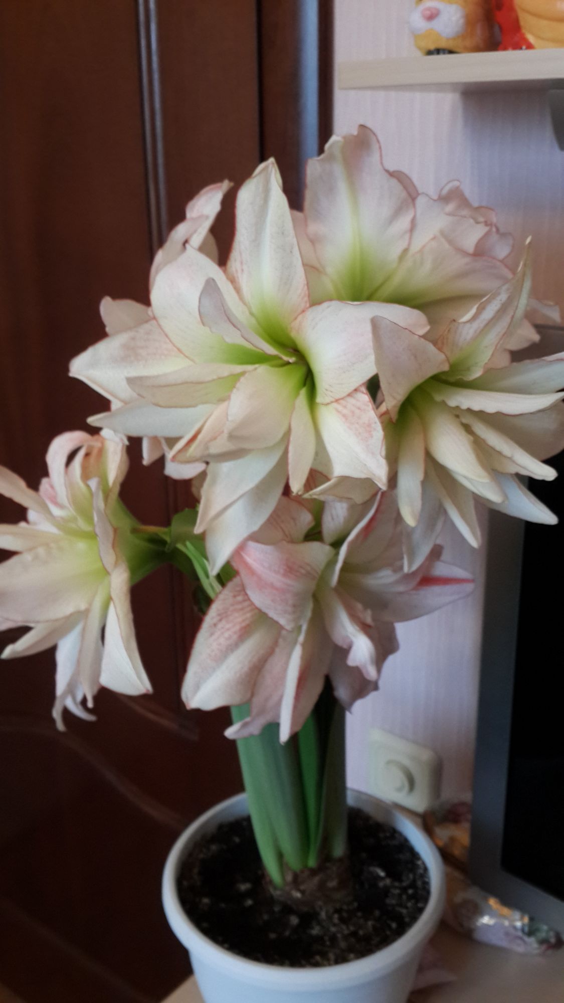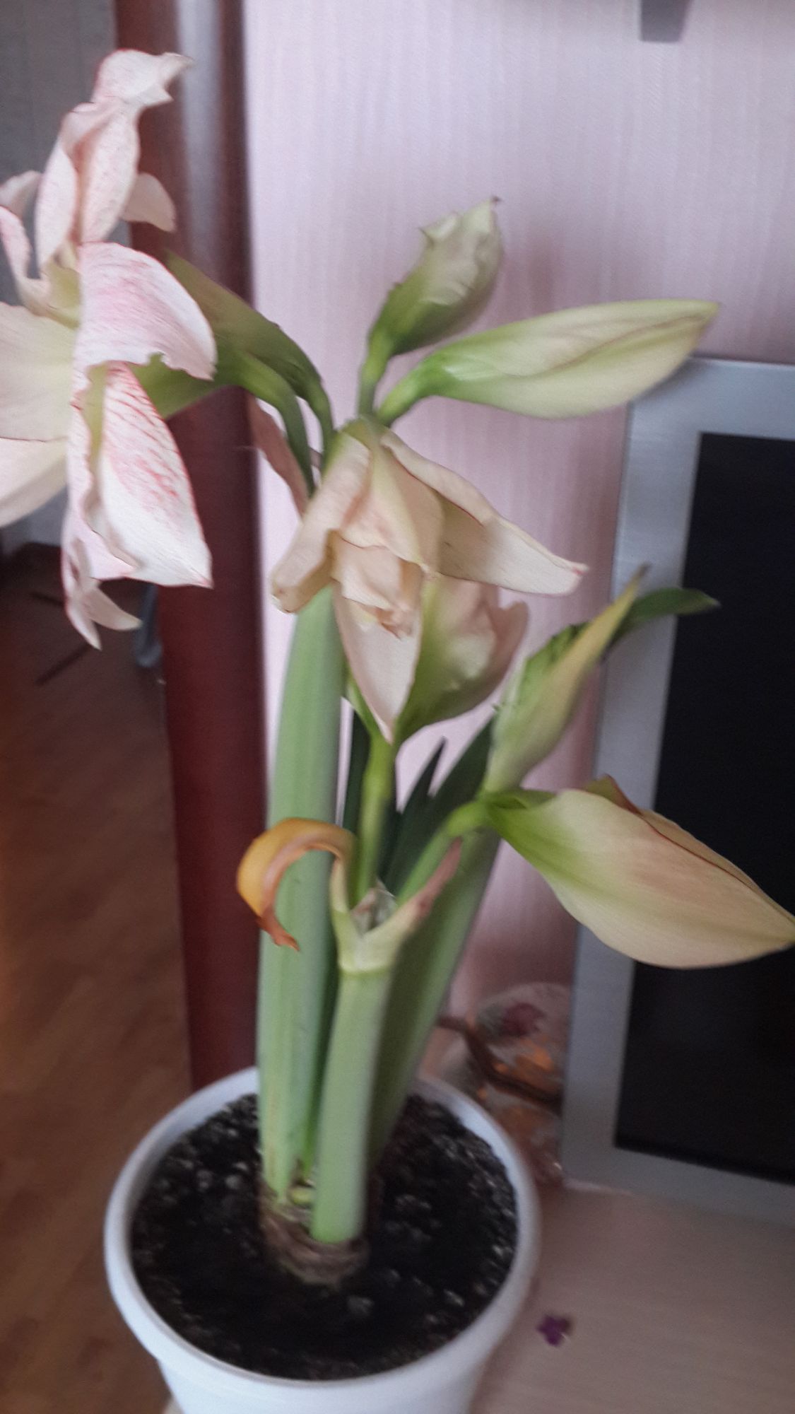 5 декабря 2018 1 час назад, Verok сказал: В домашних условиях: Вера, спасибо. Я все это уже сто раз читала в и-нете. Стоит на Ю-З, солнца много, непрямого, т.к. балкон. Горшок маленький, но луковица не растет, а только уменьшается в размере каждый год. Летом стоял на балконе, потом внесла в дом. За лето выпустил 4 листа, сейчас два пожелтели, осталось два. Он у меня живет уже лет 10, цвел только в первый год, когда я его купила, все пробовала, и не поливала по полгода, и в темное место ставила. Вообще ума не приложу, что с ним еще можно сделать. 10-16 градусов я ему в квартире точно не смогу обеспечить, если только в холодильник его поставить. А ваши амариллисы просто шикарные Turtle_aylataN сказал(а) спасибо Поделиться сообщением Ссылка на сообщение