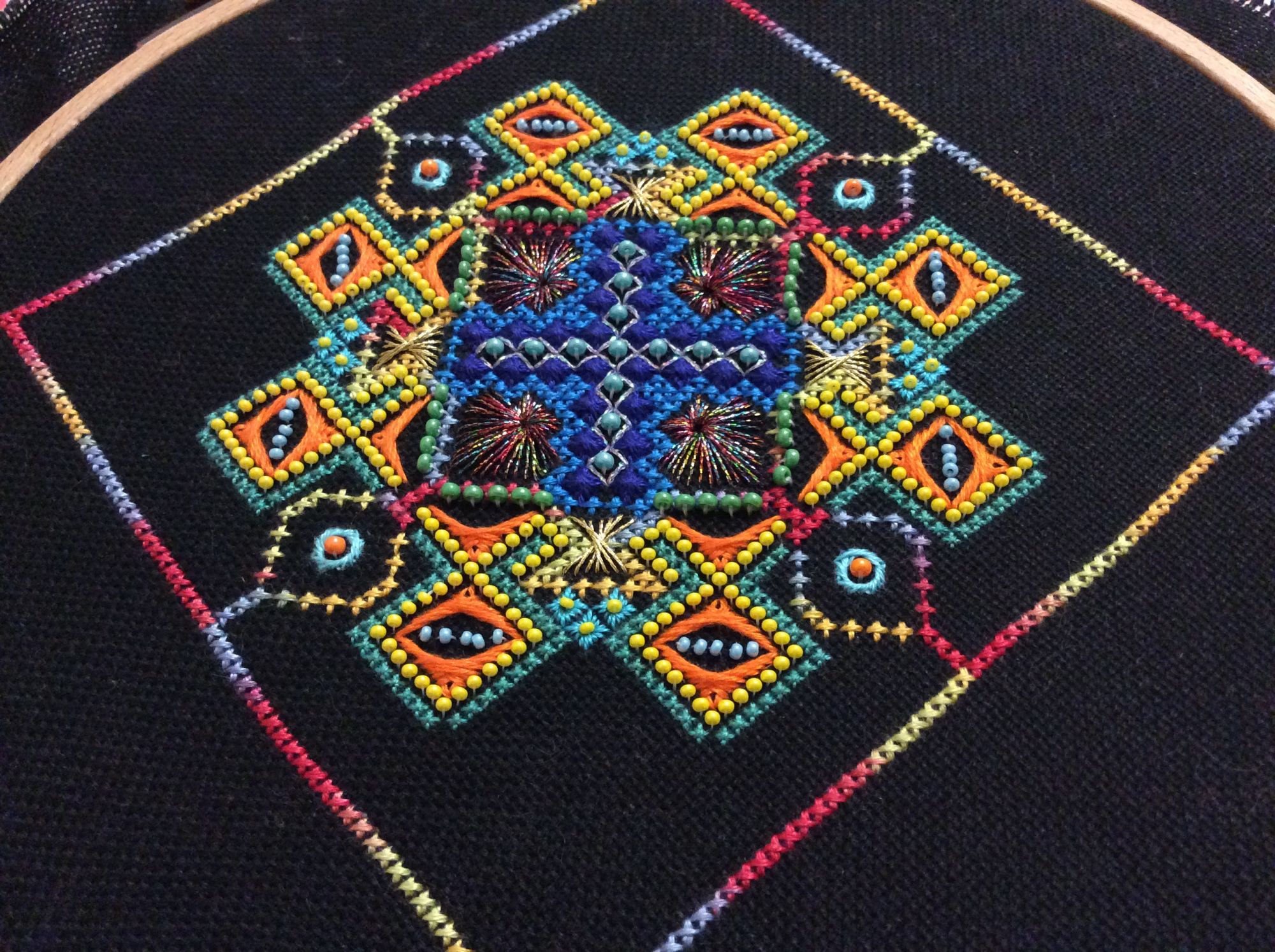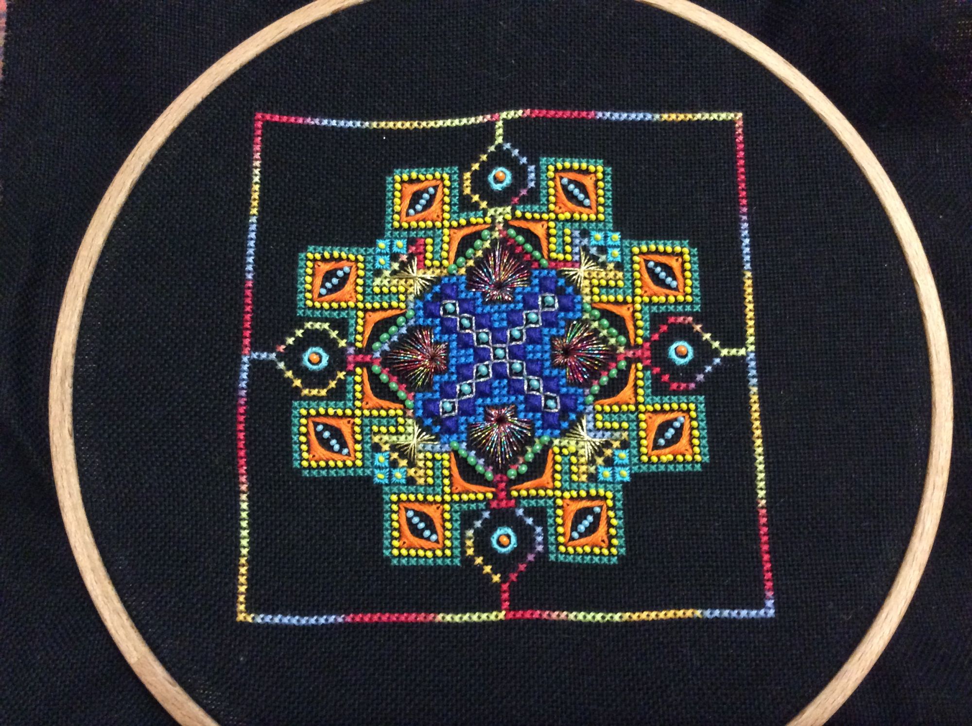 6 мая 2016 14 часа назад, treisi сказал: В Ещё одна авантюрка в процессе Фейерверк по схеме Нины Перегонцевой, на данный момент отшито 3 этапа Вышиваю на чёрной Линде 27 уже все глаза сломала)) Настоящий фейерверк!!! И хоть все говорят что на черной равномерке тяжело вышивать, я все равно хочу попробовать, потому что цвета на ней смотрятся просто изумительно. Поделиться сообщением Ссылка на сообщение