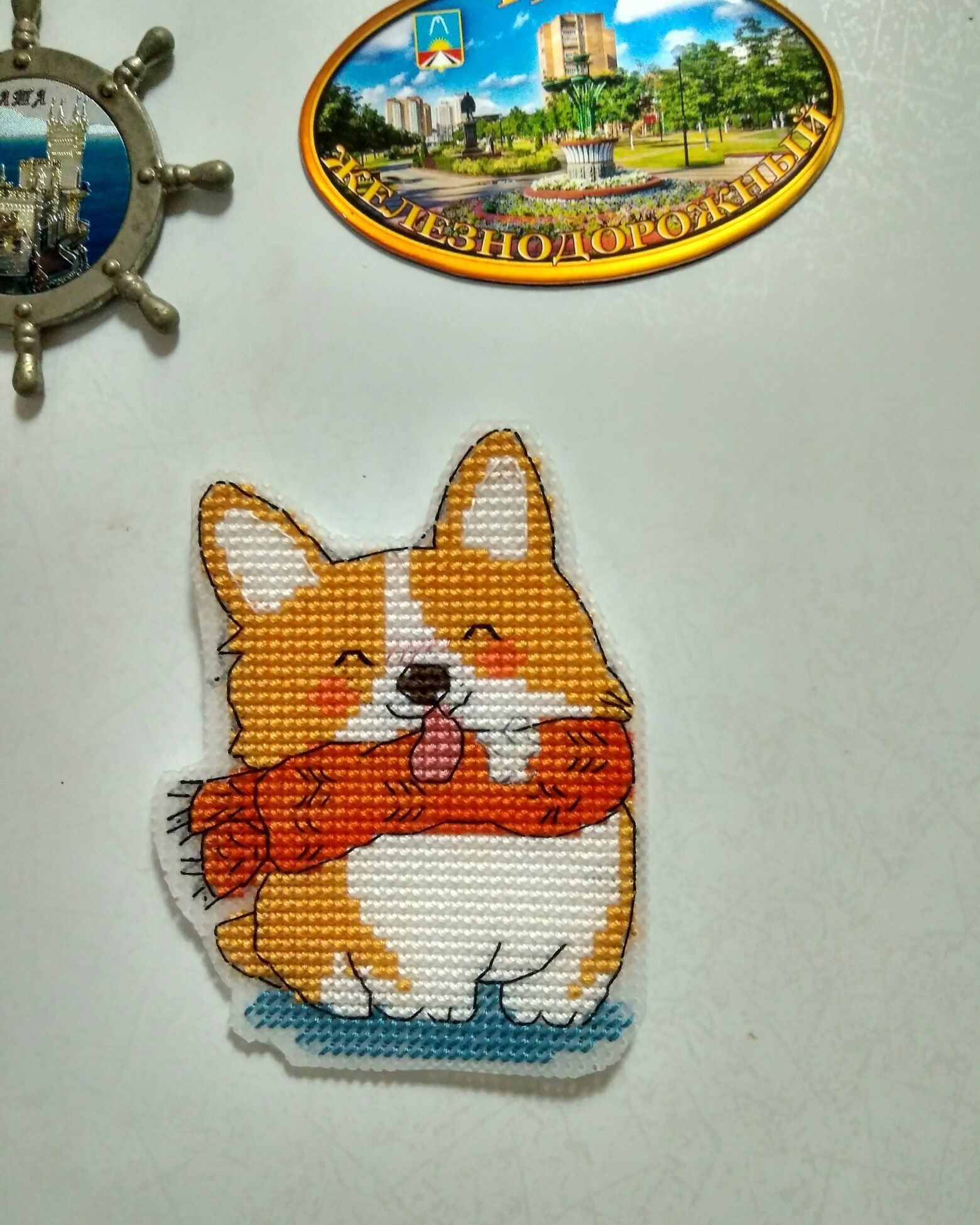 16 января 2018 Всем привет!!! Поздравляю всех с прошедшими праздниками!!! Всем здоровья, радости и хорошего настроения!!! Я тут решила, что надо бы сократить количество незавершённых процессов, и .... дошила наконец то ёлку о Парижских вышивальщиц!!! И даже надпись сделала на русском. с ней вообще целая эпопея вышла)) Мне девочка прислала схему на русском, а у меня лента уже вышита была и я не обратила внимания, что в схеме с русской надписью лента увеличена и когда оставалось всего 3 буквы дошить, я поняла что надпись не помещается Пришлось всё распускать, убирать веточки по бокам и вышивать заново, но немного веточек я всё равно прилепила по углам)) Ещё вышила один из шариков по схеме Е. Немшиловой , конечно же Пёсика)) И милаху корги по бесплатной схеме М. Бровко , сделала магнитик на холодильник Вот , пока всё) В самых ближайших планах начать вышивать Котедж в розах от Буцилла, очень давно его откладывала, а тут СО в ВК сподвигнул меня на строительство)), так что наверно в субботу и начну. Selinta, Жекочка, АлёNка и 15 других сказали спасибо Поделиться сообщением Ссылка на сообщение