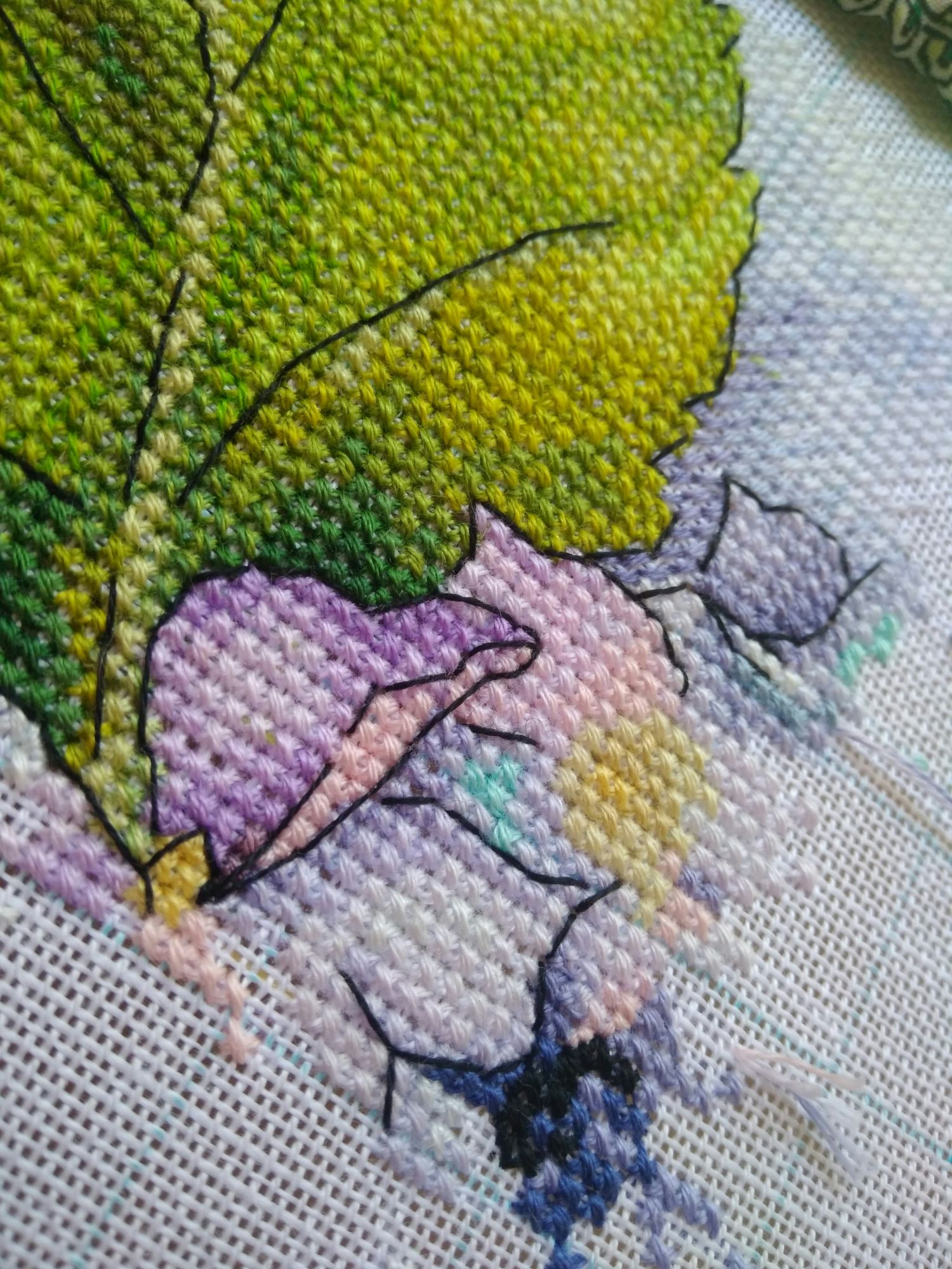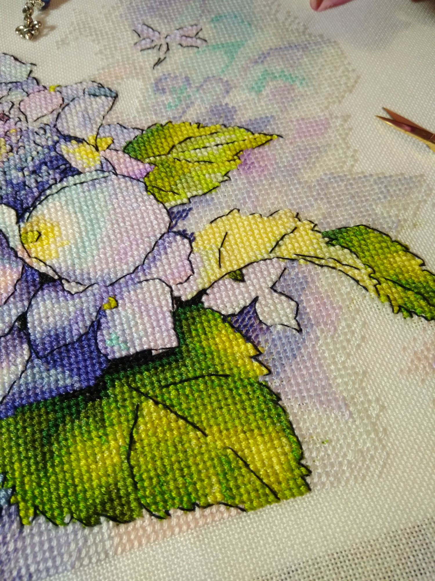 3 июля 2018 Гало4ка, Оля, спасибо! Ну гортензия не из лёгких), цветов , а особенно блендов очень много, в этом кусочке листа постоянная смена едва отличимых оттенков, да плюс основа очень уж тонкая, ощущение что по паутинке вышиваю, чуть посильней затянул нитку и дырка(( Купила на пробу какую то новую Линду 50/50 лён и хлопок 30 каунт, лучше бы не изобретала велосипед и вышивала бы на Мурано, но уже деваться некуда, буду вышивать на чем есть. Гало4ка, nogres и Lakis сказали спасибо Поделиться сообщением Ссылка на сообщение