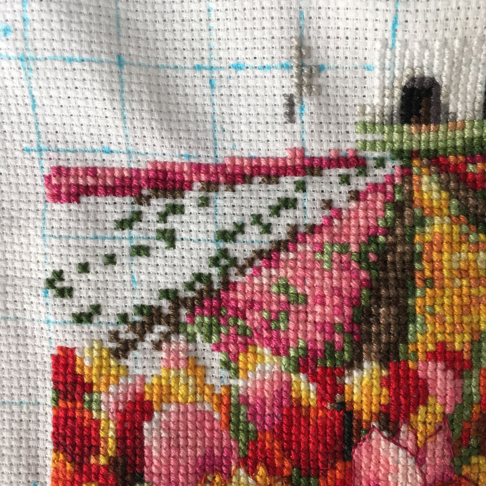 2 октября 2019 51 минуту назад, Tata44 сказал(а): Голубого серого и бэка - всего осталось примерно меньше половины? Меньше. Вышито уже почти 60% (это нижний лист схемы). Следующий отчёт будет последним на этой странице. После него останется лист в 40% объема с мельницей и небом. Но нижний лист сильно сложнее верхнего ибо частая смена цвета, сплошной крест (на небе наоборот много полукреста) и много бэка. Вообщем надеюсь одолеть верх до нового года. А про бэк мельницы уже думаю как шить пересекающиеся части. Пока идея такая: условно у нас решетка. Я шью все части выкладной. Сначала шью длинные части и закрепляю как пойдёт. А потом короткие части, которые креплю на пересечении с длинными (в узлах решётки). Если у кого есть идея получше - напишите плз. И если вдруг надо детально снять процесс предложенного обэчивания тоже. Как бэк (как предлагается в схеме) шить точно не буду! Tata44 и Лана05 сказали спасибо Поделиться сообщением Ссылка на сообщение