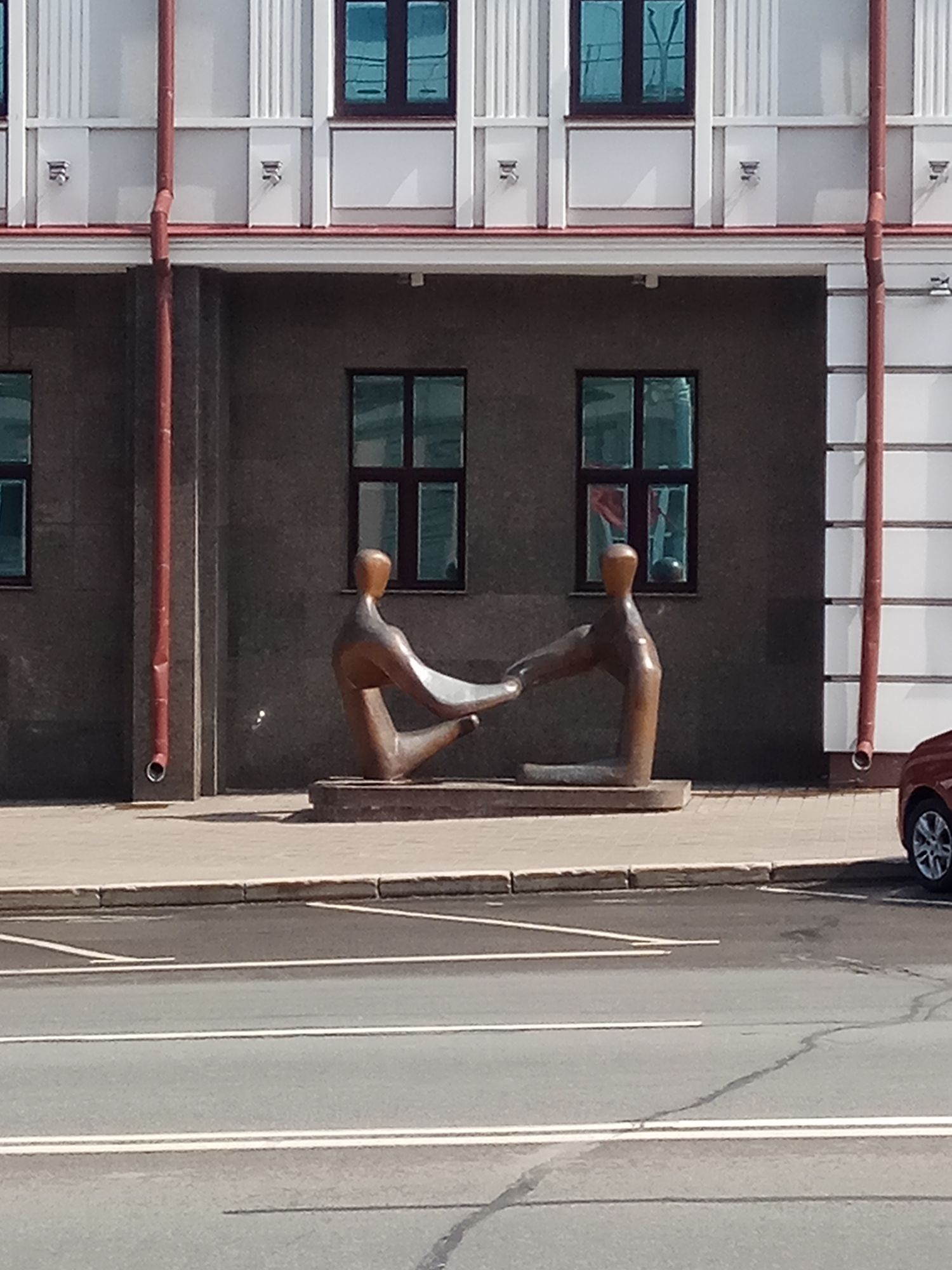 7 мая 2018 А от Парка Победы мы уже повернули к машине. Ярко светило солнышко, шли мы неспешно и рассматривали все вокруг. Предлагаю немного прогуляться с нами. Надпись на стене. И скульптура напротив) Интересное оформление магазинчика В Витебске очень много посвящено Шагалу. Про него упоминается везде. В том числе и в граффити) По пути мы зашли в ТЦ Пирамида. А там нас встретил сапожник) И море цветов везде. Это площадь перед Славянским базаром. На ней мы нашли вот такой уютный памятник клоуну с собачкой. Кто-то даже связал ему шапочку. А это Духовской круглик - современная версия старинной оборонительной башни, стоявшей когда-то на этом месте. Рядом здание, в котором находилась первая электростанция. А тут мы зависли, изучая белорусский язык))) Самое сложное оказалось - часописы. Мы в итоге решили, что это могут быть ежедневники. Но это - журналы!) Виды площади перед Славянским базаром с другой стороны и вид через мост на Воскресенскую церковь, Успенский собор и ратушу. Фонтан Три реки - Западная Двина, Витьба и Лучоса.  И Успенский собор и Воскресенская церковь в советское время были взорваны до основания. Сейчас их восстановили. В ратуше расположен замечательный музей (мы в нем побывали на следующий день), а 30 она была закрыта. И мы пошли гулять по улице Суворова, которая начинается от ратуши и является пешеходной. Запах шашлыка привел нас в летнее кафе дворик Золотого льва. Поели быстрого шашлыка, салатика, запили морсом и пошли вкушать духовную пищу - мы решили посетить музей Шагала. Вышли на дорожку, пройдя мимо зоопарка. Впечатлила поза лебедя - это ж надо так изогнуться))) Шли по крутому берегу Двины, наслаждались видами. И вот впереди музей. Очень красивая аллея! И рядом мемориал погибшим воинам В музее мы поняли, что мы совсем не поклонники творчества Шагала и его соратников. Порадовал отзыв Хотели потом попробовать попасть в музей трамвайного дела. Но там только по предварительной записи и в рабочие дни. Может быть когда-нибудь))) Не смотря на то, что мы не попали в музей, но мы посмотрели чудесный трамвайчик с кондуктором и бюст изобретателя электрического трамвая Пироцкого. Предпоследний в этот день пункт - Костел святой Варвары (Барбары). Он сохранился до наших дней в очень неплохом состоянии. В советское время были утрачены кресты и внутреннее убранство. Внутри собора была женщина, которая очень интересно рассказала про историю собора, окружающего кладбища, про то, как обстоят дела сейчас и т.д. А перед костелом растет два интересных куста. Кто знает - что это за растение?) Ну и на сладкое оставили прогулку по вокзалу. Прям как в советское время попали. Вышли на перрон и сфоткались с фигурами встречающих. Очень понравилась идея и воплощение. А на вечер у нас был заказан столик в Лямус, где мы опять чревоугодничали.))) А по пути в ресторан нас впечатлила бетонная песочница в детском садике (я таких не видела) И первые увиденные цветущие плодовые деревья этой весной Продолжение следует. OlkaY, оленек, Иржи и 18 других сказали спасибо Поделиться сообщением Ссылка на сообщение