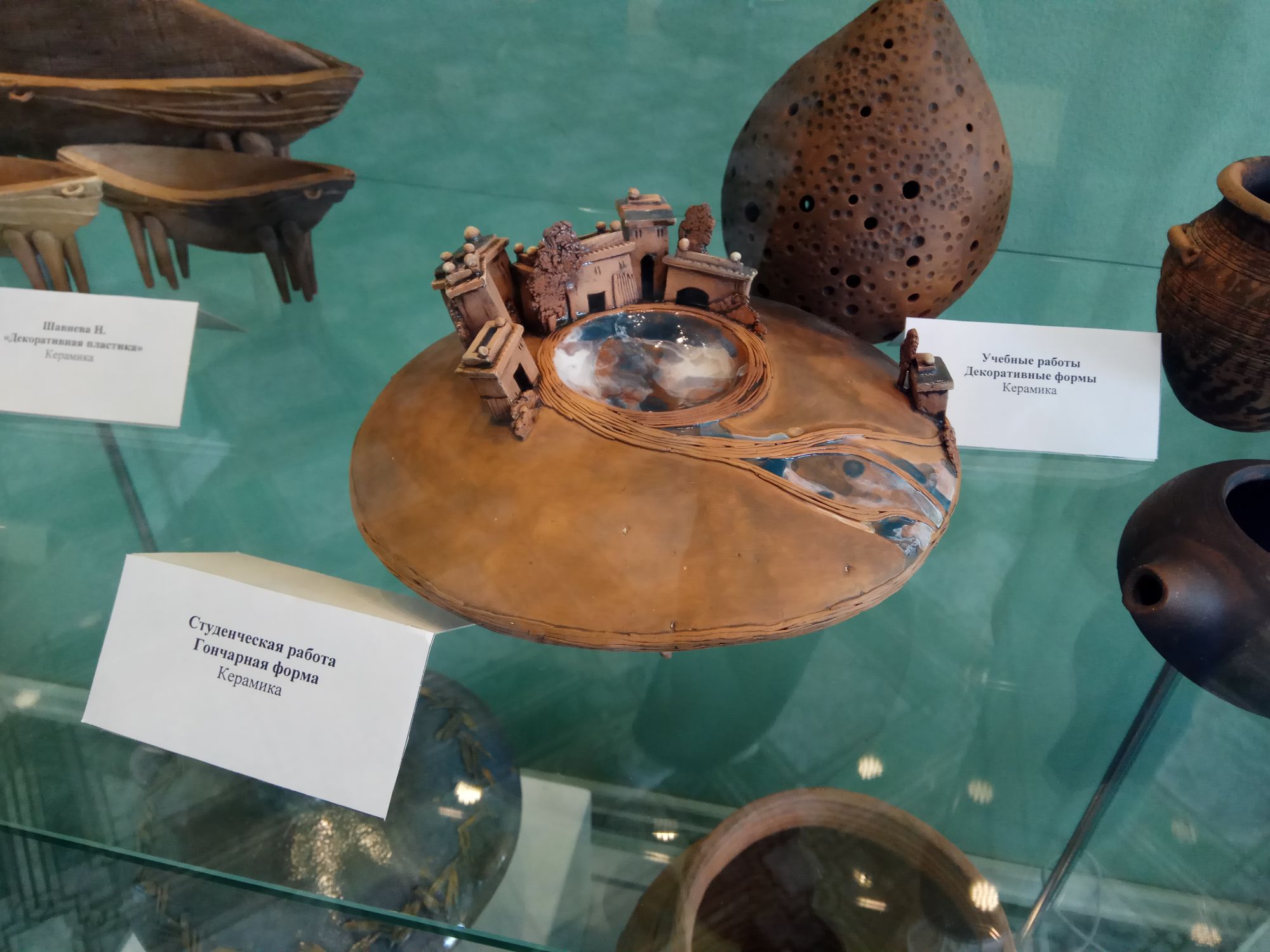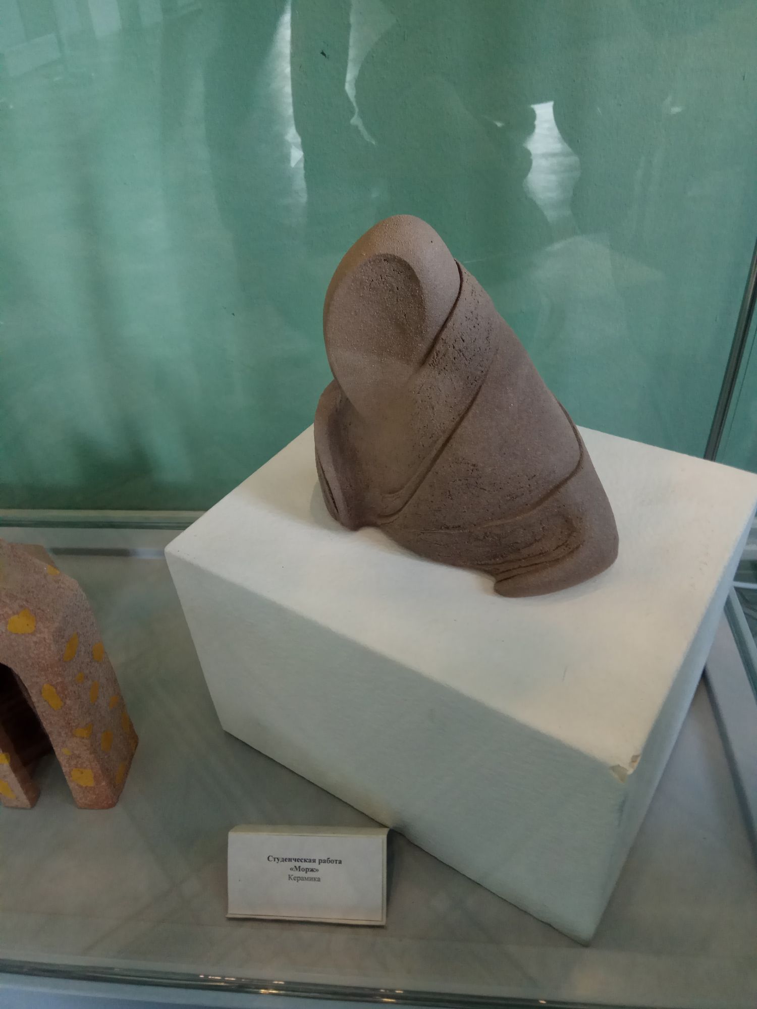 8 мая 2018 Следующий зал, где разрешили фотографировать, был зал работ учащихся в училище искусств (могу наврать с названием учебного заведения). Говорят, что у них ещё и свой музей есть, но часы работы там, похоже, как в Штиглице - во время учёбы студентов. Я бы с удовольствием там побывала, т.к. мне многое понравилось. Морж усилил) Фигурка очень сильно стилизованная, но узнаваемая с другого конца зала) А вот эта работа понравилась больше всего. Сочетание глины и блестящих вставок очень гармонично смотрелось Продолжение следует Хозяйка смешных зверей, Светлана Юрьевна, vasilisa-1977 и 19 других сказали спасибо Поделиться сообщением Ссылка на сообщение