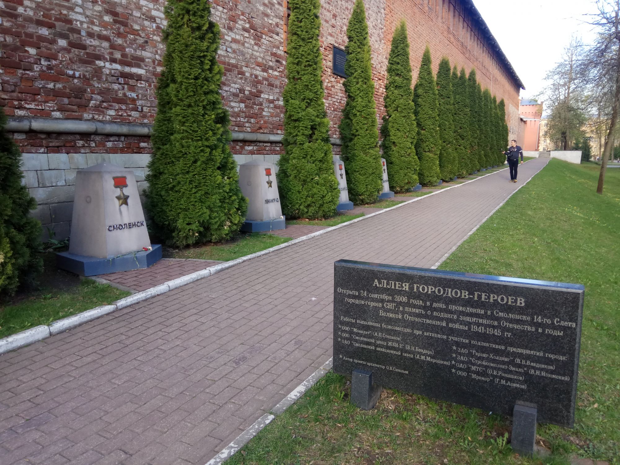 8 мая 2018 Смоленск. Первые фото я делала из машины, т.к. мы не планировали много гулять и туда точно бы пешком не дошли бы. Если не ошибаюсь, то это часовня Николая Чудотворца, но могу наврать. А это те самые въездные ворота с другой стороны (со стороны реки). Старый мост не видно. Улица ведущая к тому голубому храму, который я показывала в прошлый раз. Очень красивые дома. В этот раз решили поесть в Хагене. Вкусно, быстро и нормально по ценам. Находится рядом с парком Блонье. После еды решили ехать домой не сразу и нарезили небольшой кружок по центру. Центральная площадь. Здание ЗАГСа. Памятник Твардовскому и Теркину Напротив памятника ещё кусок крепостной стены А потом мы в какой-то просвет между домами мы увидели кусок стены и решили пройтись дворами. Перед стеной оказался Сквер Памяти Героев. Памятник партизанам 1812 года Мемориал войны 1812 года Музей ВОВ Кутузов и выстроившиеся перед ним в шеренгу генералы: Оленин, Неверовский, Дохтуров, Раевский, Багратион, Барклай де Толли. Аллея городов-героев Памятник Егорову Вечный огонь перед башней Донец Могилы героев Схема Смоленского кремля с башнями Площадь перед Громовой башней. Памятник Федору Коню Смоленск- щит России. Ну и просто дорога до машины))) А это интересные таблички со старыми названиями улиц))) И церковь на выезде из города. Симпатичная зелененькая) Больше не фоткала, т.к. мы уже просто ехали домой, переваривая в себе и активно обсуждая с семьёй эту чудесную весеннюю поездку. АлёNка, Ветер, оленек и 20 других сказали спасибо Поделиться сообщением Ссылка на сообщение