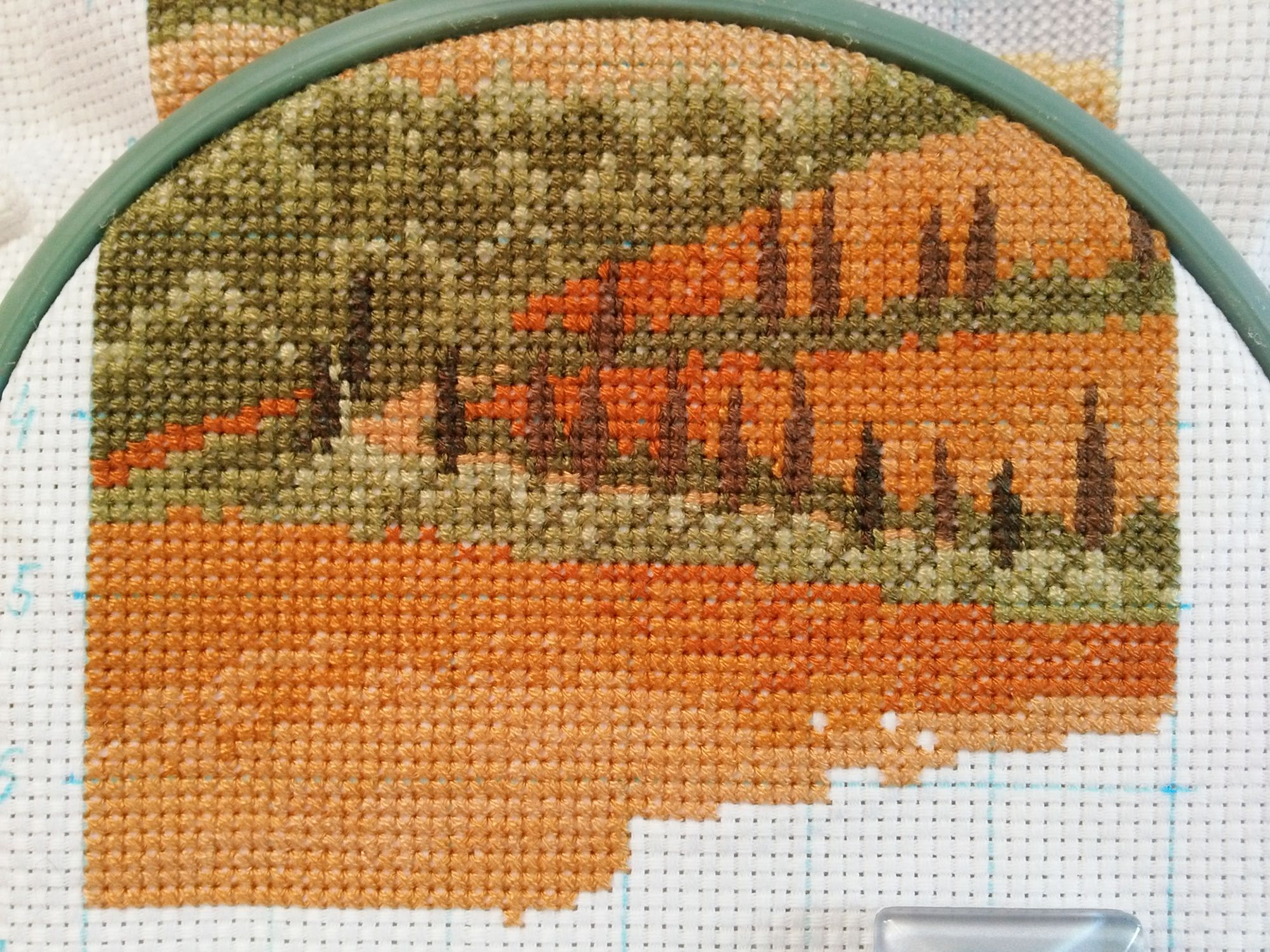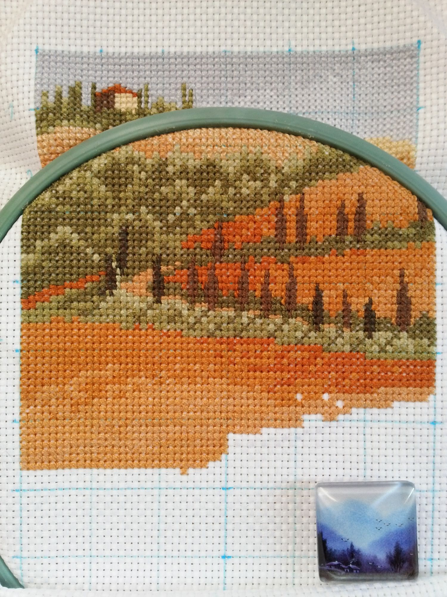 10 сентября 2016 45 минут назад, оленек74 сказал: получается, что так. Сначала вышила 3013, он самый светлый. А вот в какой момент перепутались эти два точно не скажу. Сейчас сверяла по схеме, получается, что основная масса. Как-то контрастно получилось. Хотя, если подумать логически, это не совсем правильно у меня получилось. Деревья должны быть светлее, ведь они на горе, значит полностью освещены солнцем. Посмотрела еще раз Нет, все отлично! Деревья находятся как раз в низинке, между двумя холмами, и солнце освещает верхушки. А они у Вас как раз светлые. А я убрала непонятное "зеленое бревно" с дороги. Тоже долго всматривалась, сравнивала. Так и не поняла зачем оно и перешила, так сказать, расчистила себе путь в долину. И уже начала садить деревья и изгородь поставила. Но вы, дорогие тосканаччо, забегайте в гости, ворота не заперты, чайку попьем ЛюдмилаЕр, белая-мягкая-пушистая, Svetl@n@ и 2 других сказали спасибо Поделиться сообщением Ссылка на сообщение