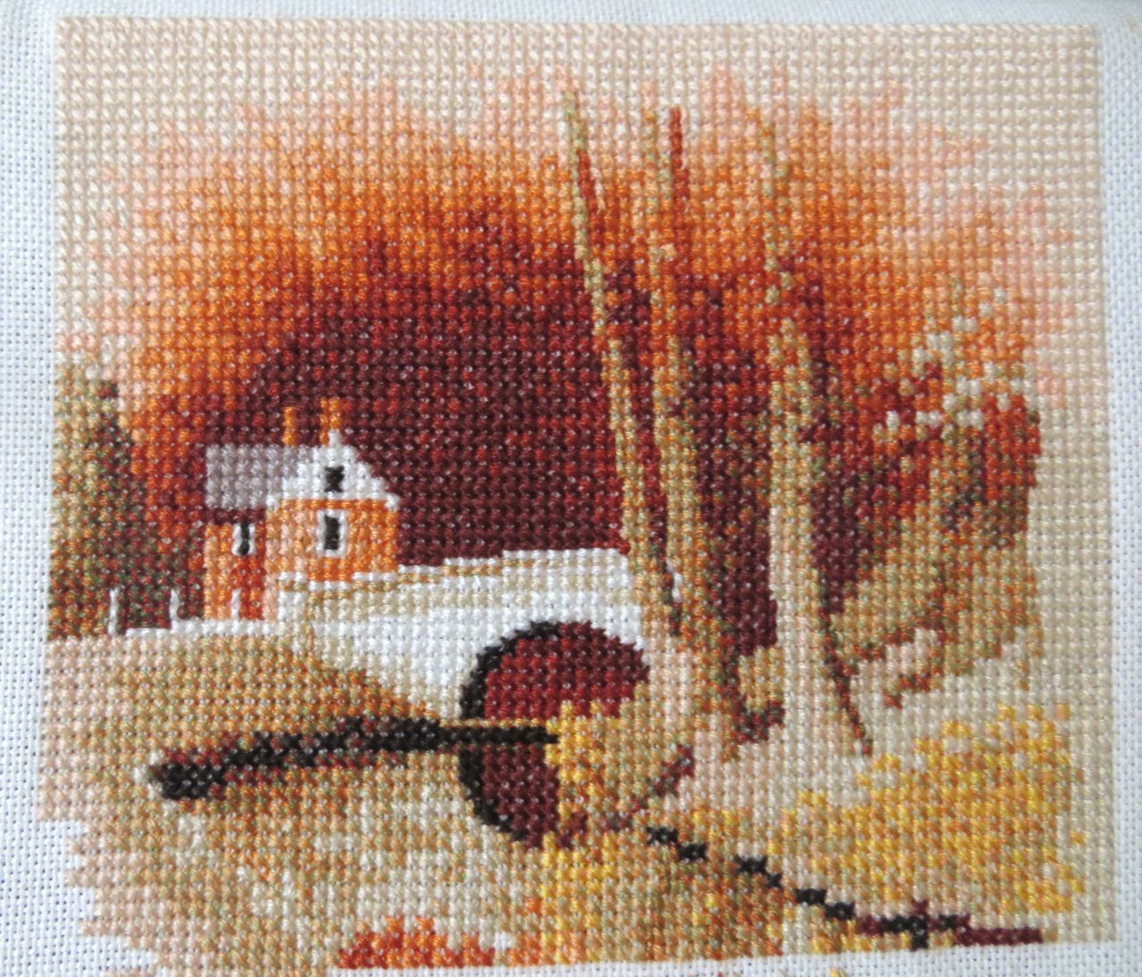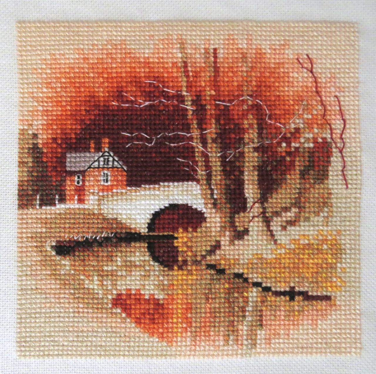 29 января 2017 Закончила канал! Впечатления от дизайна потрясающие! Получилась золотая осень в теплых, уютных оттенках. Мягкие полутона, игра света и тени - все это разместилось на вышивке 12,5 х 12,5 см. Размер у меня получился меньше 13 см., заявленных на обложке набора, и это учитывая то, что при полной зашивке я обычно добавляю по периметру по 1 ряду крестиков на "съедение" багетной мастерской (не всегда требуется, но все же...). После критической оценки и тщательного измерения пришла к выводу, что для получения квадрата нужно вышить еще рядок справа или слева. Вышила на всякий случай. Оформлять буду, когда вышью парный дизайн. Тогда и решу, какие именно ряды должны быть скрыты багетом. Вышивая, втайне надеялась, что останется достаточное количество ниточек для отшива второго пейзажа. Увы... каждого цвета осталось по одной пасме или даже меньше. Фотография без бэка и с бэком kas_julia, Majena, sakineva и 15 других сказали спасибо Поделиться сообщением Ссылка на сообщение