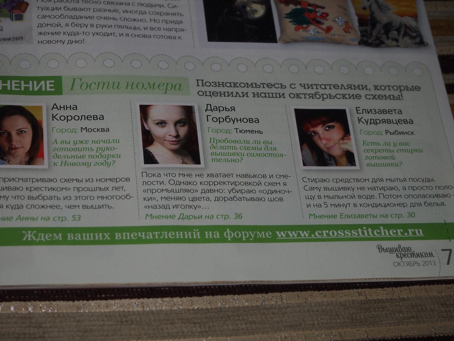 16 октября 2013 Смахну пыль с темки вышивка двигается медленно из-за учебы, но я похвастаться другим: меня немножко напечатали в любимом "Вышиваю крестиком" Ginger_mama, Юнона1960, Сапфира и 4 других сказали спасибо Поделиться сообщением Ссылка на сообщение