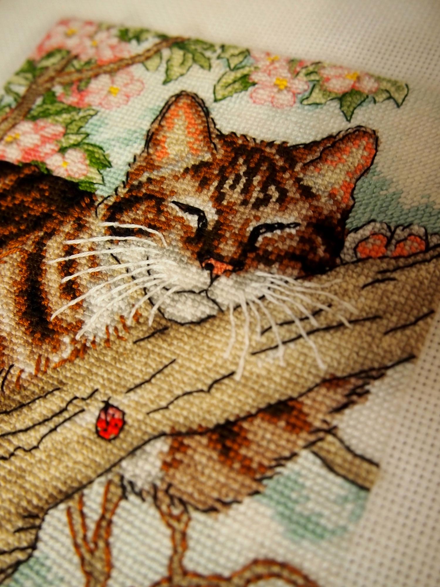18 декабря 2013 Наконец-то закончила работу над "Napping kitten"! Самое ужасное - это усы. Не нравится мне, как они получились, но я уже замучилась их переделывать, не понимаю, как их вообще можно уложить так, как на обложке набора наверное, у меня руки не из того места... Но переделывать не буду. Уже постиран и поглажен, лежит, досыхает. Правда, почему-то в нижней части вышивки, где веточка, после стирки канву стянуло, но я надеюсь, натяжка в багетке это исправит. Котик будет ждать моей поездки на малую родину, в Курган, где я его отнесу в свою любимую мастерскую (сначала думала тут в Тюмени подыскать, но начиталась про ужасы оформления, решила лучше уж в проверенные руки кота отдать, чем сидеть и гадать, что же выйдет, сколько рядов крестиков у меня "своруют" оформители и не посадят ли мою тряпочку на клей ). А сейчас я возобновлю работу над "Гербом", потому что и дошить его быстрее, чем ангела, и как бы уже стыдно затягивать - подарок папе же (хотя он про него не знает ). Мартиша, Ofelia, tanya_mirymir и 1 другой сказали спасибо Поделиться сообщением Ссылка на сообщение