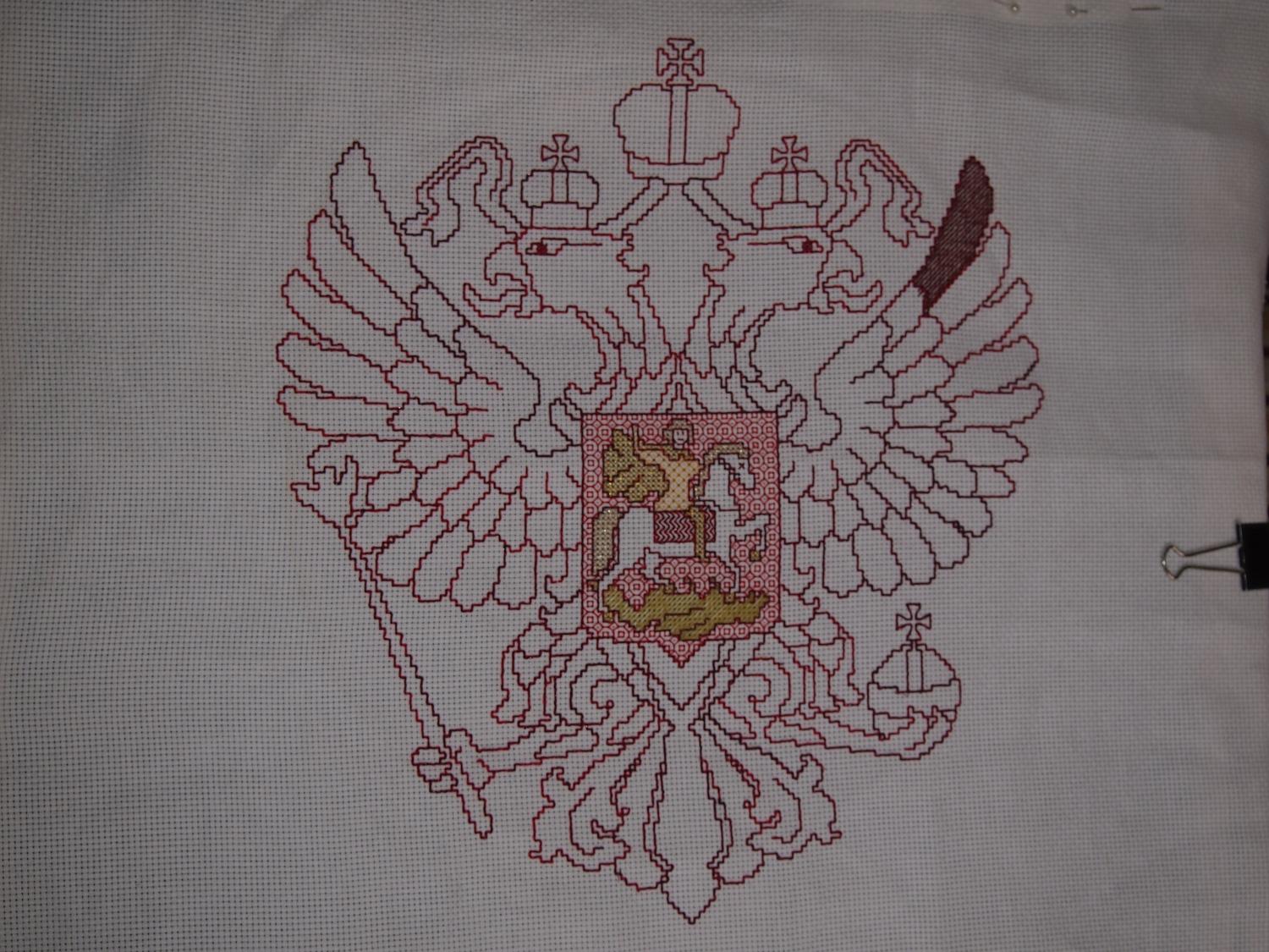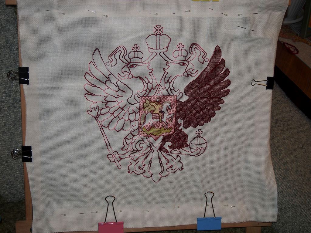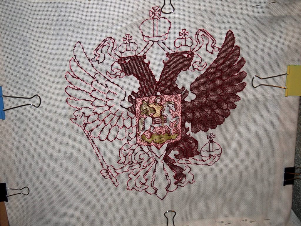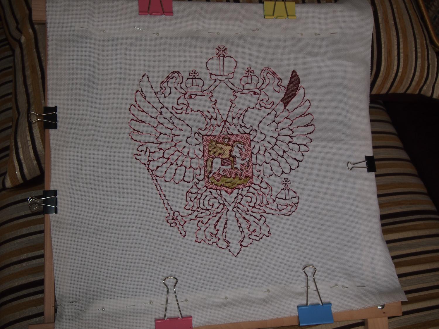 15 марта 2014 Продвижения в орле - вроде и правда неплохо выходит. По канонам, конечно, орел должен быть золотой, но я себя успокаиваю тем, что в 18 веке он имел коричневый цвет, так что вполне себе гербовый герб нарисовывается на крыло ушел целый моточек с лишком гаммовских ниток. А у меня таких было только два. Пойду завтра в магазин подбирать по карте цветов _Katrin_, tanya_mirymir, Мартиша и 1 другой сказали спасибо Поделиться сообщением Ссылка на сообщение