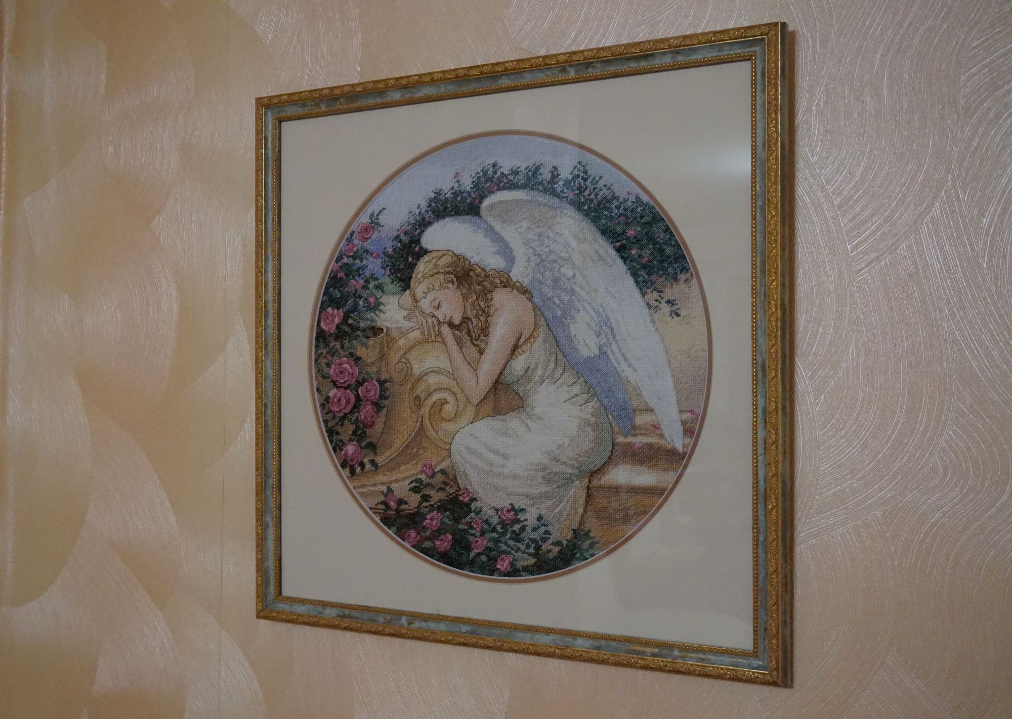 9 декабря 2015 Забрала из багетки свою красавицу как всегда - великолепная работа умельцев из рамочной мастерской Надежды Шишкиной! Ни одного крестика не спрятали под паспарту, все аккуратно, ровненько, красиво и в срок выполнено. Размер вместе с рамой - 51 на 51 см. Это было самое быстрое посещение багетки за всю мою историю вышивания приемщица приложила этот багет одним из первых, и я сразу уцепилась за него. Правда ведь, он как будто создан специально для моей ангелицы? Остальные золотые и белые варианты рам совсем потерялись на фоне этого яркого и в то же время гармоничного сочетания цветов. В общем, я очень довольна и счастлива, что четырехлетняя эпопея с китайским набором закончилась так успешно! Но больше такое покупать не буду, конечно - риск большой получить непонятно что на выходе, да и закончившиеся нитки не порадовали. Три или четыре оттенка бежевых и белый кончились на середине работы! Зато всяких малиновых и розовых, которые только в цветочках, осталось по целому мотку. Как китайцы собирали этот набор и чем они руководствовались - для меня загадка. Покажу вам, помимо самой картины, сам багет, чтоб рассмотреть его получше, и то, как вышивка смотрится в интерьере. Сразу оговорюсь: мы с мужем и котом живем на съемной квартире, так что повесили вышивку на тот гвоздик, который уже был вбит хозяевами, поэтому не по серединке расположена работа. Но мне все равно кажется, что все в тему tessykat, bukina88, gracy_trefoil и 4 других сказали спасибо Поделиться сообщением Ссылка на сообщение